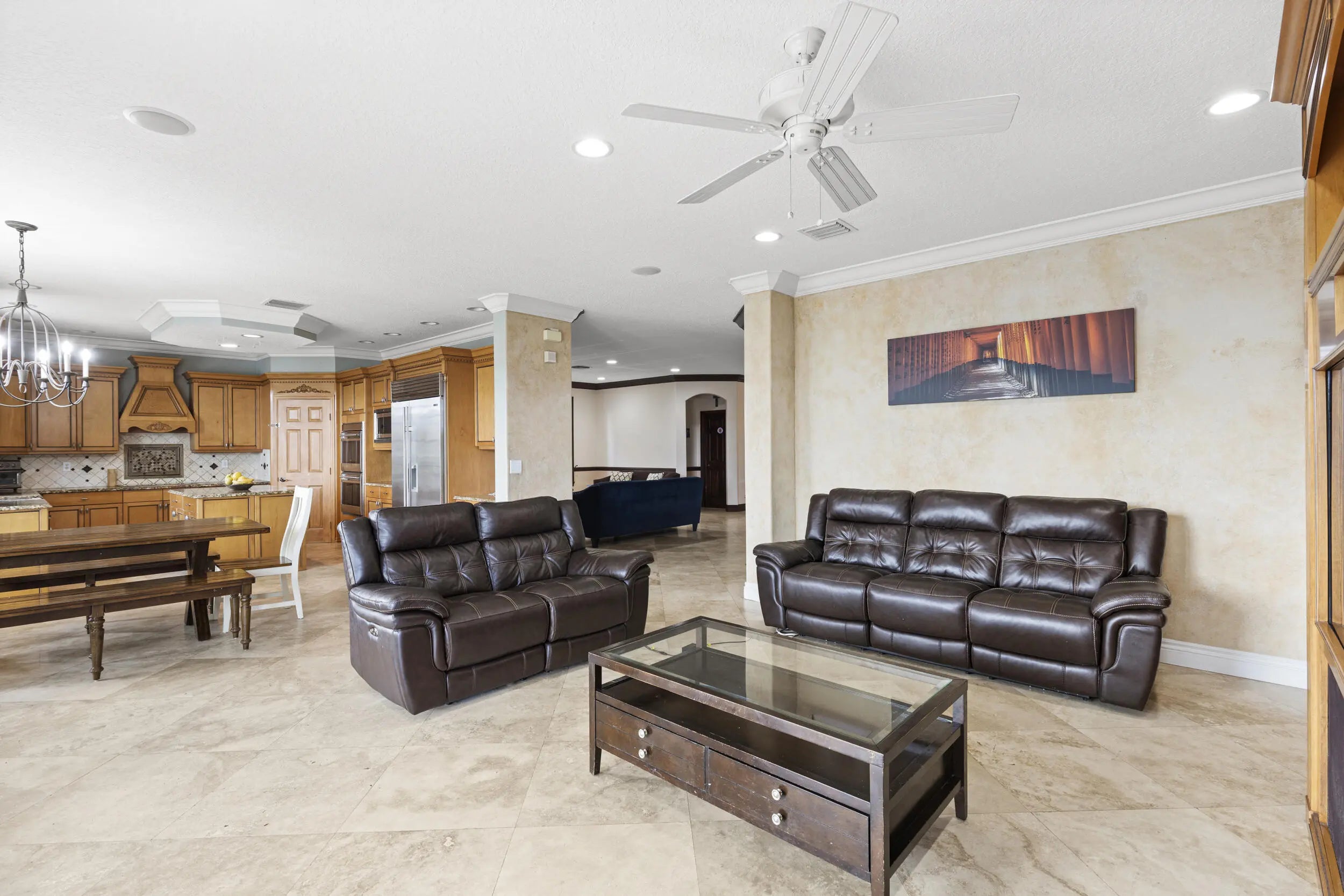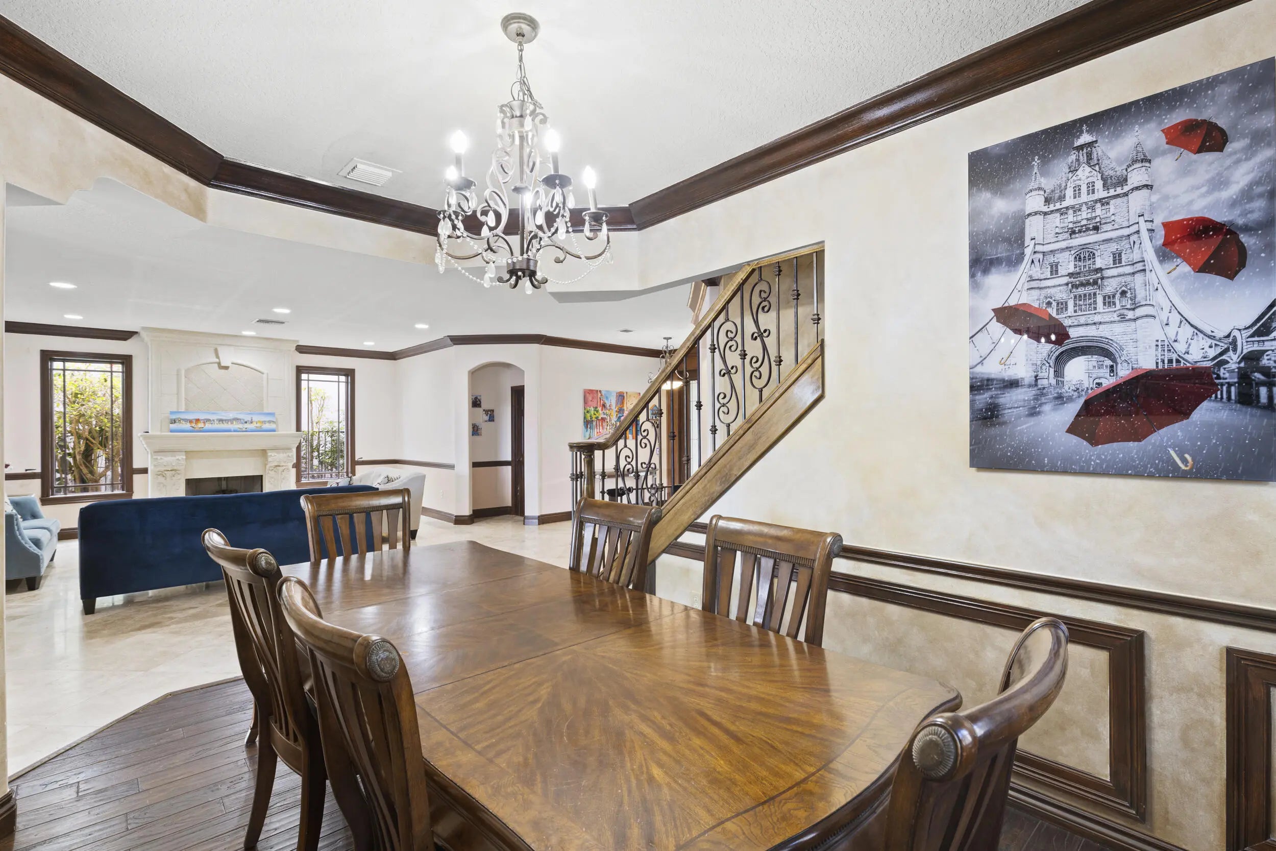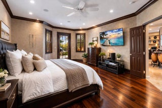 Luxury homes in Olympia Wellington rarely feature this level of custom interior work — and I've been inside enough of them to know the difference. Whoever built this home decided it was going to be the one of one, Venetian plaster, dark walnut millwork, wrought iron staircase, travertine floors, handmade range hood, custom cabinetry throughout. Then they walked out back and built a rock waterfall pool and spa, stone-faced summer kitchen, and a covered lanai that opens to a lake view. The second-floor balcony off the primary suite looks over all of it at dusk while an Atlantic breeze comes in from the east. Five bedrooms, private ensuite on the main floor, NEW ROOF GOING on now. Olympia was built for the resort lifestyle. This home was built to be the best one in it Here it is — trimmed to fit, nothing important cut, just tightened where the prose had room to give: FULL EXTENDED DESCRIPTION Before Olympia, There Was Dirt I used to ride dirt bikes through what is now Olympia. That's not nostalgia — that's context. Before Minto broke ground in 2002, that stretch of land south of Forest Hill Boulevard was wide open. Wellington was already growing, but nothing at this scale had been attempted here. When Minto announced they were going to build nearly 1,800 homes on 832 acres in the heart of Wellington, people paid attention. This was going to be the largest master-planned residential development Wellington had ever seen. They built it over twelve years. Finished the last home — the Aviano model — in 2014. Seventeen villages. Four model collections. Fifty-plus floor plans. And they didn't just build houses — they built a community with the infrastructure to match. Equestrian Trails Elementary sits right at the edge of Olympia on Stribling Way, ranked #27 in the state of Florida, 10 out of 10 on GreatSchools. Emerald Cove Middle is right behind it. These schools weren't placed nearby as a coincidence — they were part of the plan. Wellington built to serve the families that were going to live here. When a community is large enough that the school district builds a school specifically to serve it, you're not buying a house. You're buying into infrastructure designed with permanence in mind. A Mediterranean Home Built to Be the One I've been inside over 100 homes in Olympia. I know this model. I've walked it in multiple villages over the years. None of them looked like this. Luxury homes in Olympia Wellington rarely feature this level of custom interior work — and whoever built 9041 Alexandra Circle decided early on that it was going to be the exception. Venetian plaster walls throughout — that warm, aged, layered texture that no production builder bothers with. Dark walnut millwork running through every room: crown molding, wainscoting, window casings, door surrounds. All matching. All custom. The staircase anchors the entry — wrought iron with scroll and leaf ironwork balusters, wood handrail, the kind of piece you build once and never replace. Arched doorways and architectural niches carry the Mediterranean language from room to room. The exterior delivers the same promise: barrel tile roof, arched entry, brick paver driveway, mature palms. But the outside is just the preview. The interior is where the investment shows. This is not a house decorated to look Mediterranean. It was built that way from the walls out. The Kitchen The kitchen photograph will stop buyers mid-scroll. Full custom cabinetry in a warm honey tone with dark glaze detailing, glass-front uppers, carved rope crown molding across every run. Granite countertops. Center island. A coffered octagonal tray ceiling with recessed lighting. And in the center of the cooking wall — a hand-carved custom wood range hood. Not an insert, not a decorative box. A carved range hood that looks like it belongs in a kitchen in Tuscany. Sub-Zero side-by-side refrigerator, double wall ovens, built-in microwave. This kitchen was built to cook in and to be seen in equal measure. The Living Spaces The floor plan gives you formal and informal living on the main level, connected through arched openings. The dining room sits off the entry — dark walnut wainscoting, Venetian plaster, crystal chandelier, the wrought iron staircase as the backdrop. The stone fireplace anchors the formal living room beyond the arch. Travertine floors run throughout the main living areas. The family room is where the house relaxes — a full custom built-in entertainment wall, real wood floor to ceiling, with arched center display, flanking shelves, and lower cabinetry. Plantation shutters throughout. The bonus room earns its own mention. Large carpeted space with Venetian plaster walls, its own exterior door, crown molding, ceiling fan, and a built-in bench with upholstered cushion. Media room, playroom, home gym, second family room — the exterior door gives it full separation from the main living flow. The Primary Suite The primary suite occupies the rear of the second floor — privacy from the secondary bedrooms and direct access to the balcony that faces the pool and the lake. The primary bath matches the standard set by the kitchen. Two full dark walnut vanity towers floor to ceiling, flanking a corner soaking tub beneath a window that looks out at the lake. Dual sinks, granite counters, framed mirrors set into the custom cabinetry. Separate shower. Same craftsman, same standard, no shortcuts taken. The house was designed so the water follows you — from the balcony, from the family room, from the backyard. The primary bath is the last place it shows up, and it lands. The Backyard — This Is the Listing For a five-bedroom lakefront home in Olympia Wellington, what's been built here is genuinely uncommon. The pool is freeform with a natural rock waterfall feature and a raised spa with stone surround. Palm trees are lit from below, casting that warm uplight that makes a backyard feel like a resort. Travertine decking covers the entire outdoor ar
