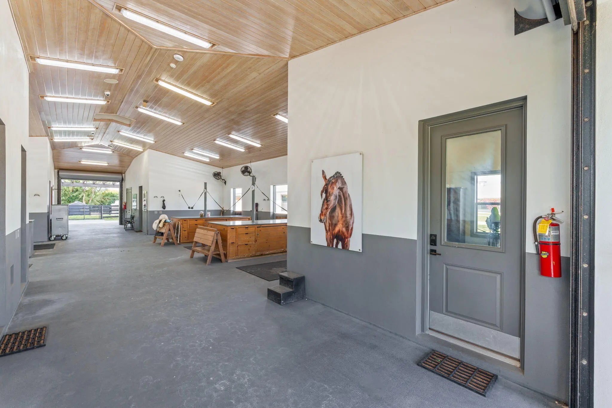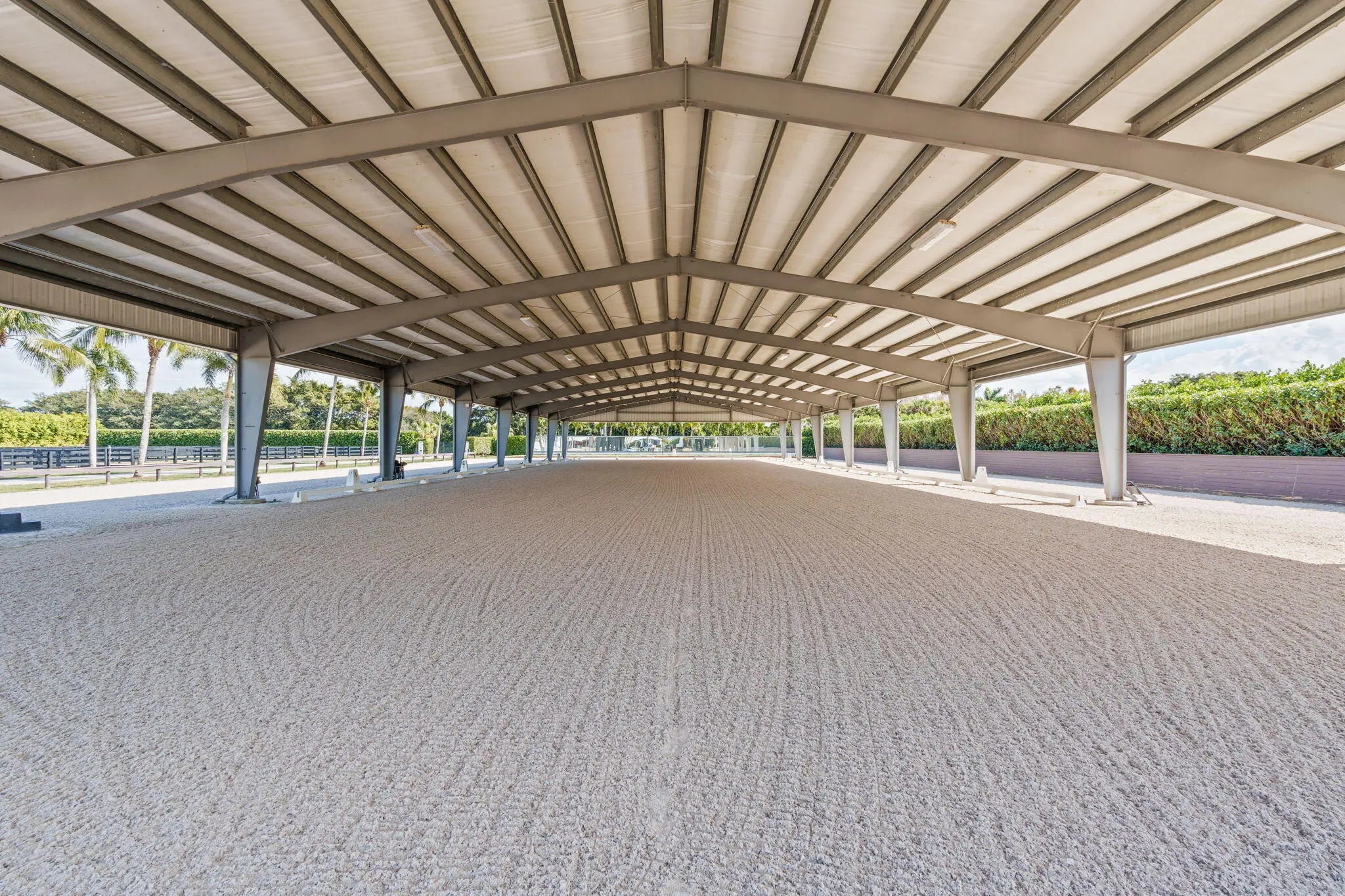 SUMMER RENTAL ONLY. Elevate Your Summer. Discover Your Perfect Equestrian Retreat. Conveniently situated on Southfield Road, offering a short hack to show grounds. Includes an oversized riding ring with a 30m x 70m covered dressage ring, ensuring optimal training conditions rain or shine. This beautiful property also features a hot walker, round pen, and spacious outbuildings with indoor/outdoor wash stalls, groom stalls. kitchen, tack room, feed room, hay storage and bathroom. Up to 38 stalls available. Boasts superb footing with new fibers and concussion mats, prioritizing horse comfort and performance. Equipped with hurricane proof with storm doors and generator on-site for added safety during extreme weather conditions. Enjoy the convenience of a Sonos sound system in the ring, outbuilding, and barn for a pleasant atmosphere. As well as an ample parking space available for trailers.