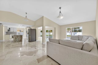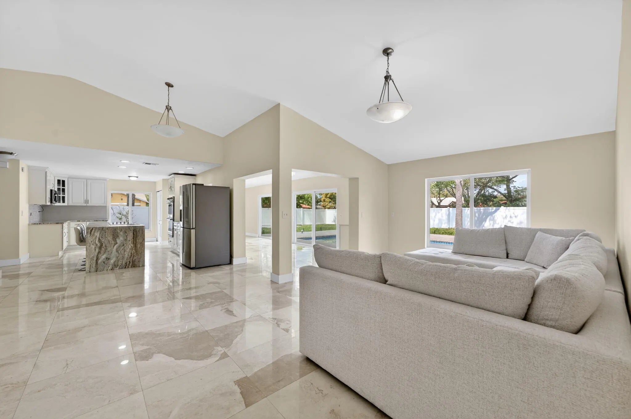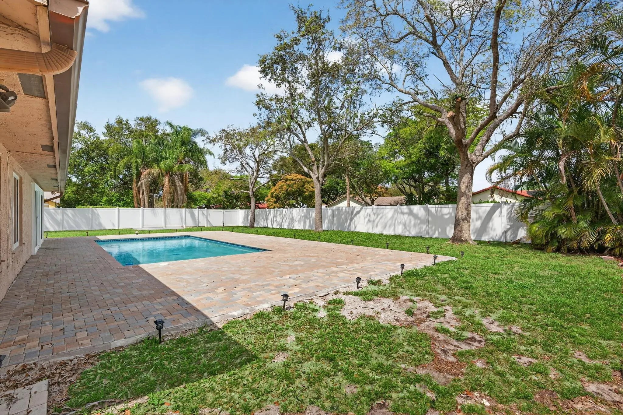 Beautifully updated 3-bedroom, 2-bathroom home. Step inside to a bright, open layout feat. vaulted ceilings upon entry & multiple living spaces designed for both comfort & entertaining. The home showcases a brand-new kitchen with sleek modern cabinetry, quartz countertops w/ large island & stainless steel appliances including a double wall oven—perfect for cooking and gathering. Freshly painted interior with all new baseboards, creating a clean, modern feel throughout. Living areas overlook your private backyard oasis feat. heated pool & new pool patio pavers. Situated on a private cul-de-sac and spacious corner lot. Enjoy enhanced privacy with a new 6' white vinyl fence surrounding the property. Additional feat: impact windows, new hot water heater, garage motor & new smart washer/dryer.