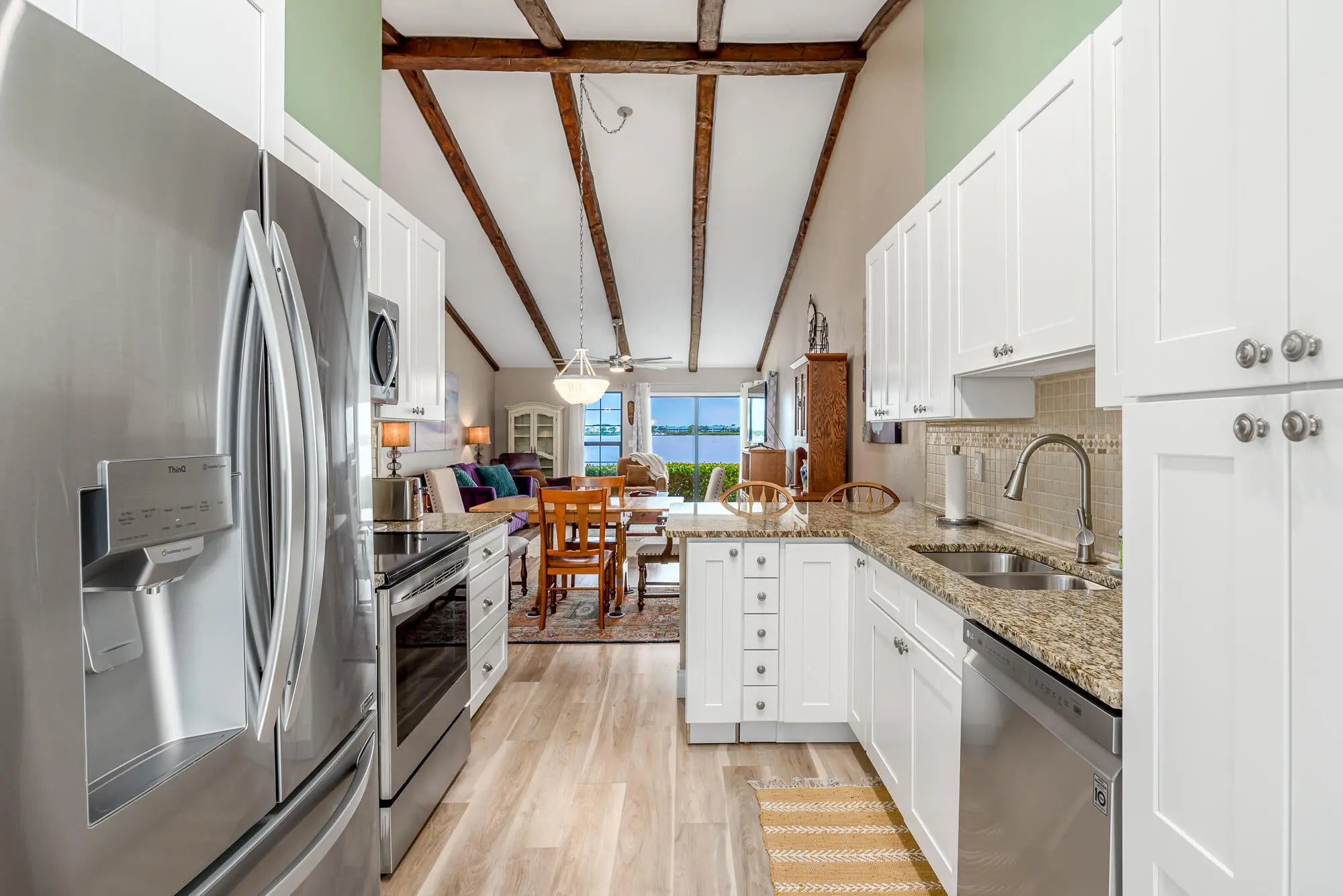 DIRECT WATERFRONT Villa with spectacular river views (Per FEMA flood map, flood insurance is not required!!). 3 Bedrooms with 3 full baths and two master suits! New roof in 2018. Impact glass windows and doors in 2016 (except front door and sidelight). Renovated with newer flooring, newer kitchen and newer water heater. Community offers pool/spa, community dock & gazebo. When you walk in the door you will be impressed with the cathedral ceilings and the beautiful wide water view!!!