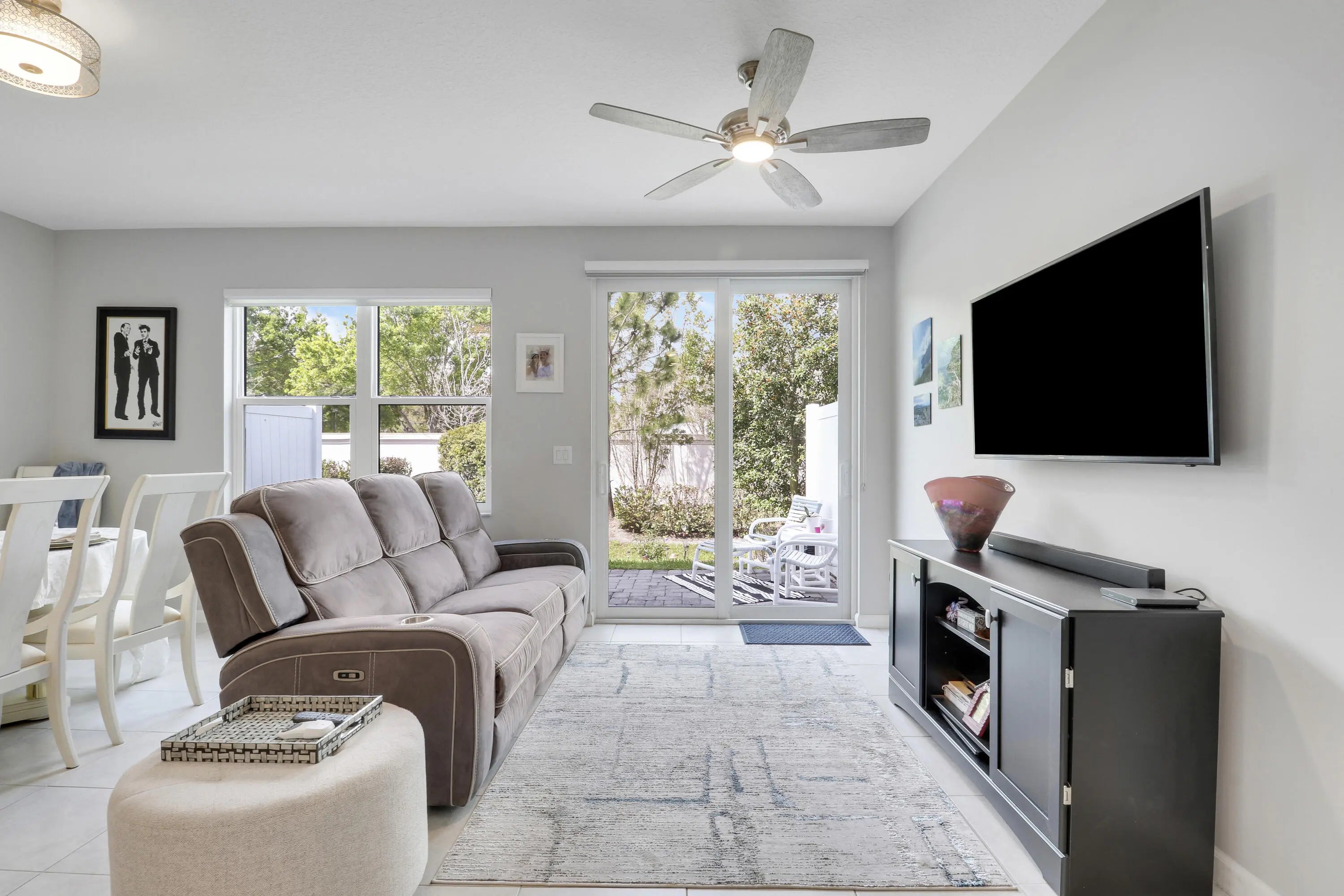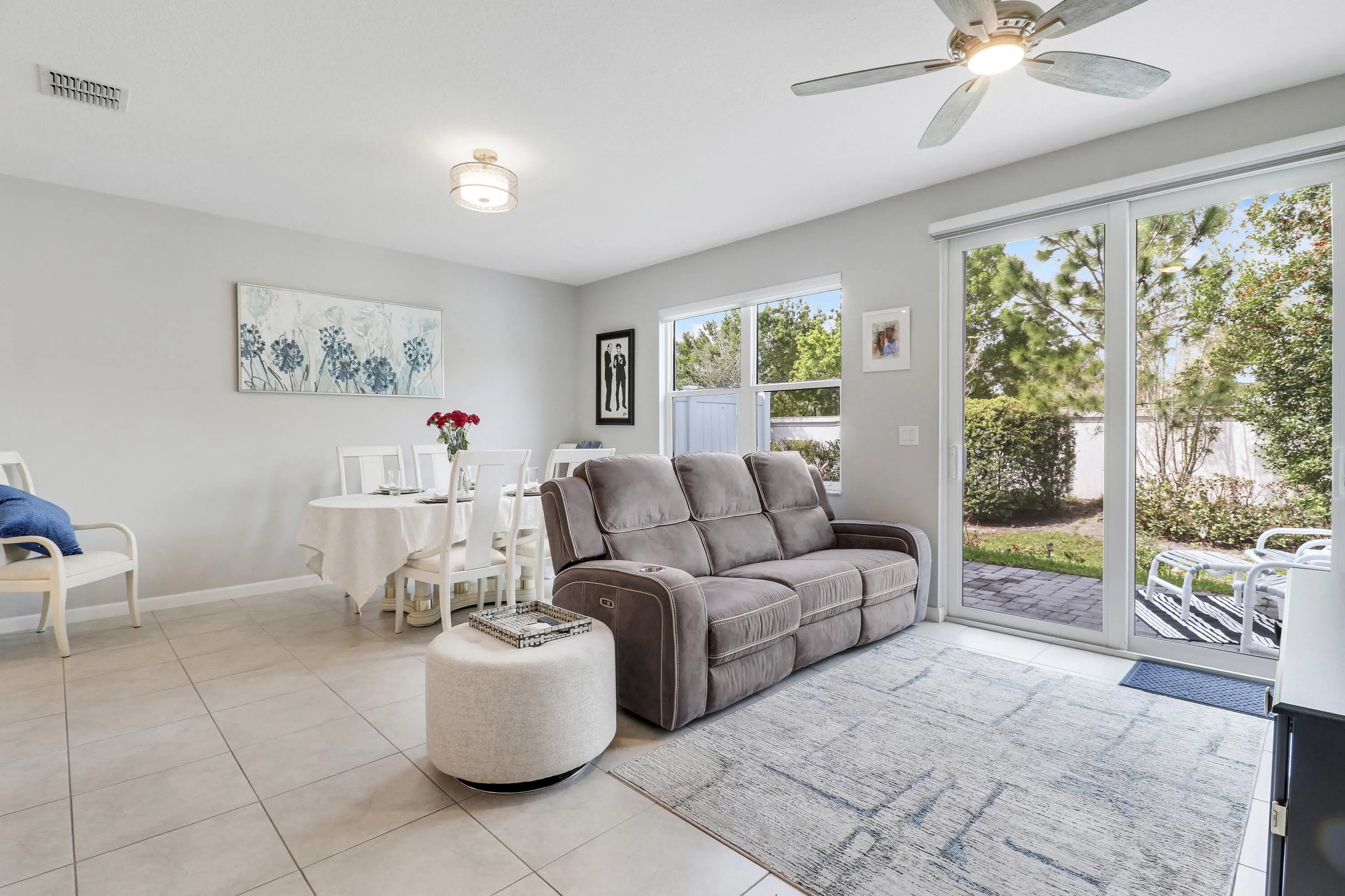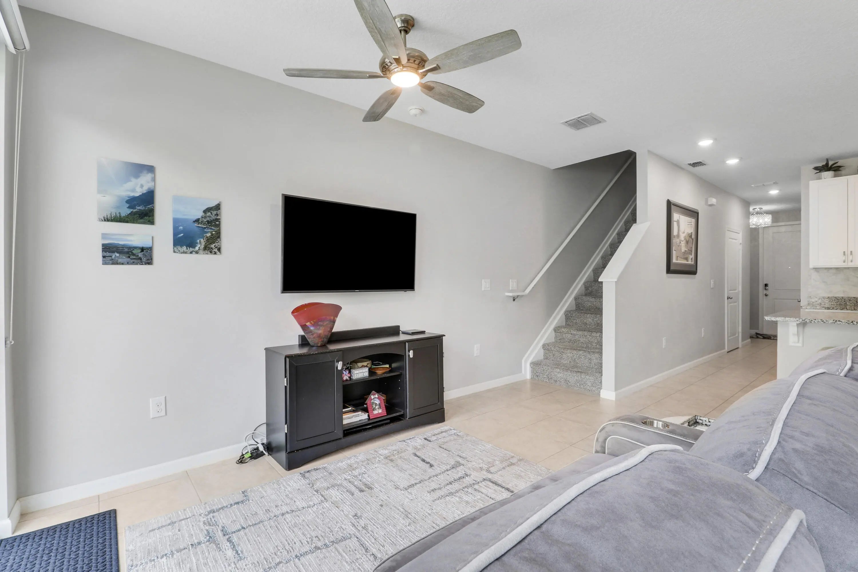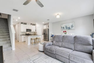 Discover this beautifully maintained 3 bedroom, 2.5 bathroom townhome built in 2020 in the gated Seaside community in the heart of Stuart, one of Florida's most charming coastal towns. Built with energy efficiency in mind, the home features impact windows and doors along with spray foam attic insulation to help keep utility costs low. This two story residence offers a bright open layout with a versatile upstairs loft ideal for a home office, playroom, or additional living space. The spacious great room seamlessly connects the kitchen, dining, and living areas and showcases tile flooring throughout the main level. The kitchen is well appointed with granite countertops, tile backsplash, stainless steel appliances, a double bowl undermount sink, and a walk in pantry. Step outside to a private patio overlooking landscaped garden space, providing a quiet setting for outdoor relaxation. The primary suite features beautiful views, a walk in closet, dual sinks, and a walk in shower. Positioned on one of the quietest lots in the community, residents enjoy access to a resort style pool, scenic lake, and a dog friendly neighborhood just minutes from downtown Stuart.
