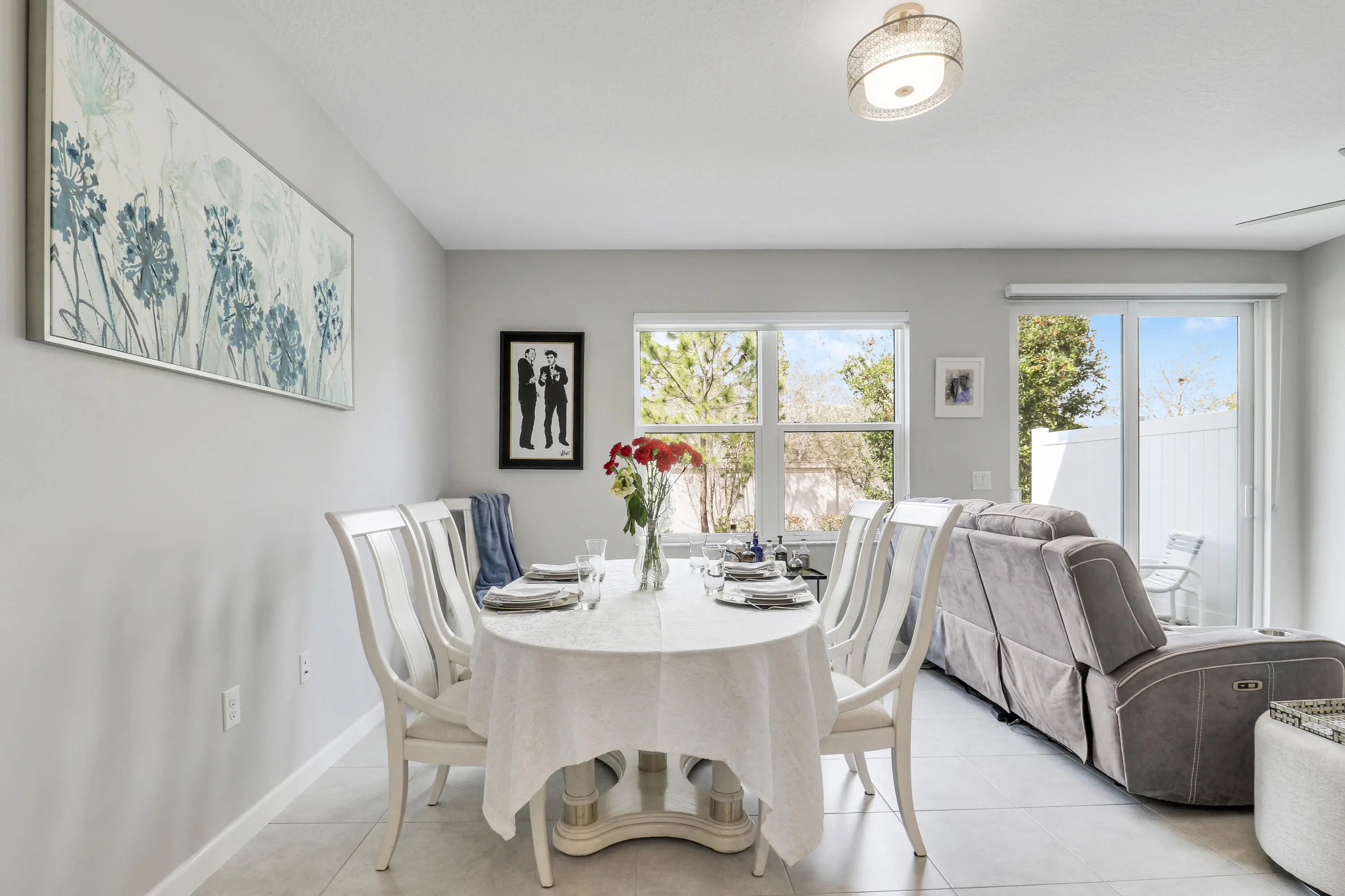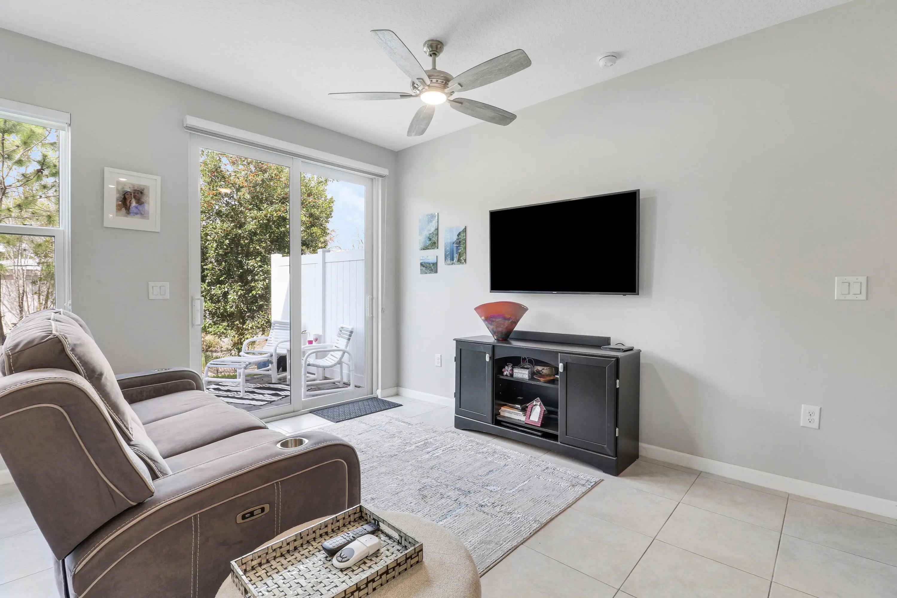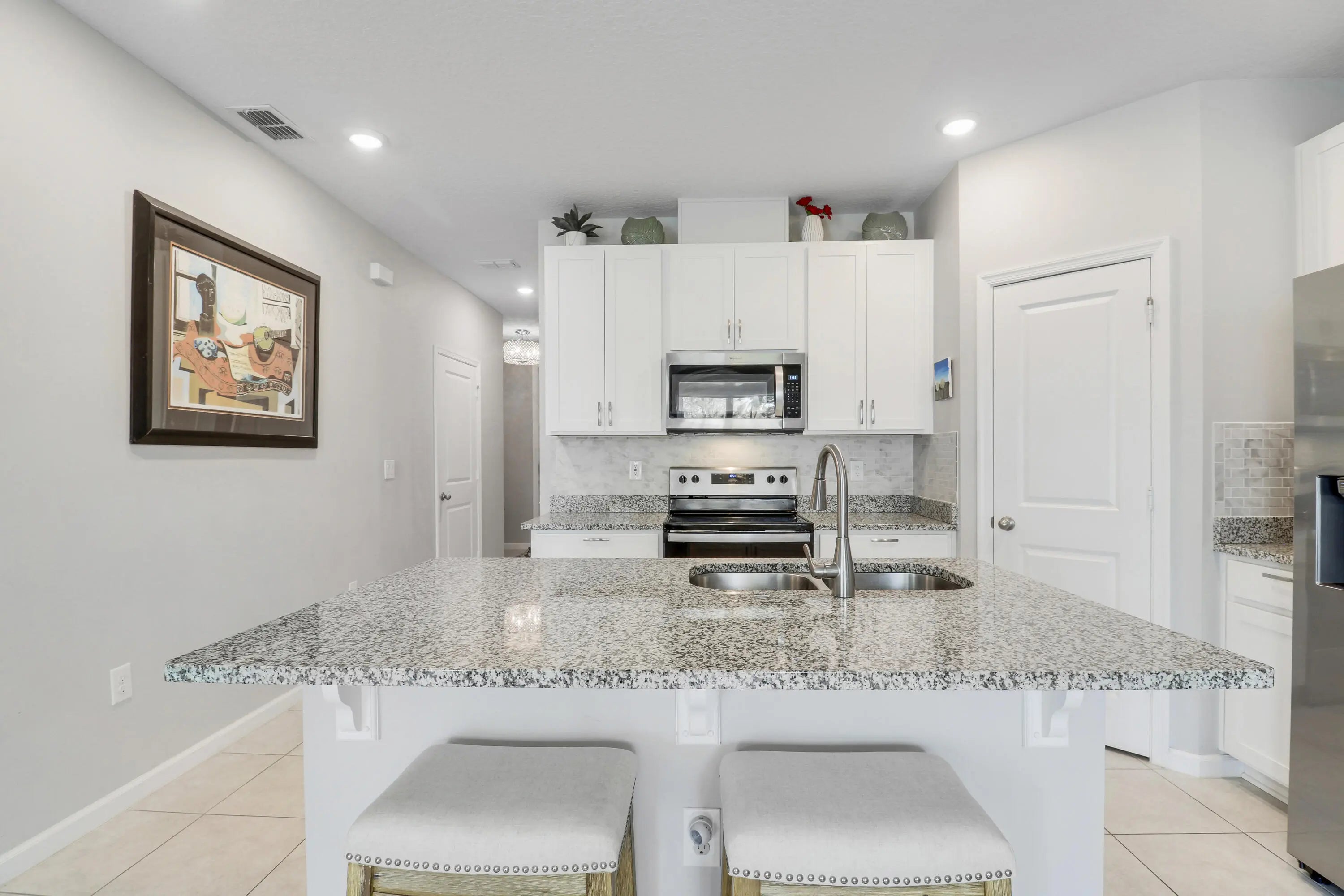 Discover this beautifully maintained 3 bedroom, 2.5 bathroom townhome built in 2020 in the gated Seaside community in the heart of Stuart, one of Florida's most charming coastal towns. Built with energy efficiency in mind, the home features impact windows and doors along with spray foam attic insulation to help keep utility costs low. This two story residence offers a bright open layout with a versatile upstairs loft ideal for a home office, playroom, or additional living space. The spacious great room seamlessly connects the kitchen, dining, and living areas and showcases tile flooring throughout the main level. The kitchen is well appointed with granite countertops, tile backsplash, stainless steel appliances, a double bowl undermount sink, and a walk in pantry. Step outside to a private patio overlooking landscaped garden space, providing a quiet setting for outdoor relaxation. The primary suite features beautiful views, a walk in closet, dual sinks, and a walk in shower. Positioned on one of the quietest lots in the community, residents enjoy access to a resort style pool, scenic lake, and a dog friendly neighborhood just minutes from downtown Stuart.