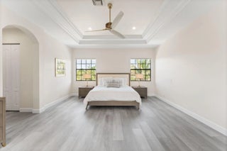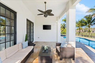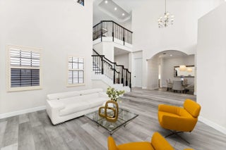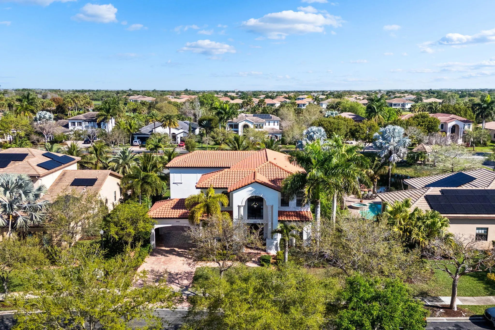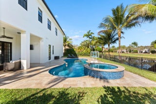 Rarely available lakefront pool home in the private gated community of Parkland Estates. This spacious 5 bedroom, 4.5 bath home with loft and 3-car garage offers over 4,200 sq ft of well-designed living space. A courtyard-style design featuring a porte-cochère and private courtyard creates a grand arrival and impressive curb appeal. Inside, double-height ceilings highlight the living room, complemented by a formal dining room and open family room ideal for entertaining. The gourmet kitchen features a center cooking island, custom vent hood, wall ovens, Quartz countertops, two dishwashers, and a butler's pantry with wine fridge. The primary suite includes a breakfast bar with refrigerator and sitting area. Resort-style pool and spa overlook the lake with covered patio and fenced yard.