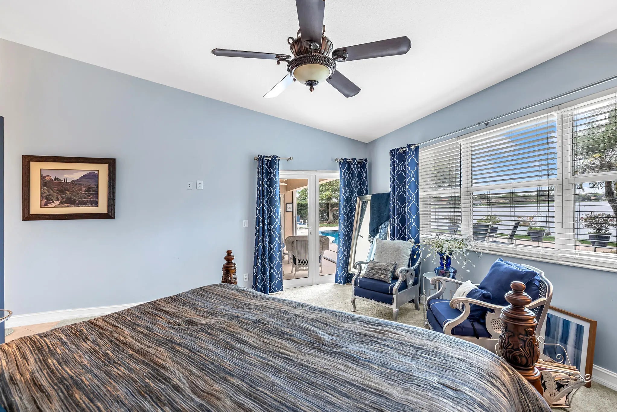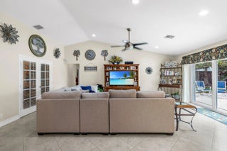 Rarely available lakefront home in desirable Ridgeview Estates, located within a top-rated school district. Situated on an oversized, private lot, this property offers expansive water views from nearly every room & features soaring vaulted ceilings that enhance the light and open feel throughout. The backyard is a true retreat featuring a resurfaced 30-ft pool, newly built covered & open patio spaces, and approx 80 feet of waterfront with room to add a dock. Recent upgrades include full impact windows and doors, new A/C, updated electrical panel, new sprinkler system, extended driveway, and an air-conditioned garage. Interior highlights include walk-in closets, an updated kitchen, and a renovated cabana bath. Additional storm protection includes accordion wall enclosing back patio. Low HOA No showings prior to Open House