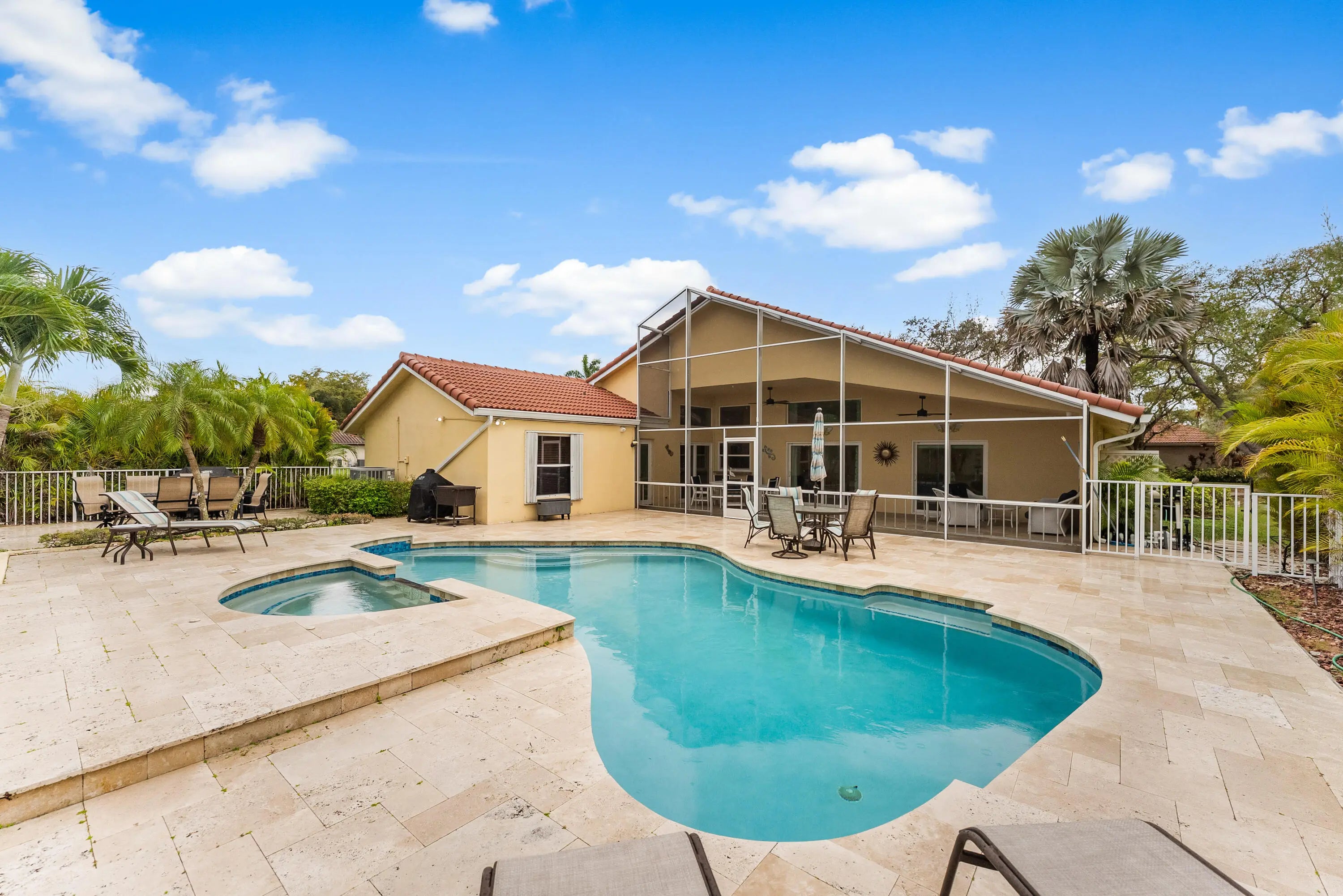 Welcome to this amazing home in the heart of Coral Springs. Located in the gated community of Carriage Pointe Estates, this 4 bedrooms, 2.5 bathrooms, pool home has over $100,000 in upgrades, from recently remodeled kitchen with new appliances and quartz countertop, bathrooms, to a whole house water filtration system, impact windows and doors, 2019 roof, travertine pavers in the driveway and back patio, extended patio, enclosed, a large back yard oasis, with a newly resurfaced salt water pool with jacuzzi. A/C and water heater were replaced in 2017, newer electrical panel, 8 outdoor cameras and ADT security system.