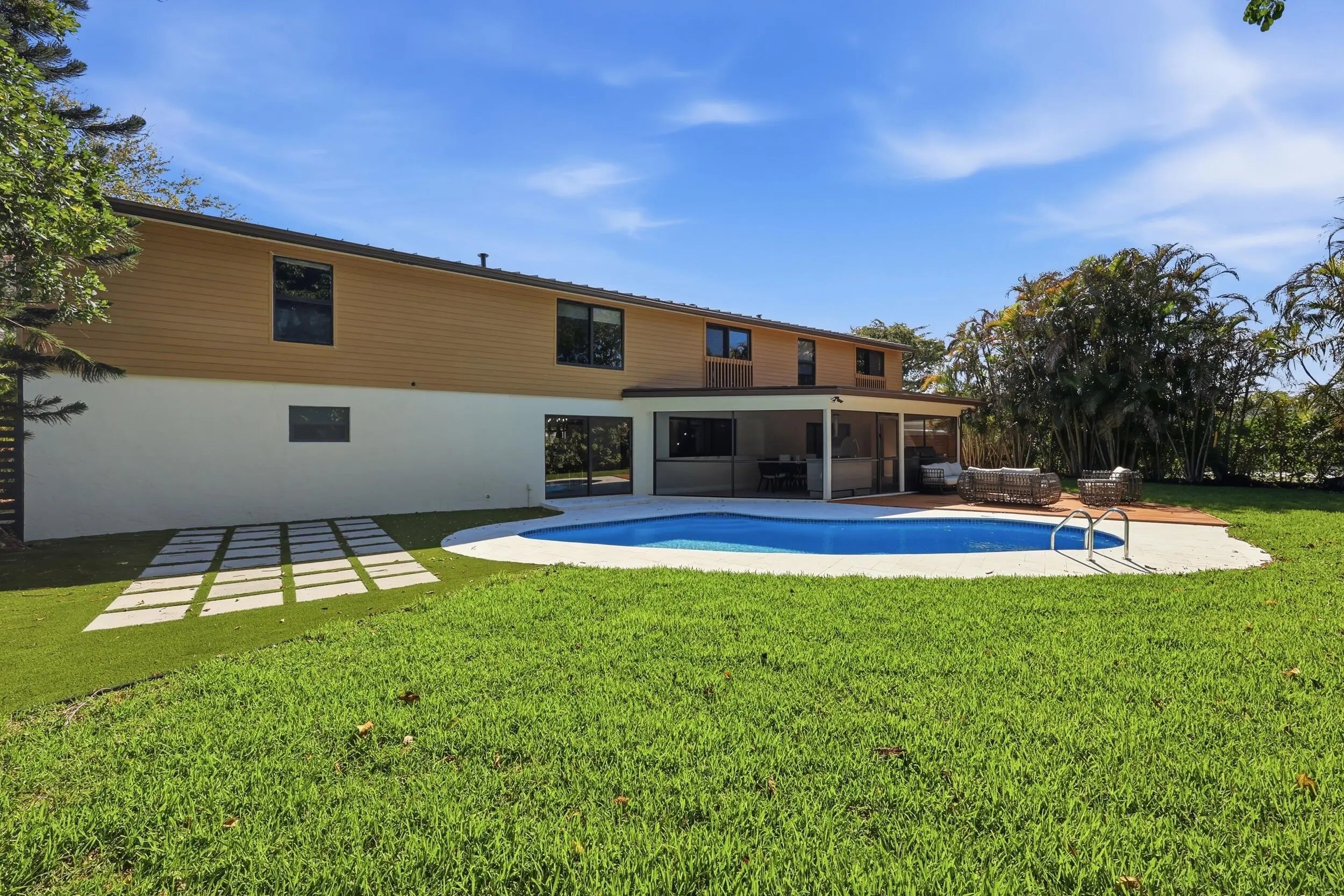 Picture Old Florida charm reimagined with a modern twist. Welcome to 342 Fairway Drive, located in the exclusive neighborhood of Tequesta Country Club, one of the area's most sought-after communities with no HOA. This 5-bedroom, 5-bathroom home with a 2-car garage has been meticulously remodeled from top to bottom, showcasing exceptional craftsmanship and stunning high-end finishes throughout. The thoughtfully designed open floor plan blends timeless Florida character with sophisticated modern living, creating bright, airy spaces ideal for both everyday living and entertaining. At the heart of the home is a state-of-the-art chef's kitchen featuring elegant marble finishes, custom cabinetry, and premium appliances. The kitchen flows seamlessly into a sophisticated wine parlour, creating the perfect setting for entertaining and intimate gatherings, while a dramatic modern wine display tucked beneath the staircase serves as a striking architectural centerpiece. The expansive first-floor primary suite offers a peaceful retreat, complete with a spa-inspired bathroom, luxurious soaking tub, and a spacious walk-in closet, providing both comfort and privacy. Step outside to your private fenced backyard oasis, where a sparkling pool invites you to relax and enjoy the South Florida lifestyle. Additional highlights include a new metal roof and impact windows and doors, offering both beauty and peace of mind. Residents of this coveted neighborhood enjoy close proximity to the scenic Loxahatchee River, along with nearby riverfront parks and community boat access — perfect for boating, paddleboarding, and embracing waterfront living. The location also provides convenient access to top-rated A-rated schools, making it an exceptional setting for families, while still being minutes from renowned golf, beaches, dining, and shopping throughout Tequesta and Jupiter. 342 Fairway Drive offers the rare combination of classic Florida charm, modern luxury, and an unbeatable locationwithin one of Tequesta's most beloved communities.