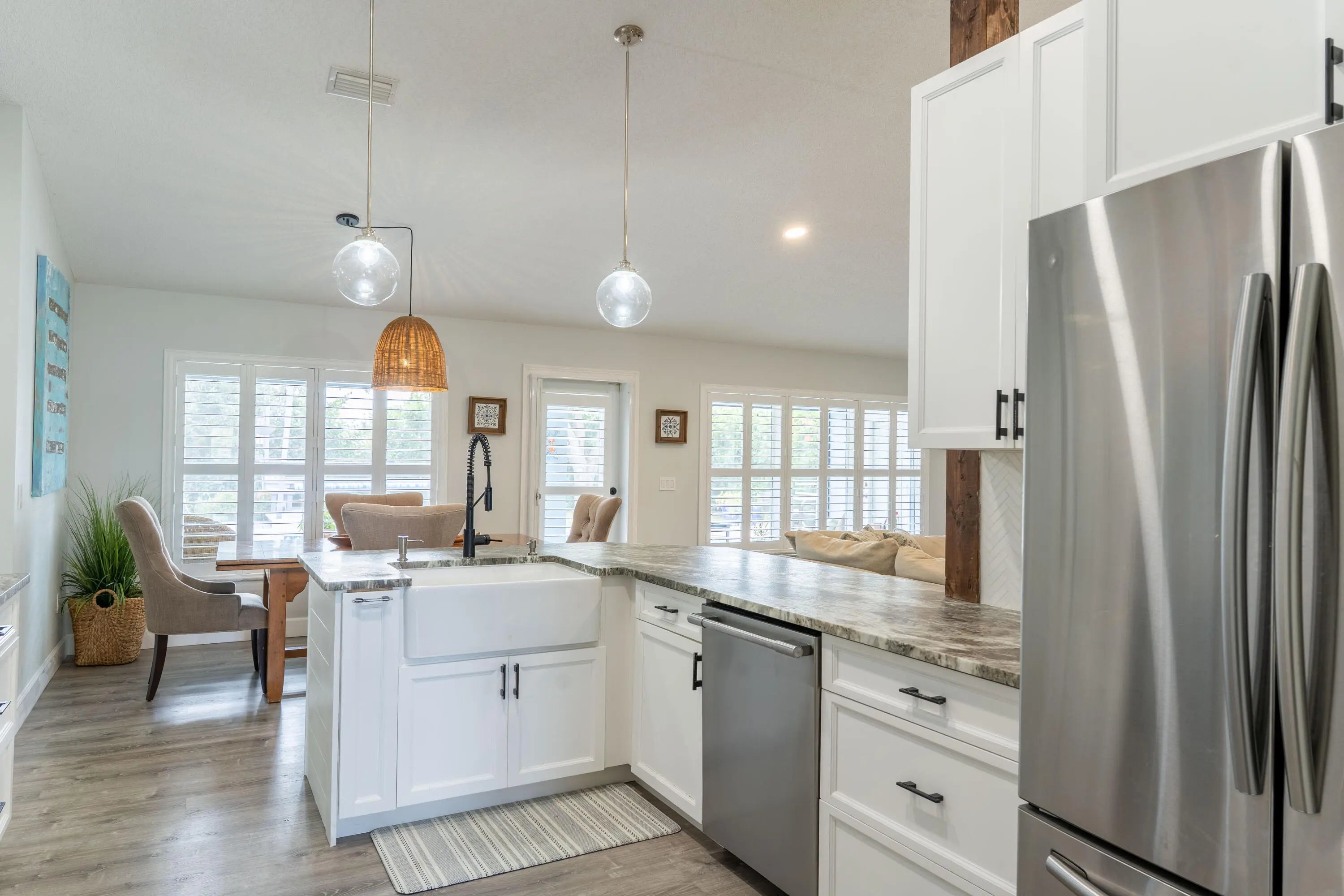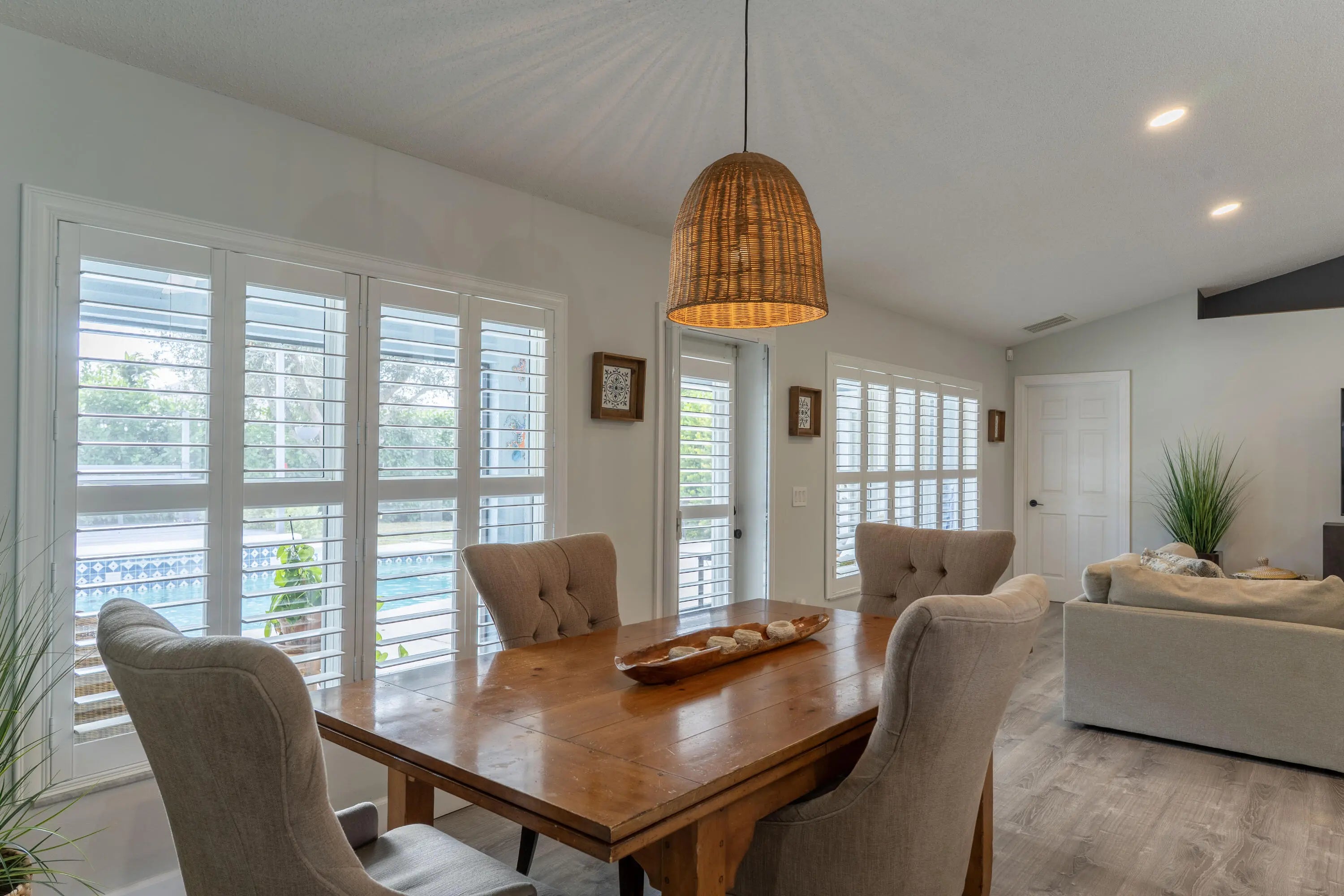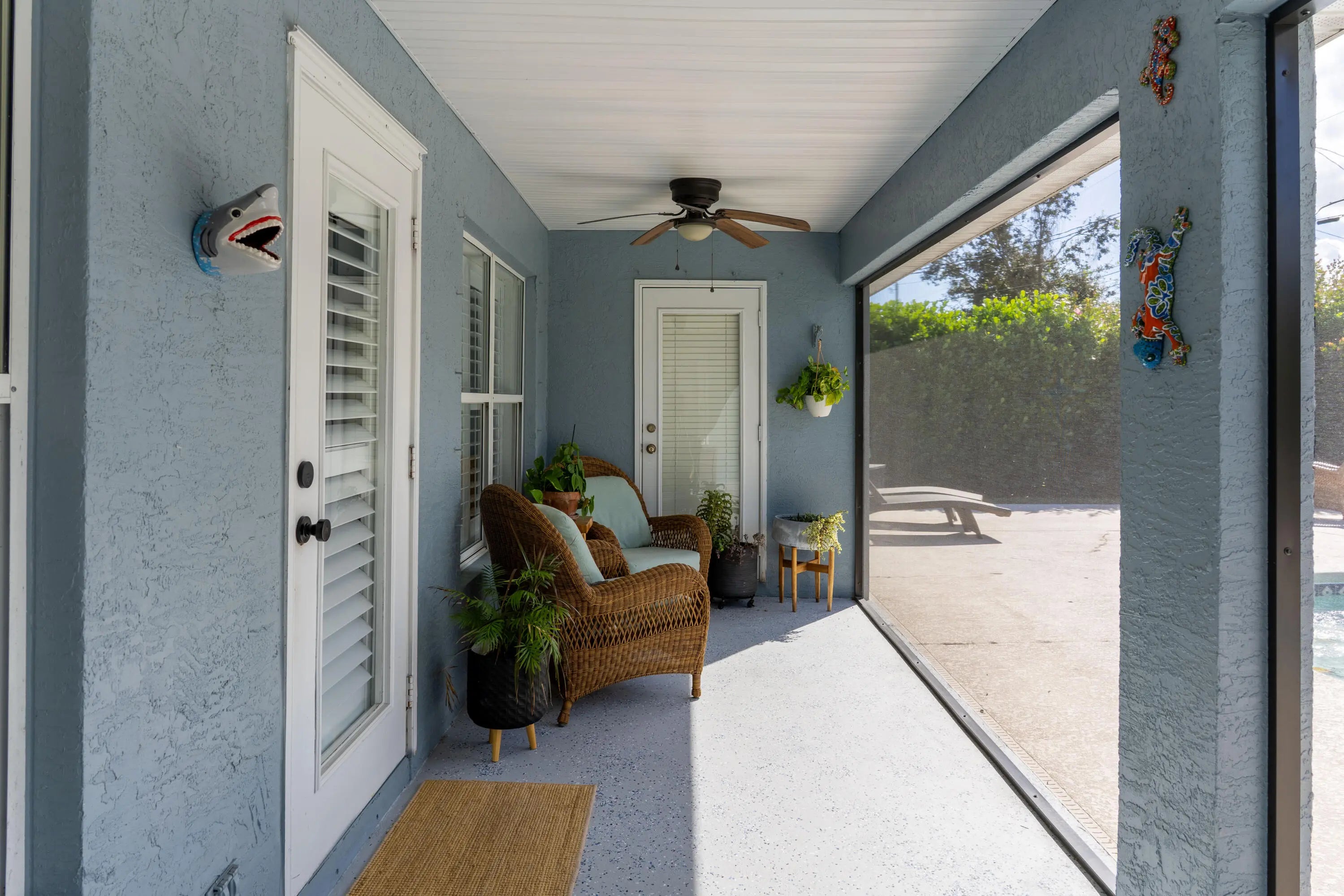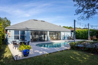 Stunning one-owner CBS home with no HOA. This 4 bedroom, 2 bath + office property is completely updated with custom upgrades and timeless designer finishes. Exterior features an extended paver driveway and front patio (2024); saltwater pool (remodeled 2020) + outdoor shower; custom wood deck + bench seating; and a newly screened 26'x7' lanai! Interior is full of natural light with plantation shutters throughout. Kitchen, bathrooms, primary bedroom closets (2), and laundry room have all been thoughtfully renovated -- craftsmanship and design choices are impeccable! Kitchen features vaulted ceiling, quartzite counters, farmhouse sink, soft-close shaker cabinets and stainless-steel appliances. This is a floor plan that will make sense for any stage of life! ROOF 2022, HVAC 2019