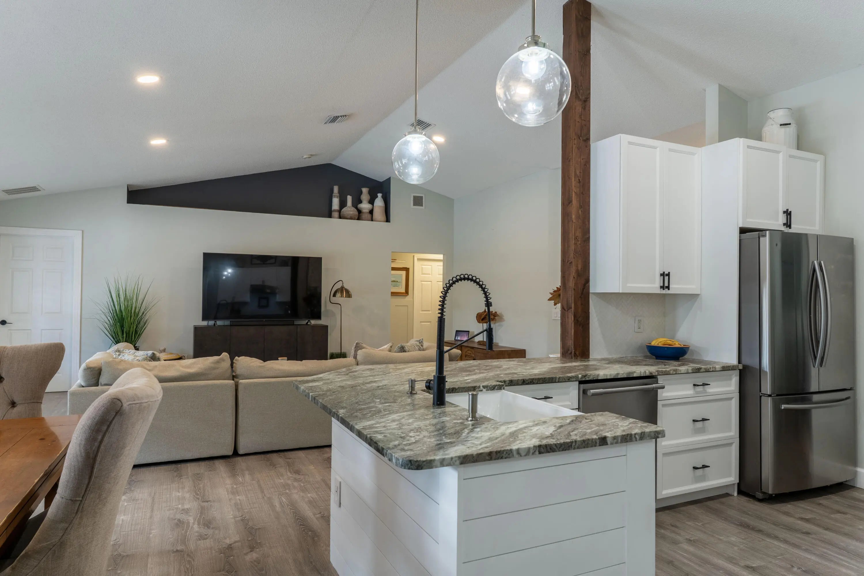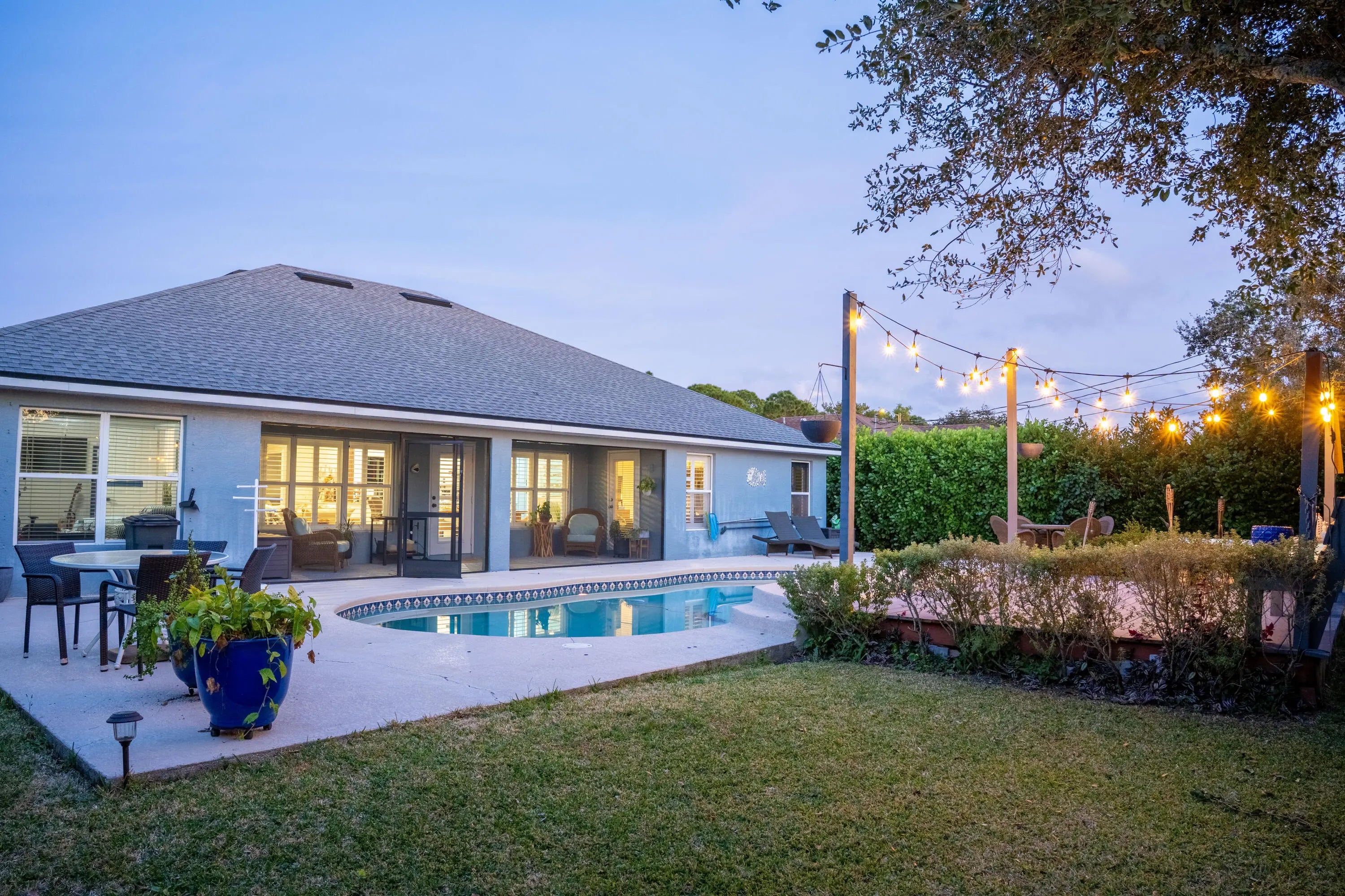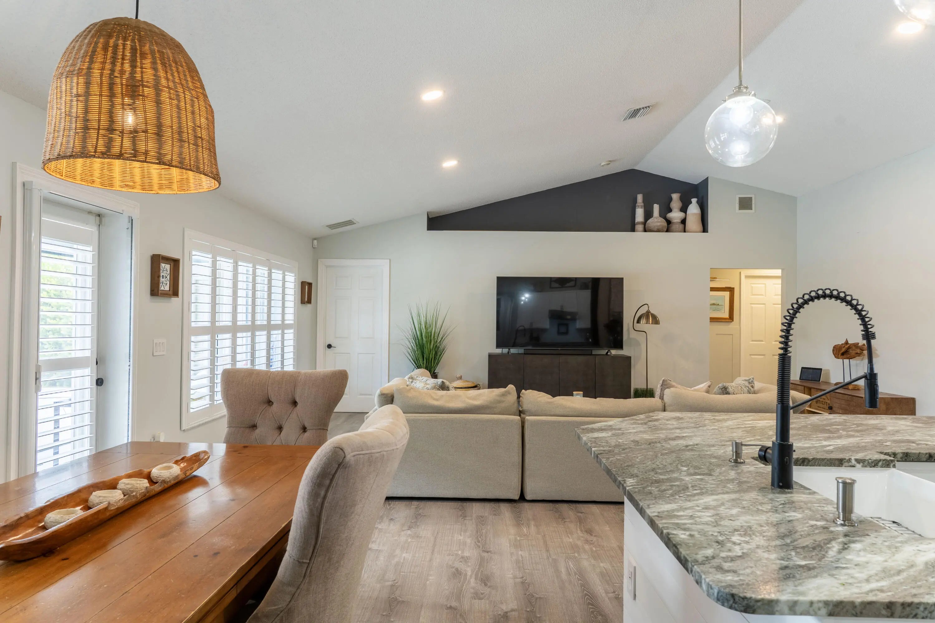 Stunning one-owner CBS home with no HOA. This 4 bedroom, 2 bath + office property is completely updated with custom upgrades and timeless designer finishes. Exterior features an extended paver driveway and front patio (2024); saltwater pool (remodeled 2020) + outdoor shower; custom wood deck + bench seating; and a newly screened 26'x7' lanai! Interior is full of natural light with plantation shutters throughout. Kitchen, bathrooms, primary bedroom closets (2), and laundry room have all been thoughtfully renovated -- craftsmanship and design choices are impeccable! Kitchen features vaulted ceiling, quartzite counters, farmhouse sink, soft-close shaker cabinets and stainless-steel appliances. This is a floor plan that will make sense for any stage of life! ROOF 2022, HVAC 2019