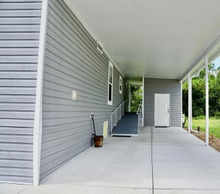 Shows like brand new. This 2018 Fleetwood home features an open concept floor plan ideal for entertaining lots of friends & family. The large eat-in kitchen offers many cabinets and lots of counter space. This 3 bed/2 bath home offers a huge owner's suite w/ large closet and oversized bathroom. Modern recessed ceilings add to the beauty. Inside laundry for convenience. Enjoy a private backyard or relax on the welcoming front porch. Large attached carport and an 8×8 shed—perfect to store tools or pool floats. A perfect blend of comfort and functionality! The $923 monthly land lease covers lawn care and resort-style amenities: swimming, fitness center, tennis, shuffleboard, and more. Near beaches, restaurants, & shopping. Move in and embrace the Florida lifestyle today! Ramp is removed.