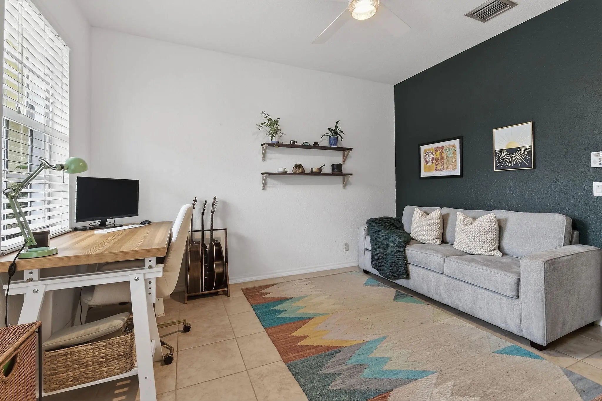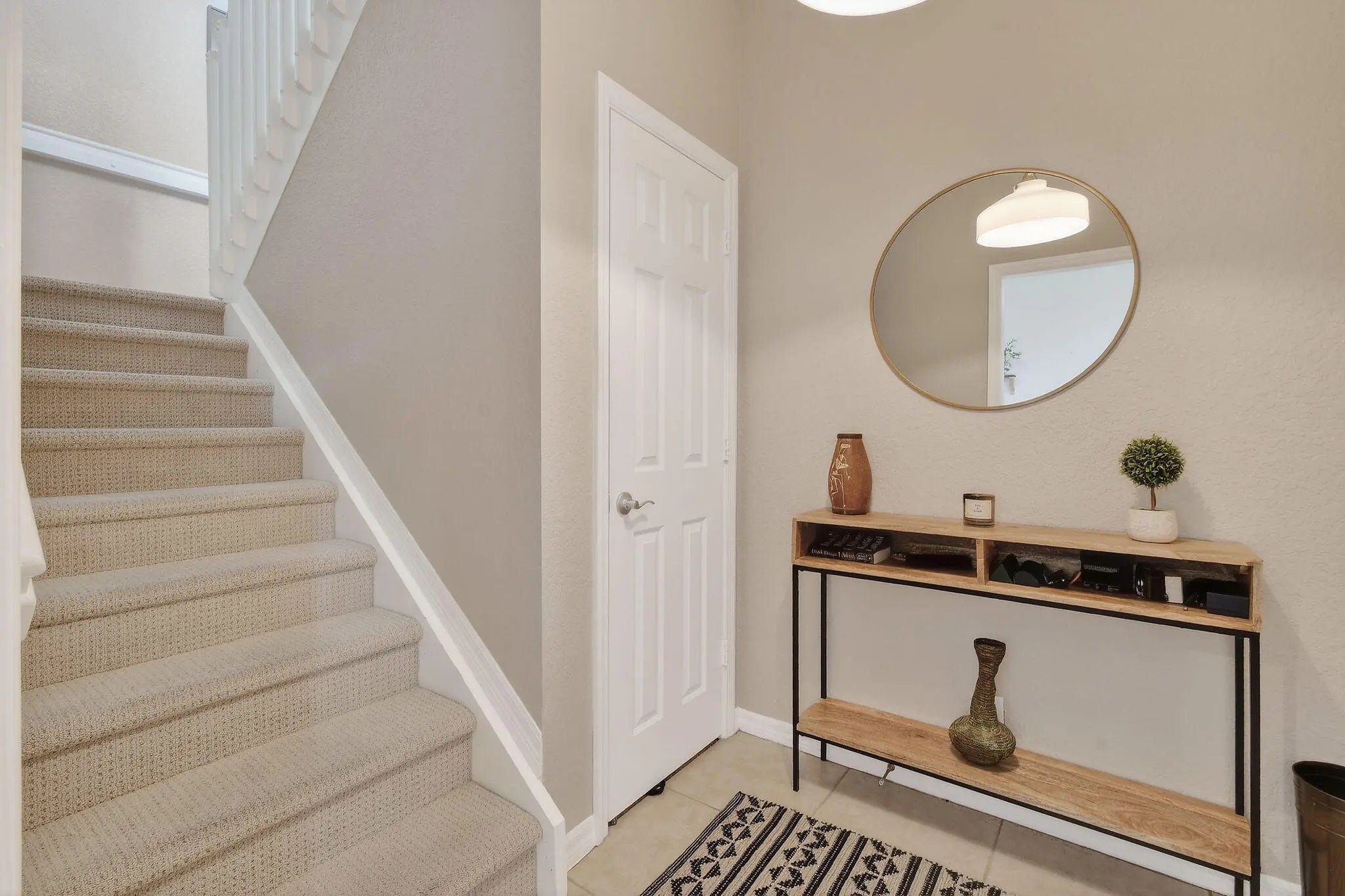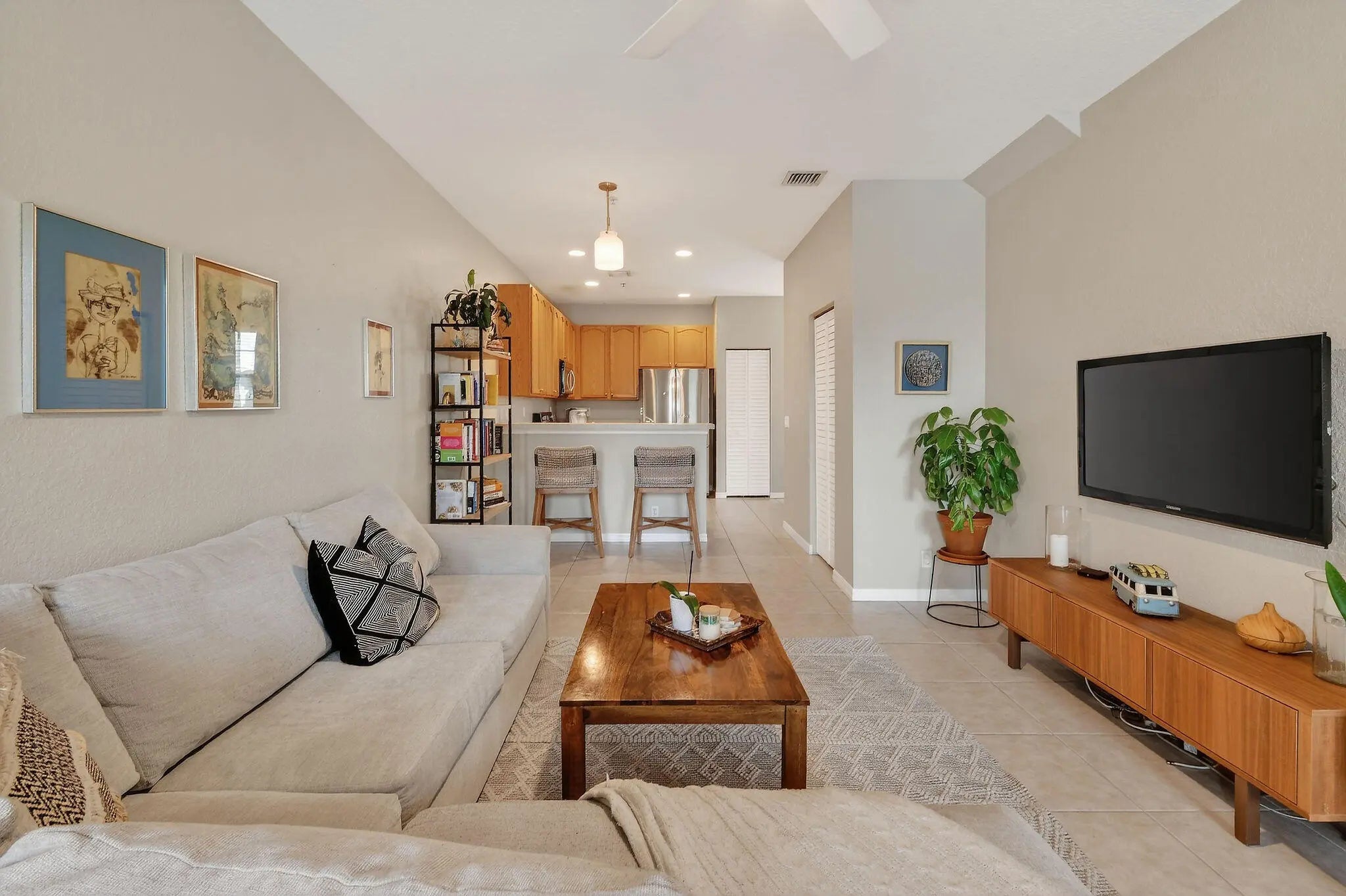 Sandpiper Cove is an idyllic community with water views, mature trees, and charming sidewalks. This well-maintained 2-bedroom, 2.5-bathroom home with a DEN offers 1,542 sq ft of living space and a 2-car garage, combining comfort with thoughtful upgrades throughout. Built in 2006, the home features impact glass on the upper two floors, a 2022 roof, A/C replaced in 2020, and a water heater installed in 2021. Freshly painted and new carpeting (2025), the interior showcases an open-concept layout complemented by stainless steel appliances (2022).This is a very desirable location with lake & fountain views from the second-floor balcony and front patio. Residents enjoy access to two community pools and tennis court/pickleball court, along with 60+ acres of the Botanical Greenway Belt, a scenic natural preserve bordering the neighborhood. Sea Plum Plaza, with its shops and restaurants, is just a short walk away, offering everyday convenience in a charming neighborhood setting.