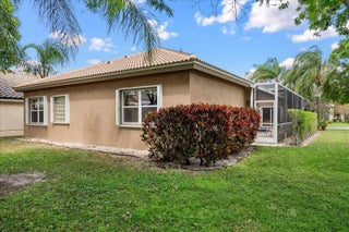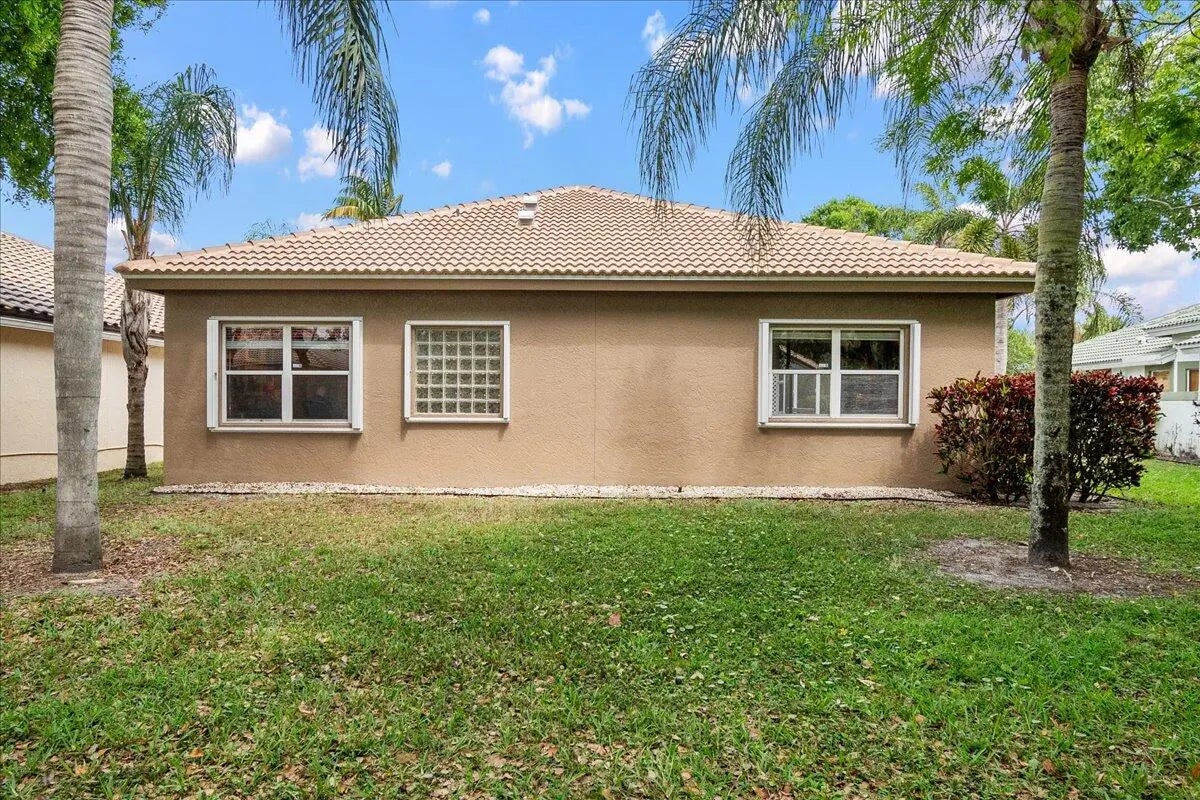 New roof (2025) and private guest suite! Rare 3BR/3BA courtyard pool home with 2-car garage in the guard-gated community of River Bridge. This desirable layout features a 2BR/2BA main home plus a separate 1BR/1BA guest suite with its own entrance—perfect for guests, in-laws, or a home office. The main home offers a split-bedroom floor plan, large walk-in closets, jacuzzi tub, upgraded kitchen with new quartz countertops, separate laundry room, and screened patio overlooking the private courtyard pool. A/C approx. 3-3.5 years old and water heater approx. 4 years old. River Bridge offers resort-style amenities including heated pools, tennis, pickleball, clubhouse, and activities. HOA includes landscaping, cable, and internet. Convenient to Turnpike, I-95, Wellington, shopping, and dining.