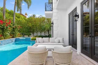 Gorgeously renovated 5BR/5.2BA home designed by Michael Perry with interiors by Scott Sanders. Excellent floor plan features 1st floor and 2nd floor primary suites. Beautiful foyer opens to formal living room. Family room with fantastic built-in wet bar is perfect for entertaining. Chef's kitchen with oversized island and butler's pantry. Formal dining room leads to dining loggia. Convenience of an elevator, storage rooms, and 2 car garage. Mario Nievera-designed tropical landscaping surrounds pool and spa. Fantastic Estate Section location on the Ocean Block of Via Vizcaya.