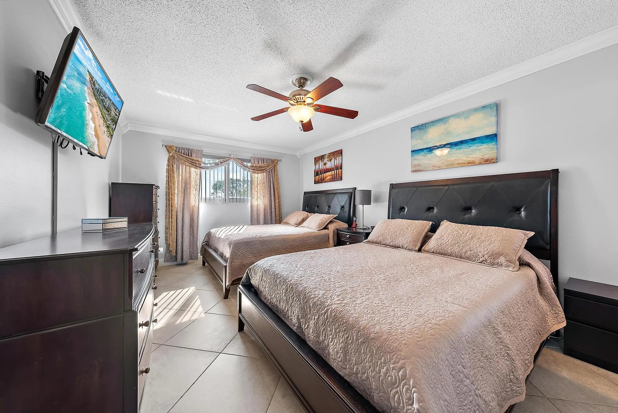 Available beginning July 01, 2026. Welcome to your Palm Springs oasis! This beautifully maintained 2-bedroom, 2-bath condo in Lakeside Village is offered fully furnished and move-in ready, blending comfort, style, and convenience in one inviting space. Inside, you'll find an open kitchen designed for both everyday living and entertaining, featuring a large granite-topped island, rich dark wood cabinetry, and stylish tile flooring throughout. Enjoy peaceful mornings or relaxing evenings on the cozy enclosed balcony, your own private retreat. A recently replaced air conditioning system adds year-round comfort, making Florida living even more enjoyable. Residents of Lakeside Village enjoy access to a wonderful selection of amenities, including a welcoming clubhouse, two sparkling pools, shuffleboard and bocce courts, a small putting green, and a variety of community activities such as arts and crafts, exercise classes, and line dancing. For added convenience, a bus stop is located just steps from the building. This is a wonderful opportunity to enjoy a furnished, move-in-ready home in a vibrant and well-maintained community. Schedule your private showing today.