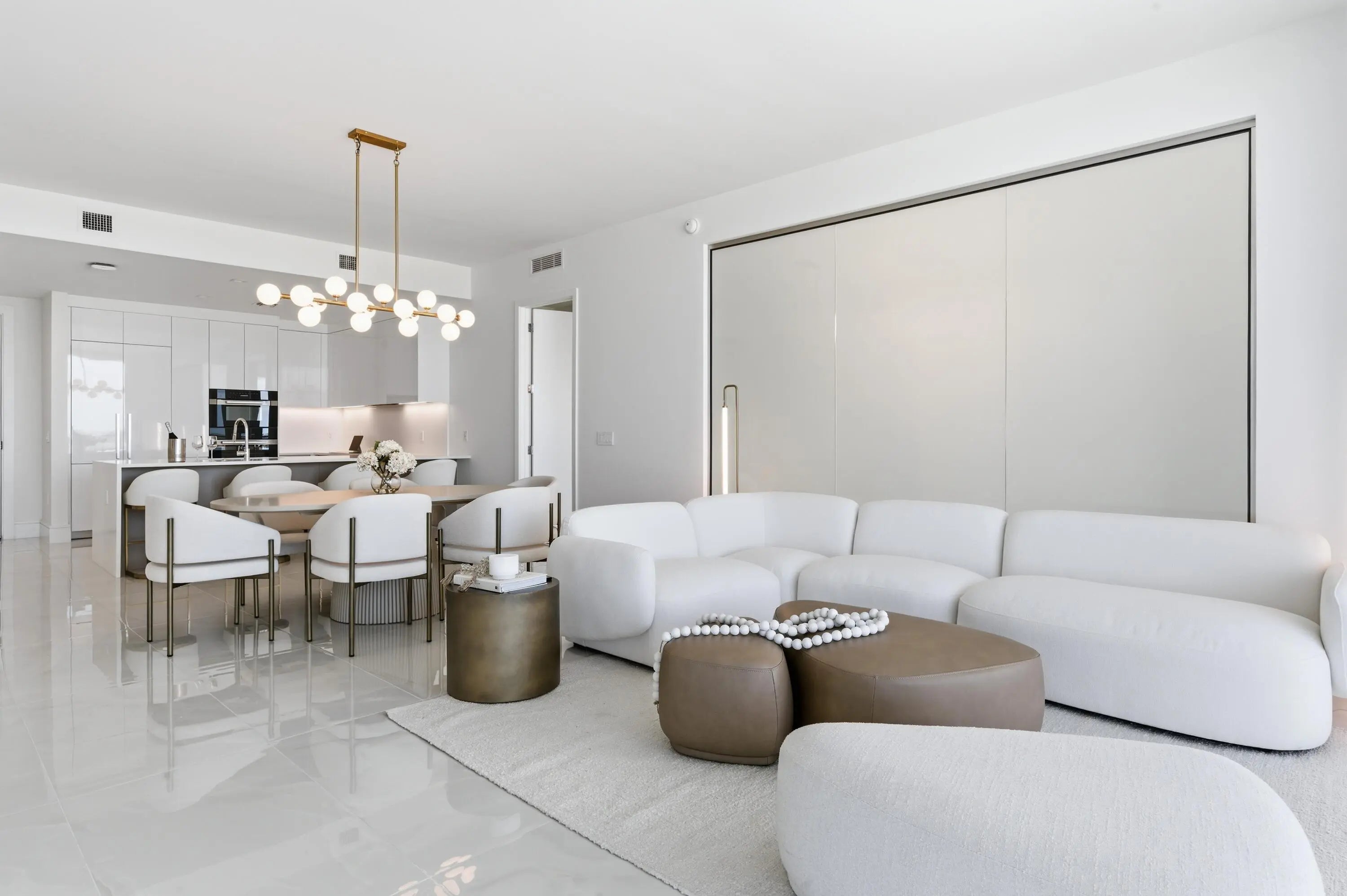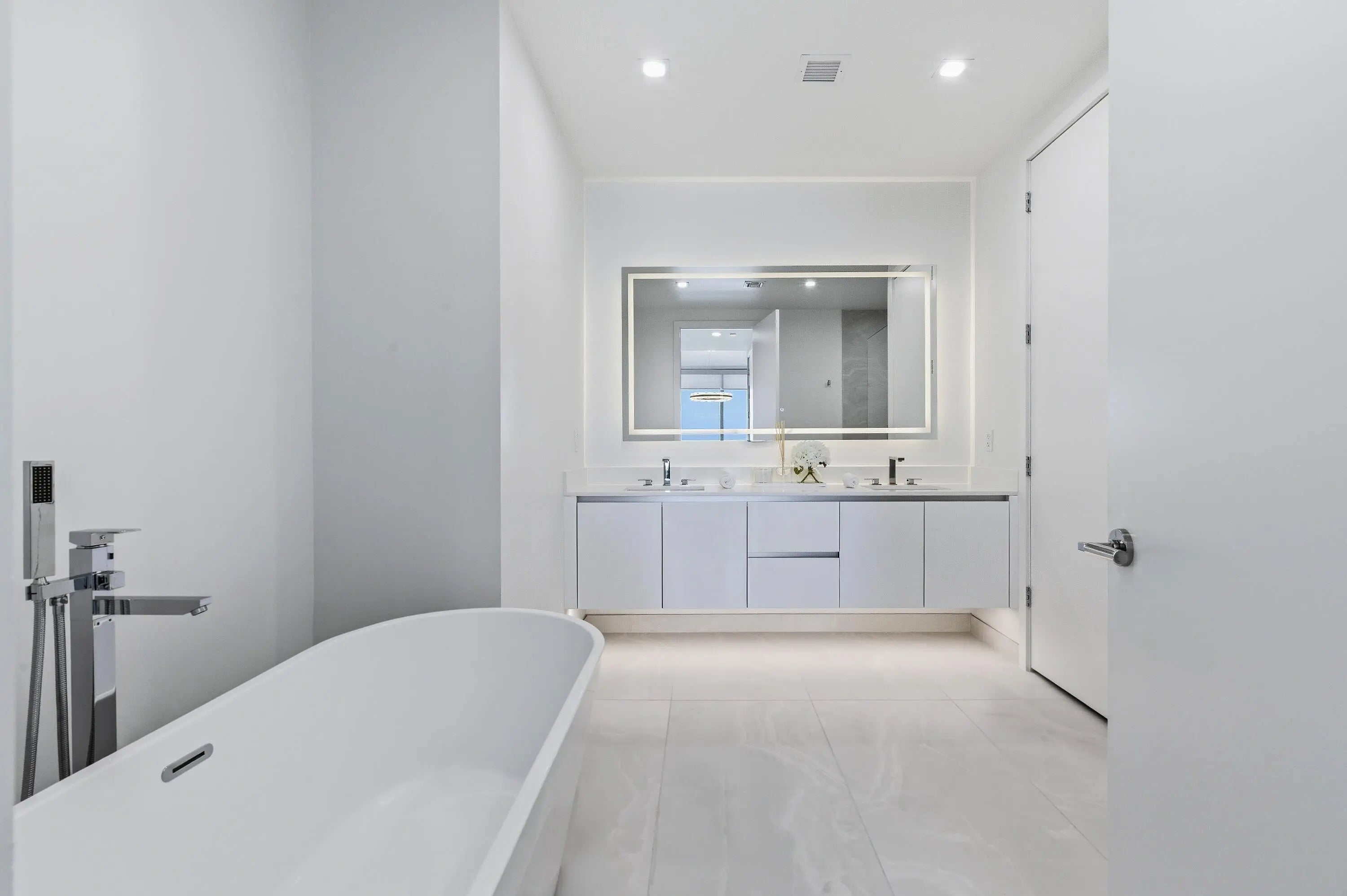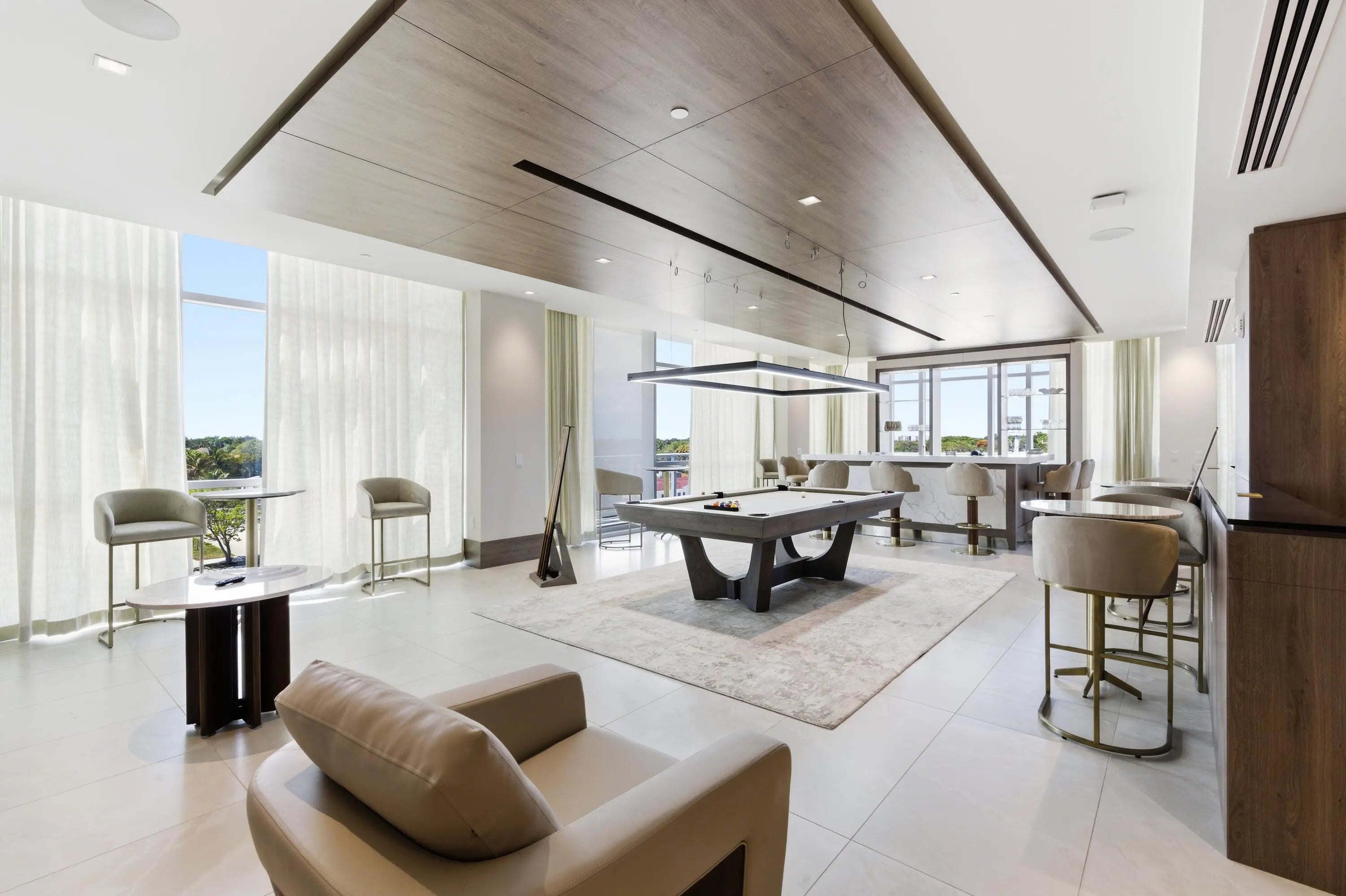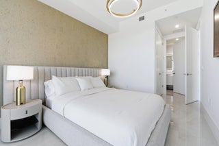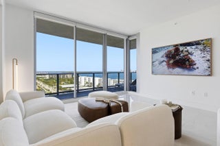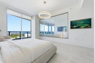 Welcome to Residence N-1205 at Nautilus 220, where refined coastal elegance meets contemporary luxury living in the heart of the Palm Beaches. Perched on the 12th floor with coveted northeast exposure, this stunning 2-bedroom, 2 1/2-bath luxury condominium offers 1,465 square feet of thoughtfully designed living space with partial intracoastal and ocean views and abundant natural light pouring through dramatic floor-to-ceiling glass. The open-concept living and dining areas flow seamlessly to a private balcony, creating the perfect setting for enjoying ocean breezes and beautiful sunrises. A standout architectural feature of the residence is the custom-engineered Switchable Privacy Glass wall separating the primary suite from the living area. With the touch of a button, the glass transitions from crystal-clear transparency to full opacity — allowing you to wake up to expansive ocean views from the comfort of your bed, then instantly restore complete privacy. This rare design element beautifully merges technology, luxury, and intentional living. Beyond your residence, Nautilus 220 offers an amenity experience that rivals South Florida's most exclusive resorts. Residents enjoy direct access from the grand lobby to the waterfront promenade and private marina, featuring 100 deep-water boat slips accommodating vessels up to 100 feet, providing effortless access to the Intracoastal Waterway, world-class fishing, and boating to the Bahamas. Ownership also includes exclusive private beach club access on nearby Singer Island, offering pristine shoreline just minutes away. The community's resort-style amenities include a spectacular beach-entry pool with cabanas and sundeck, rooftop lap pool, multi-jet spa, and sunrise Brazilian hardwood yoga deck overlooking the water. A fully equipped state-of-the-art fitness center, spin studio, yoga studio, sauna, steam rooms, and physiotherapy suite deliver a complete wellness experience. Designed for both relaxation and entertainment, Nautilus 220 also features a bowling lounge with bar, golf and sports simulator, putting green, theater room, poker room, billiards lounge, and a soundproof music and podcast studio. A beautifully designed resident pavilion with catering kitchen creates an elegant venue for private gatherings and social events. Dining and convenience are seamlessly integrated into the community with SeaHawk Prime by celebrity chef David Burke, bringing a premier waterfront dining experience directly to the building, alongside an on-site café for daily enjoyment. Residents benefit from white-glove services including valet parking, concierge, package porter service, and advanced touchless building technology, creating a lifestyle of effortless comfort and sophistication. Residence N-1205 at Nautilus 220 is more than a condominium, it is an elevated waterfront lifestyle where modern design, marina living, luxury amenities, and ocean views converge in one of the Palm Beaches' most exciting new developments. NOTE: Newly installed double pantry and additional closet in Primary Bedroom.