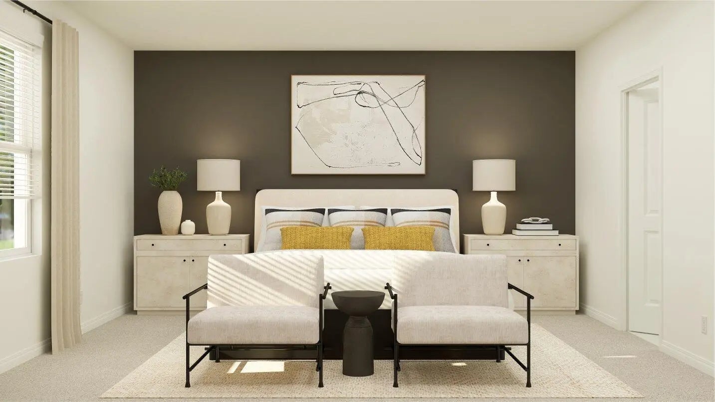 This new two-level home boasts a modern and low-maintenance layout. A versatile flex space can be found off the foyer, leading to an open-concept floorplan perfect for entertaining and everyday multi-tasking. The owner's suite is tucked away into a private back corner. Upstairs, four bedrooms surround a spacious loft. Prices, dimensions and features may vary and are subject to change. Photos are for illustrative purposes only.