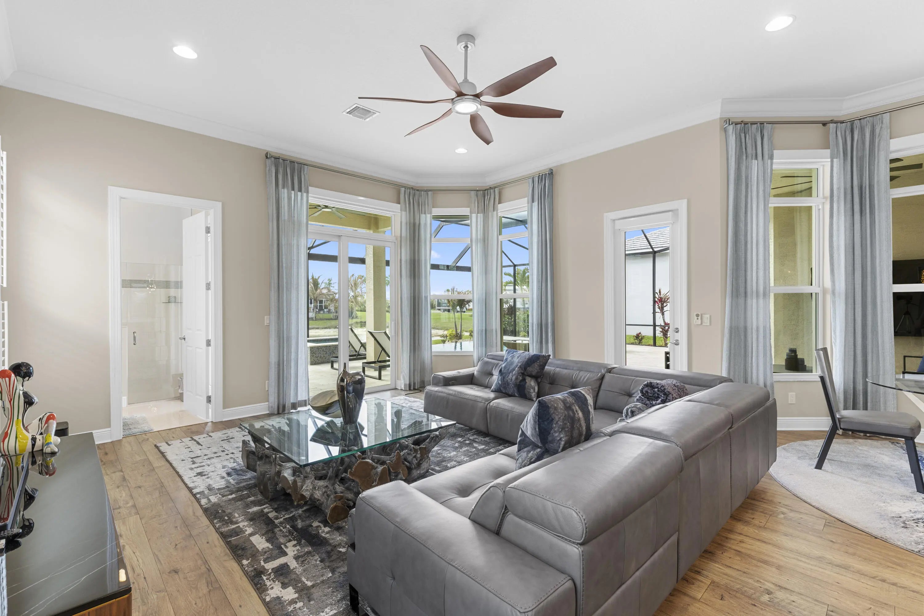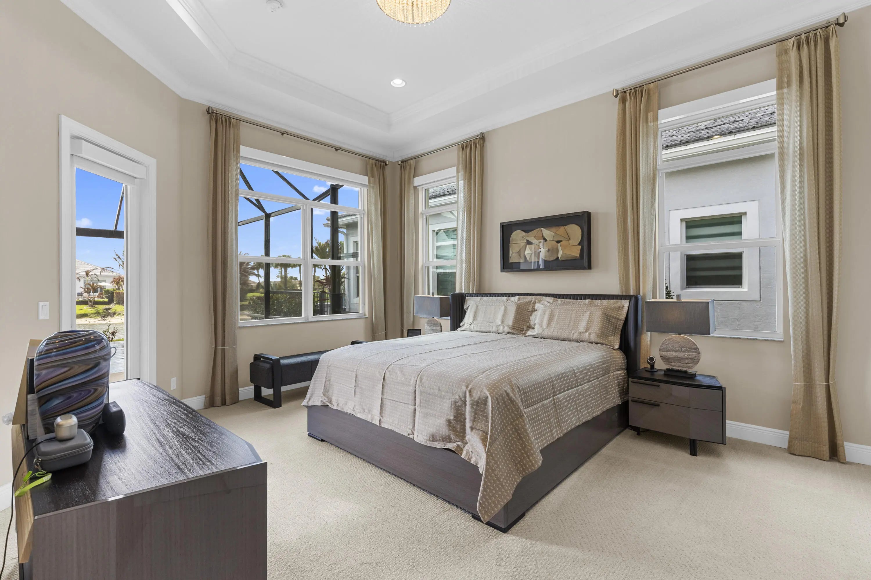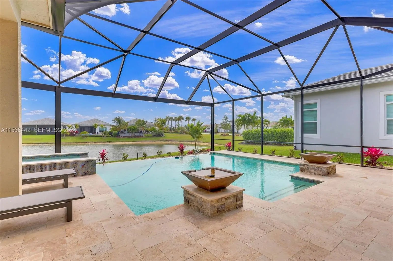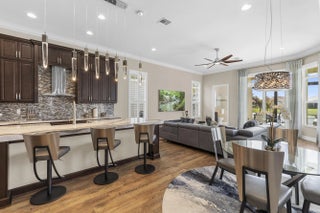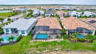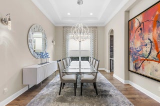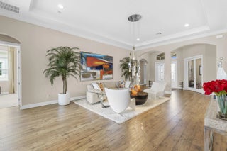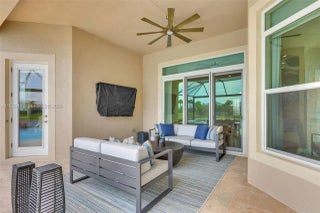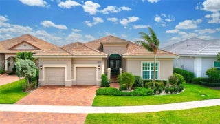 Stunning 2022 Collina Model in the gated community of PGA Verano, featuring 3 BD 4.5 BA, volume ceilings, wood flooring, gourmet kitchen with 42" cabinets, quartz counters with GE Monogram appliances. Decorative double entry doors, double glass office doors, recessed lighting, designer chandeliers, custom electric shades, plantation shutters, and private wet bar. Enjoy a custom heated infinity pool with jacuzzi, lights, water bowls, travertine deck, mirror screen enclosure, and cabana bath. Hurricane impact windows and doors. Tastefully decorated—furniture negotiable. Also offers Guard gated, resort style community, Massive amenity campus, (indoor and outdoor) strong pickleball and active adult lifestyle appeal. Close to Tradition Square, Cleveland Clinic, Turnpike and I95