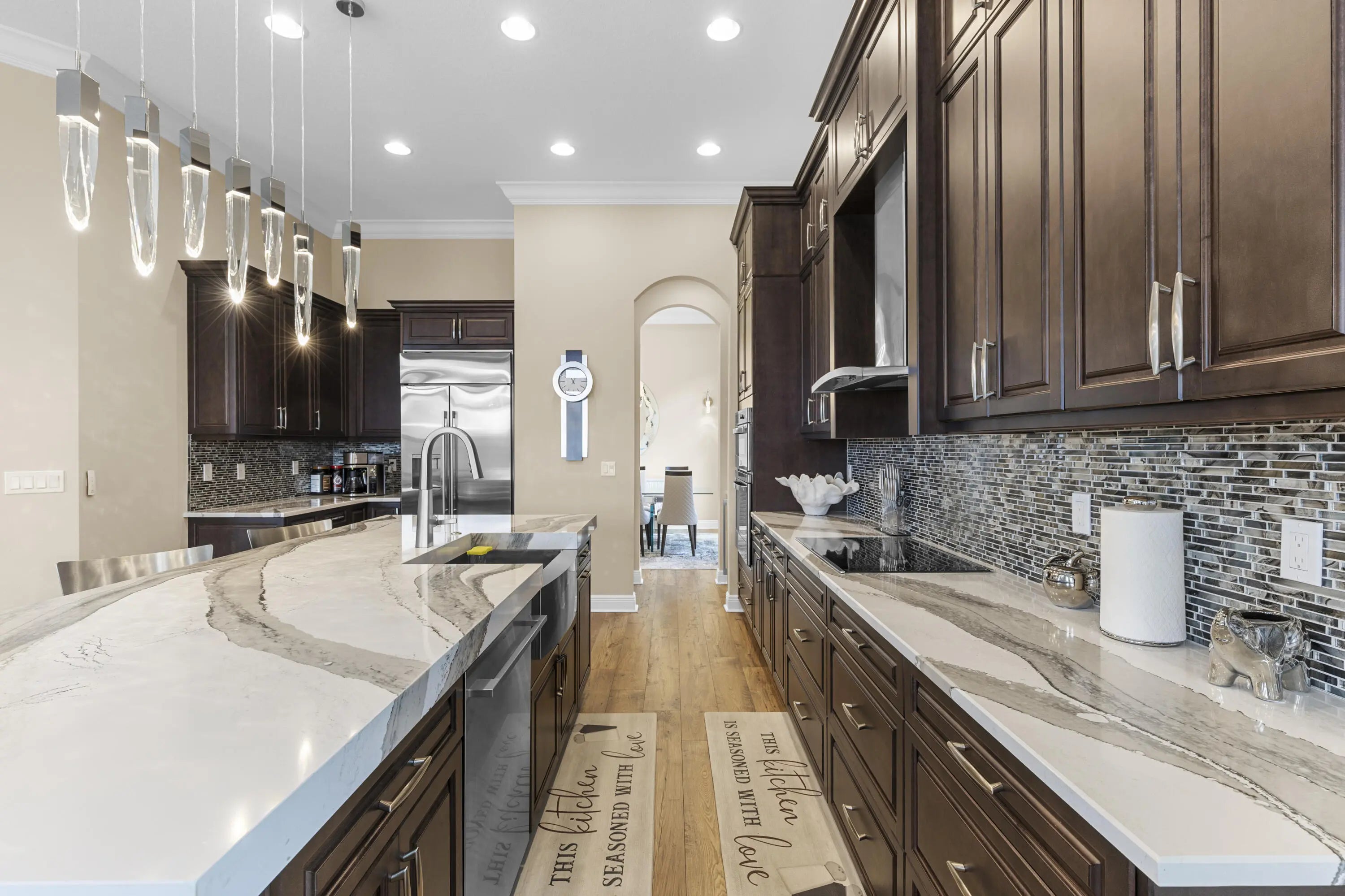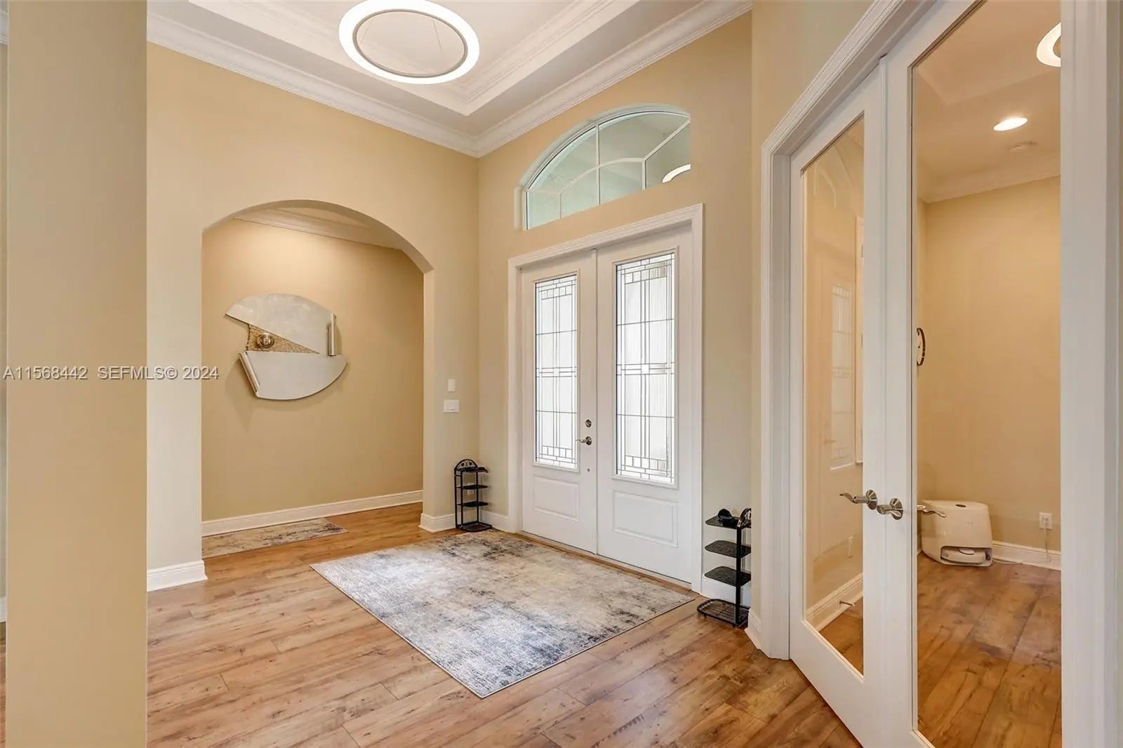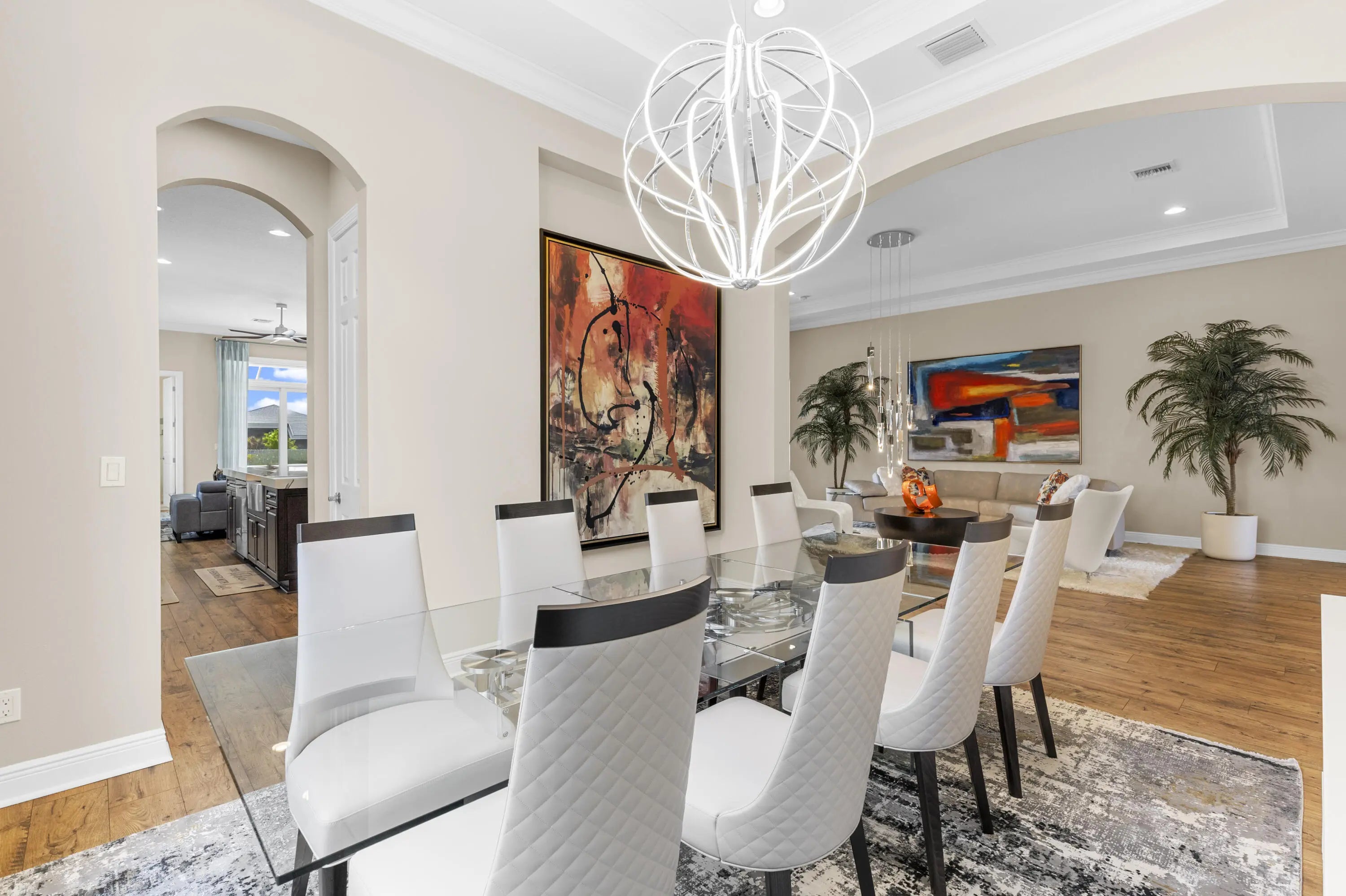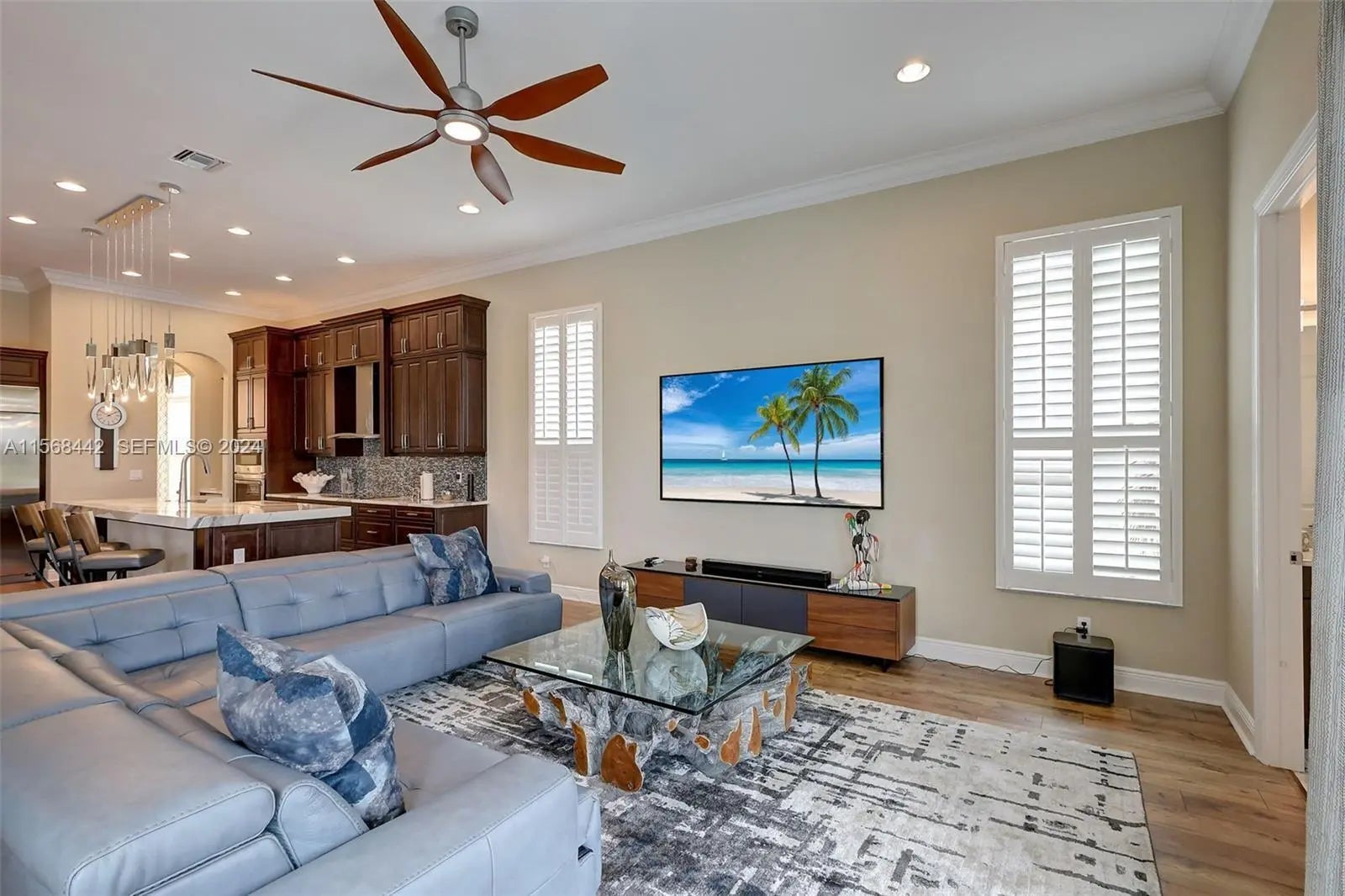 Stunning 2022 Collina Model in the gated community of PGA Verano, featuring 3 BD 4.5 BA, volume ceilings, wood flooring, gourmet kitchen with 42" cabinets, quartz counters with GE Monogram appliances. Decorative double entry doors, double glass office doors, recessed lighting, designer chandeliers, custom electric shades, plantation shutters, and private wet bar. Enjoy a custom heated infinity pool with jacuzzi, lights, water bowls, travertine deck, mirror screen enclosure, and cabana bath. Hurricane impact windows and doors. Tastefully decorated—furniture negotiable. Also offers Guard gated, resort style community, Massive amenity campus, (indoor and outdoor) strong pickleball and active adult lifestyle appeal. Close to Tradition Square, Cleveland Clinic, Turnpike and I95