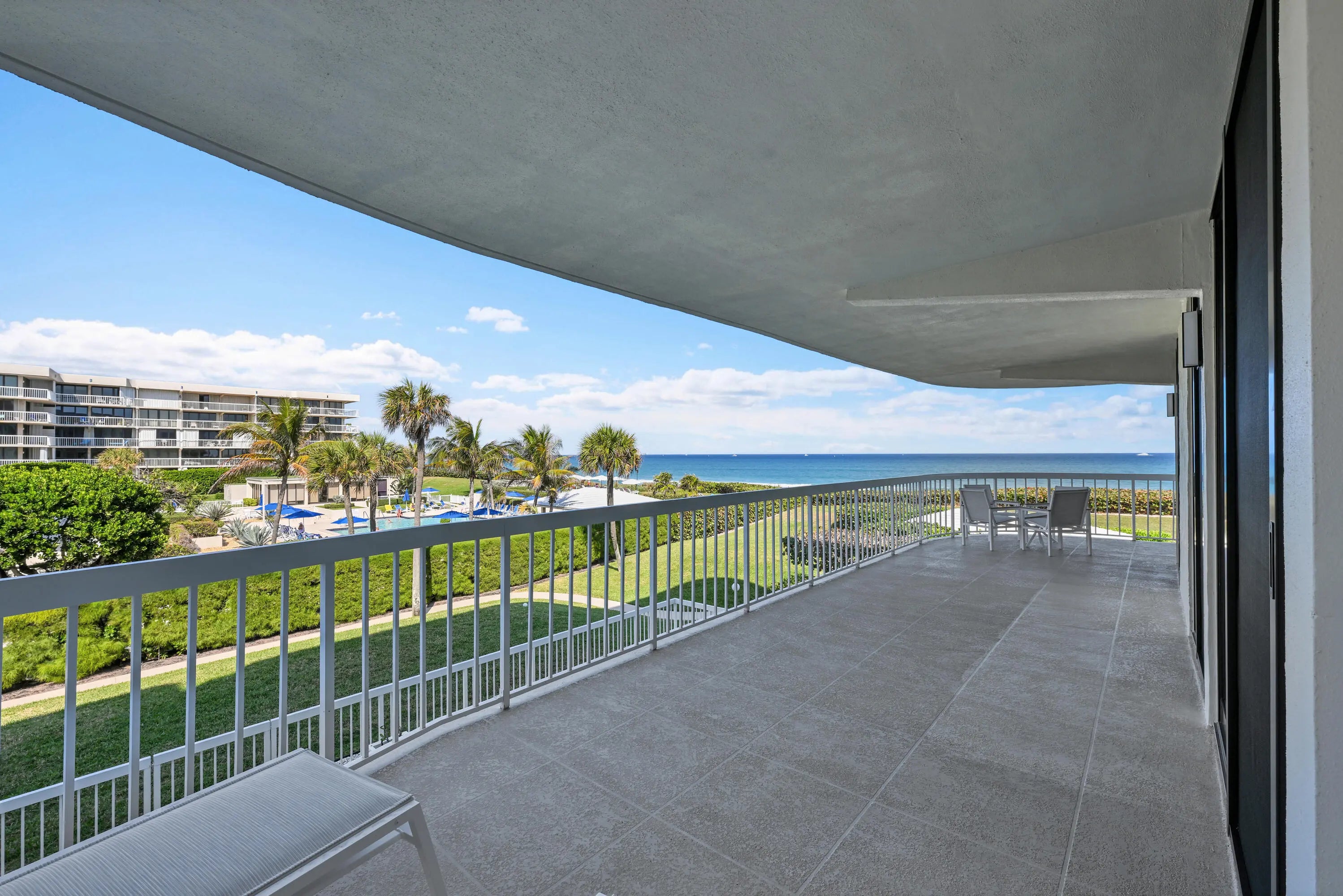 Best Priced Direct Oceanfront 3-bed, 3-full bath home in desirable full service building, offering expansive 40+ foot terrace. This rarely available corner apartment has Gorgeous waterfront vistas and a spacious layout with views from every room. The Meridian offers a complete restoration with new impact windows and doors, new roofs, and balconies. Enter the double-width living/dining room with floor-to-ceiling impact windows and sliding glass doors.. Updated granite kitchen and baths, full laundry. The Meridian has an elegant pool and hot tub, a private sandy beach, 2 tennis courts, a fitness center, guard house, on-site manager, indoor parking and EV charging stations. Close to the Four Seasons, the Par-3 Golf Course and Worth