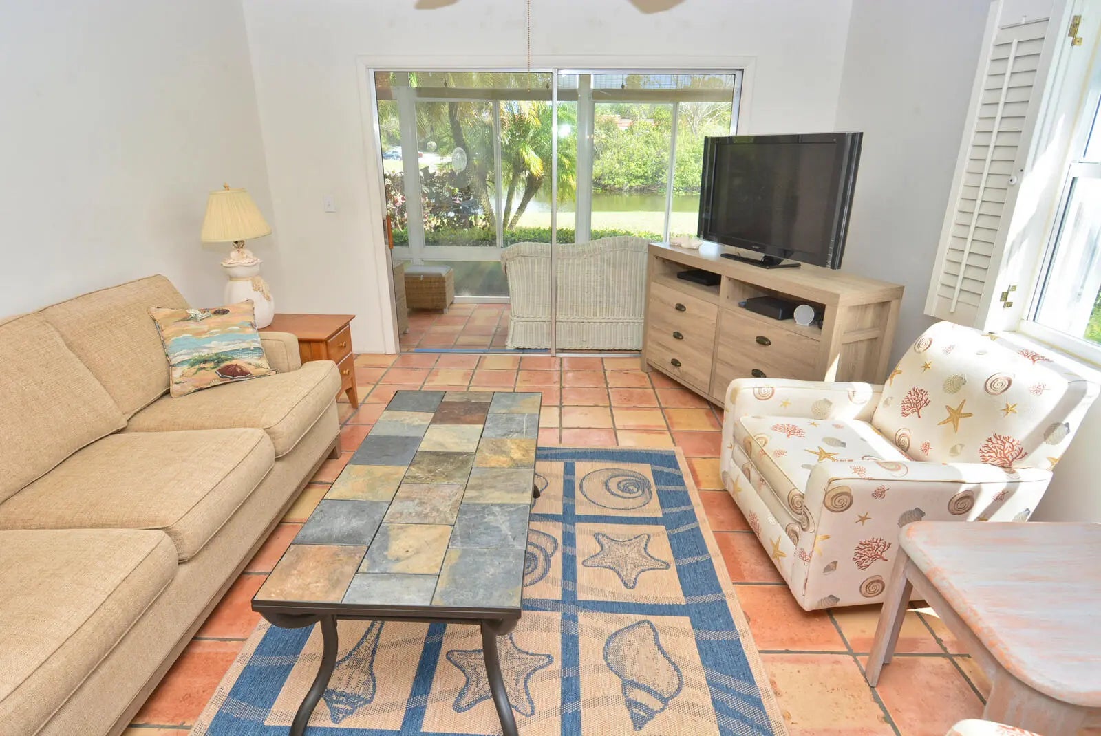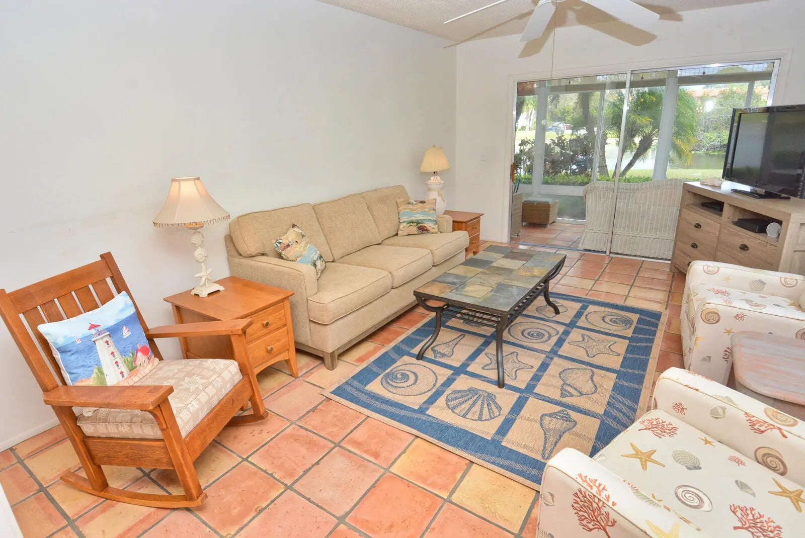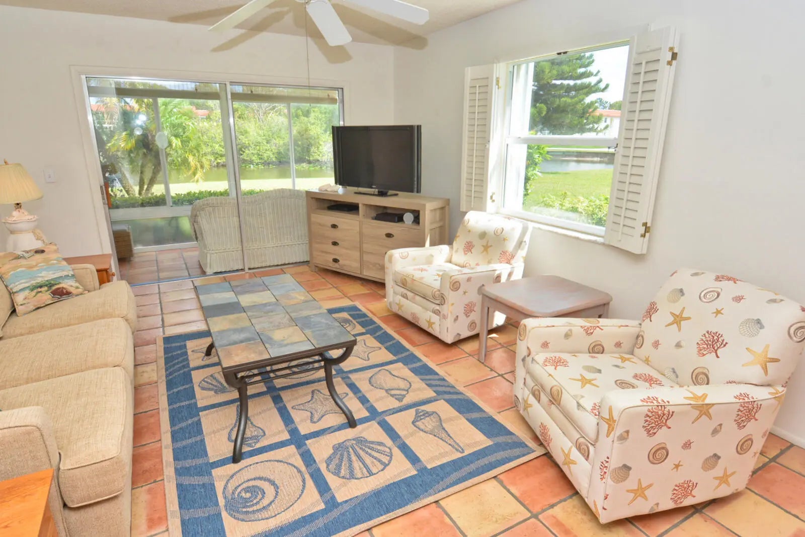 This first floor 2bedrm 2bath floor plan has fantastic lake views from the lanai. So peaceful & relaxing! There's a touch of old Florida in the authentic terra cotta Tile floors throughout. Updated windows and open-concept dining and living bring those lake views all the way inside. White kitchen with pass-thru to dining & some updated appliances make cooking and entertaining simple. Updated A/C and HWH bring peace of mind to you. This condo is tastefully decorated with a touch of Florida too. No renting for first 2 years, no commercial vehicles, trucks or motorcycles. Vista Del Lago is an active 55+ community with clubhouse, pool, workshop, library. lush landscape & walking paths in the Stuart/Jensen Beach area. Adjacent to North River Shores public golf course. Convenient location close to Treasure Coast Mall, restaurants, entertainment, etc. This is a beautiful, well-maintained community with lush landscape, walking paths, lakes, pool, clubhouse, library and so much more. No trucks, motorcycles or commercial vehicles. Must own for 2 years before renting.