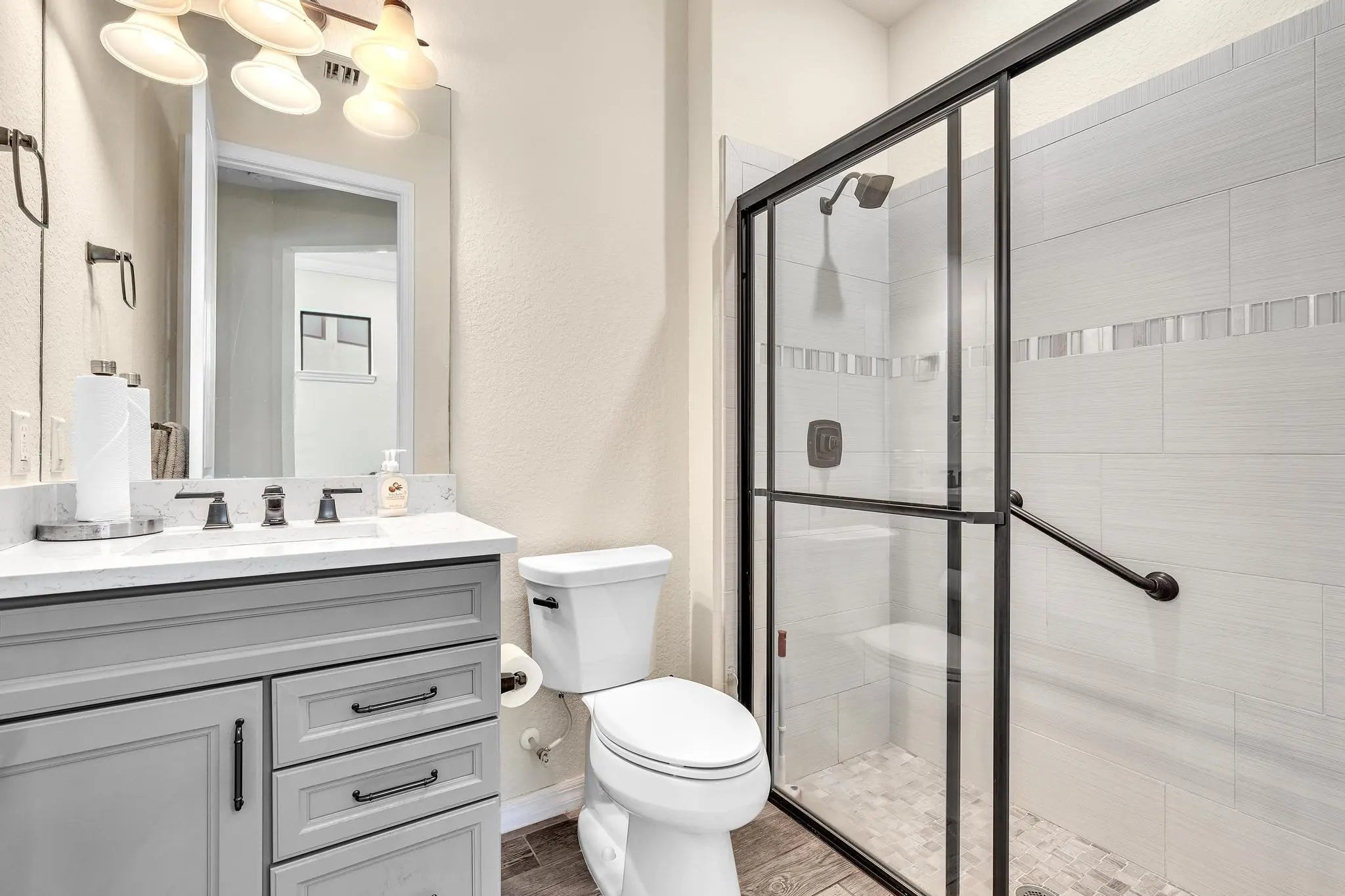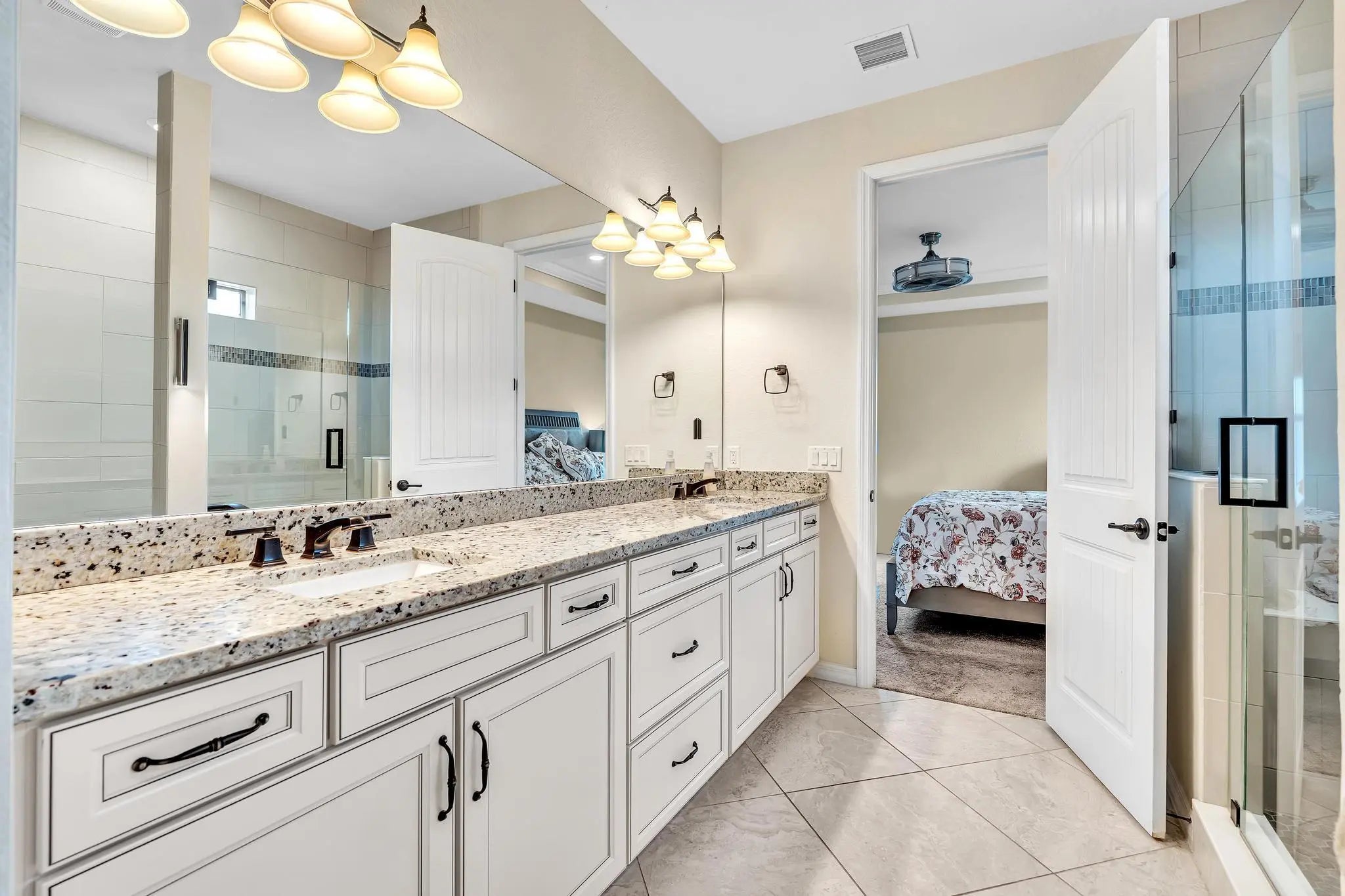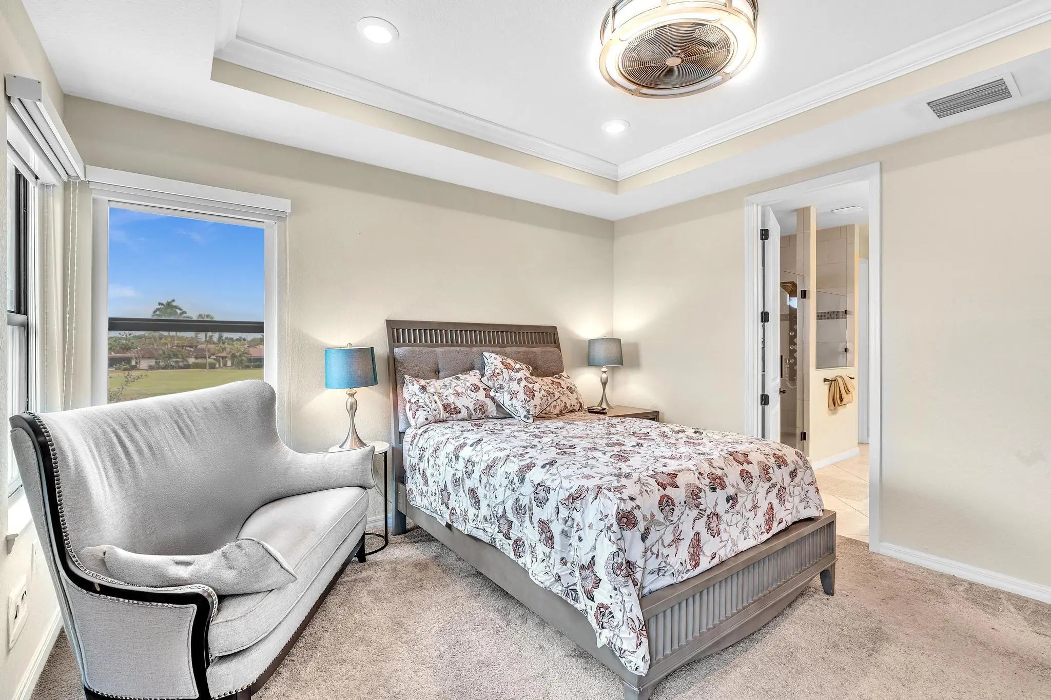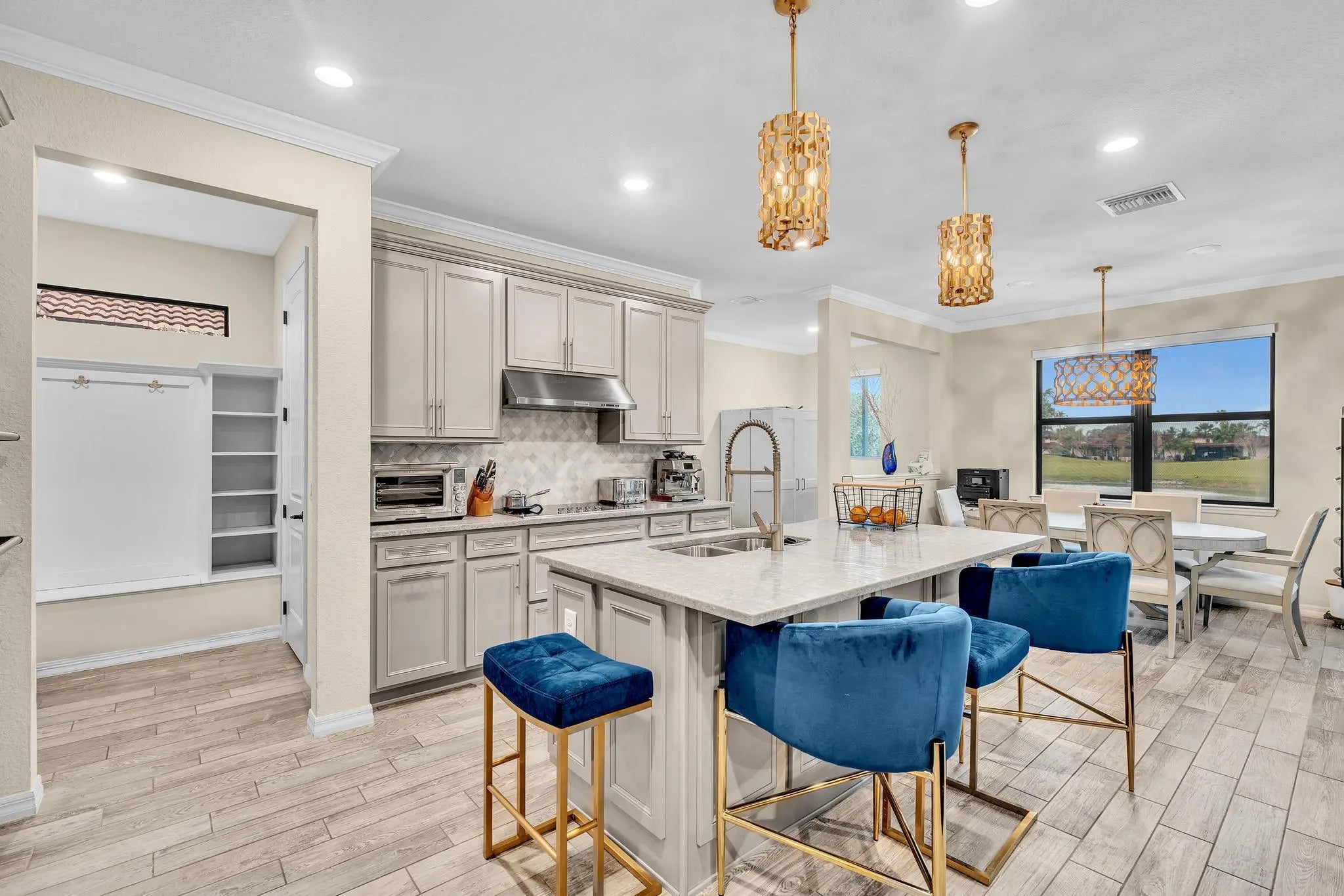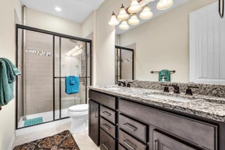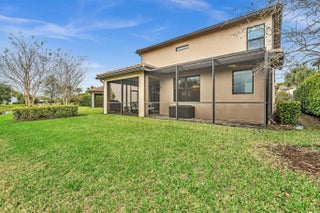 Golfer's paradise awaits all at The Enclave, Woodmont! This premium lot boasts a spacious 5bdrm/3-bths open-concept Pulte home, Builder upgrades, tile floors in the main living areas, carpet upstairs. The chef's kitchen features energy-efficient stainless steel appliances, quartz countertops, and a stylish backsplash. Adjacent to the kitchen is an office. A convenient ground-floor 1 bdrm and 1 bths, perfect for guests or in-laws, while upstairs you'll find 4 bdrms, 2 bths, plus loft. Enjoy a screened-in patio with stunning lake and golf course views. Storm-impact windows and doors. Residents have access to the Woodmont Country Club's fitness center, pool, tennis, pickleball, dining, banquet hall, golf course, plus walking and jogging paths throughout. Make this your home. ROOM FOR POOL.