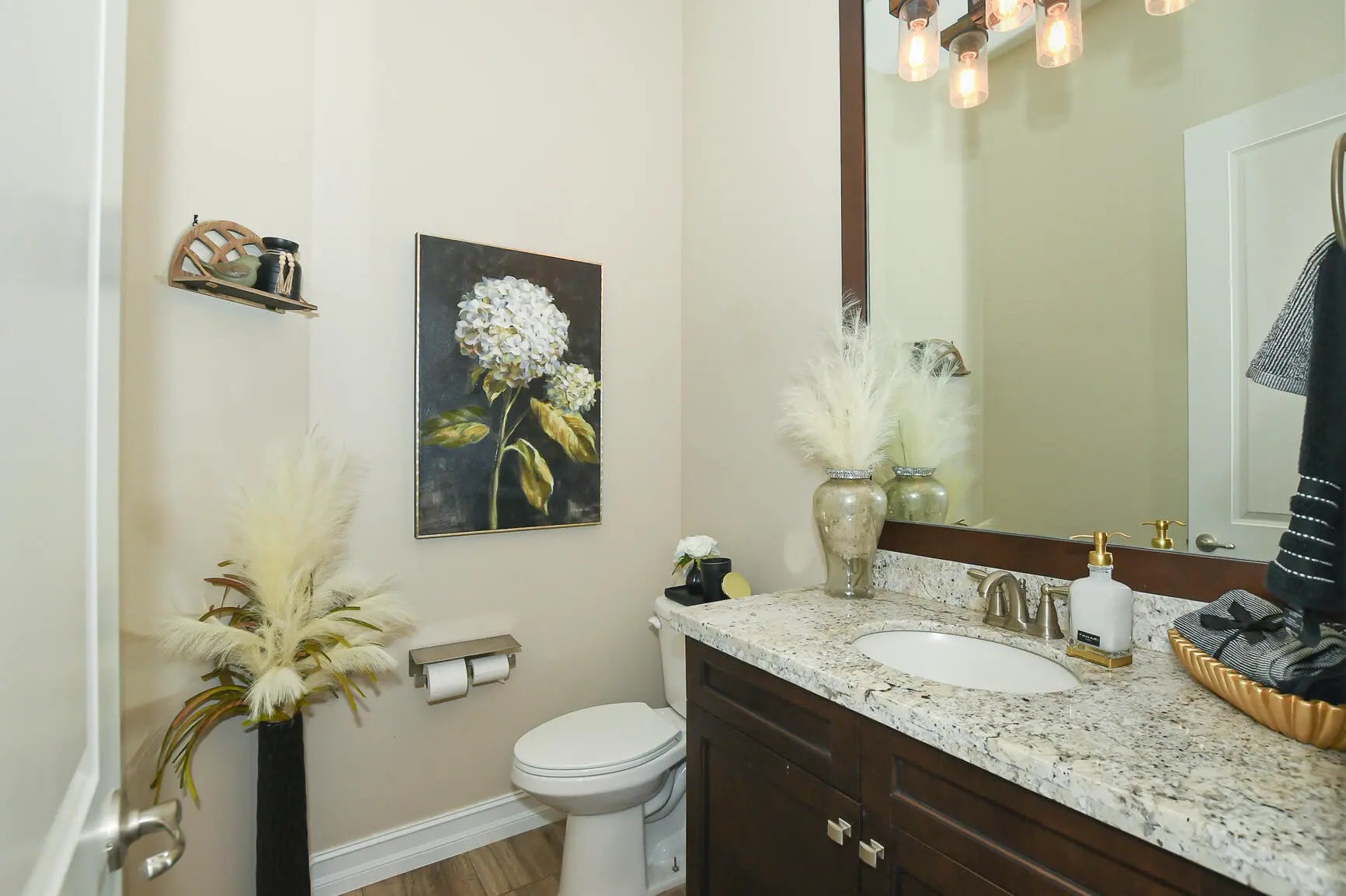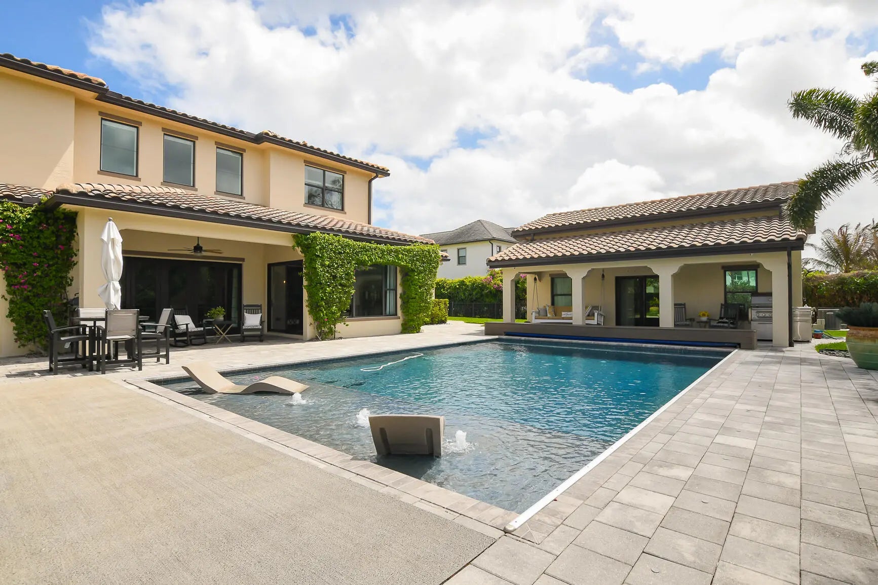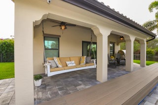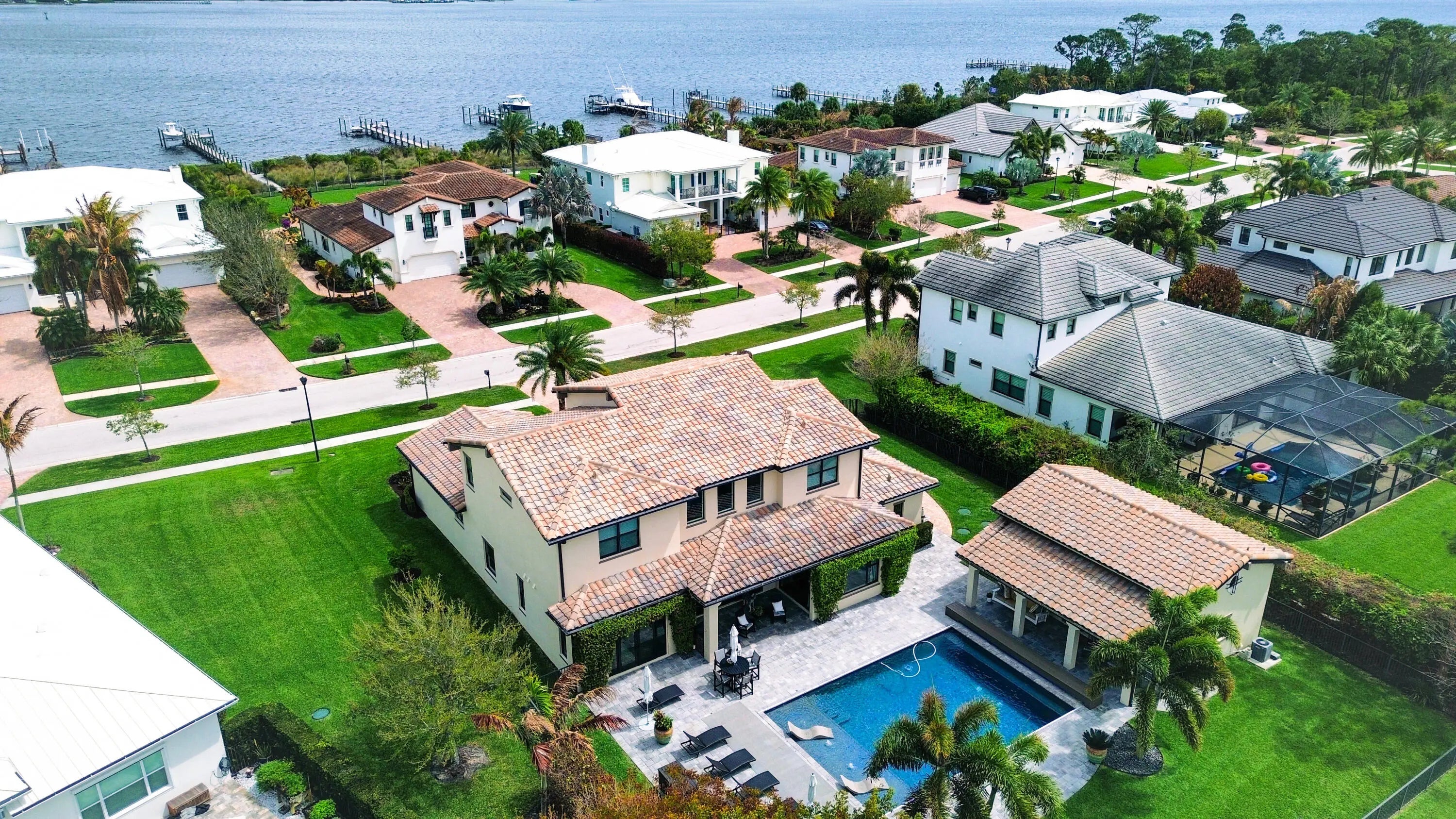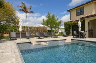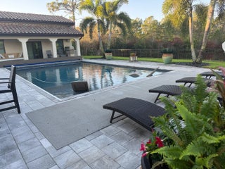 Exceptional opportunity to own a spacious estate home with a detached guest house in the highly desirable gated Riverbend community. This stunning 5-bedroom, 4.5-bath residence offers over 5,300 square feet of living space with a functional open floor plan designed for both everyday living and entertaining. The main home has been thoughtfully updated with brand new flooring throughout, complemented by beautiful new countertops and a new gas cooktop. An upstairs loft provides additional flexible living space ideal for a media room, office or playroom. First-floor owner's suite with French doors opening to the pool, your private escape just steps away. Step outside to a private backyard retreat complete with a saltwater pool and covered patio—perfect for year-round outdoor living. The detached guest house is a rare and valuable feature, offering a full bathroom, kitchen, laundry, loft space, and private living area—ideal for extended family, and guests. Residents of Riverbend also enjoy access to a community dock, offering a true waterfront lifestyle with opportunities for boating, kayaking, and taking in serene water views. Located in a private, gated waterfront community with convenient access to I-95, Florida Turnpike, shopping, dining, and NY Mets spring training.