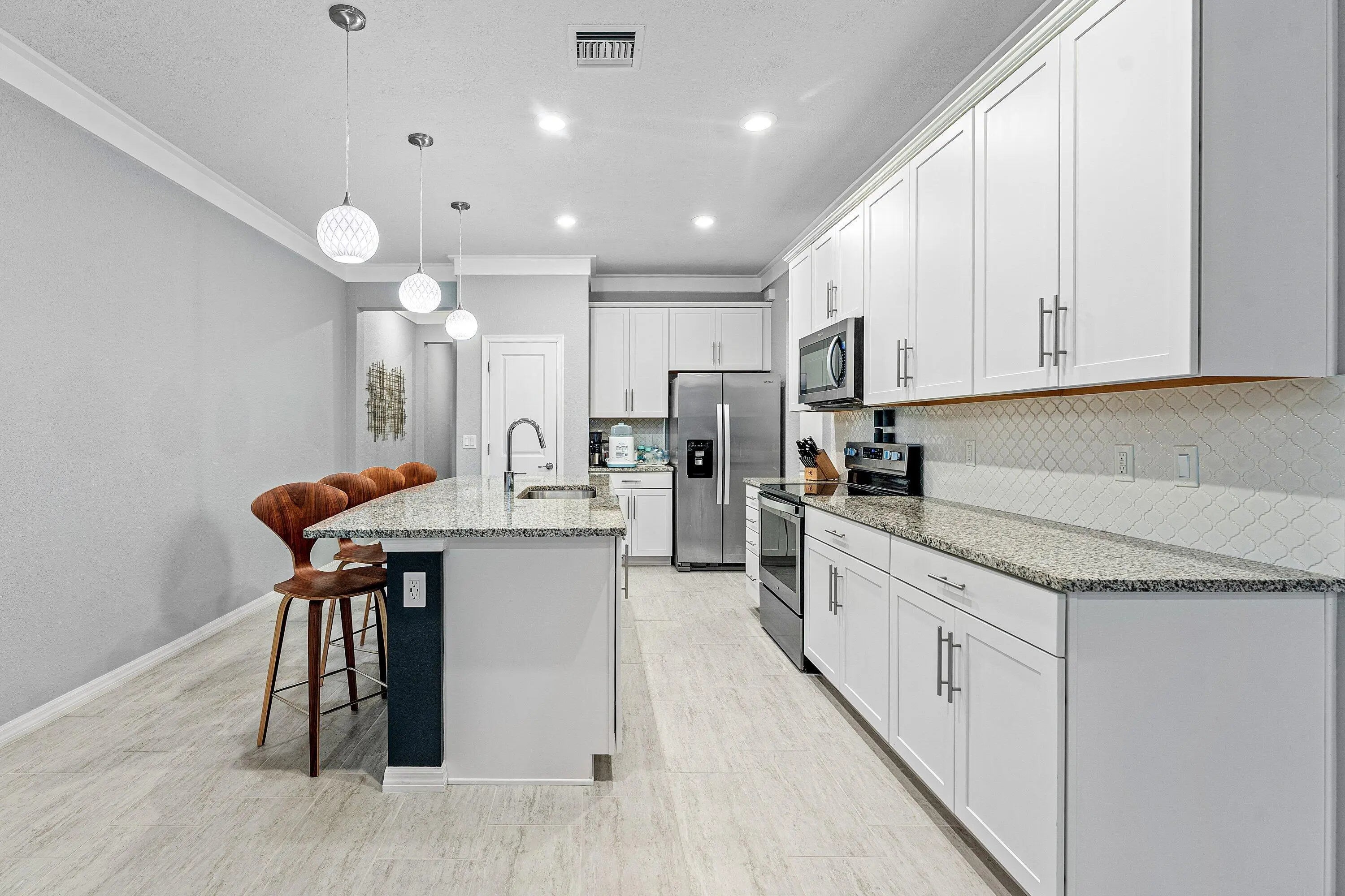 Welcome to this 3-bed townhouse in Palm Springs under $400K located at 2345 Byron Street in the gated community of Preston Square. Built in 2019 by Pulte Homes, this two story residence offers 3 bedrooms, 2.5 bathrooms, and approximately 1,612 square feet of living space designed for comfortable everyday living. The main level features tile flooring throughout the living areas and an open concept layout connecting the living room, dining area, and kitchen. The kitchen includes granite countertops, stainless steel appliances, a kitchen island, and pantry storage. The living room also features a decorative accent wall designed for a TV focal point, adding style and character to the space. An attached one car garage and driveway provide convenient parking. Upstairs, the primary suite includes dual sinks, a walk in closet, and a separate shower. Two additional bedrooms and a full bathroom provide flexibility for family members, guests, or a home office. Carpet flooring on the second level adds comfort to the sleeping areas. The home also includes panel shutters for storm protection and interior laundry located on the upper level. Residents of Preston Square enjoy gated entry and community amenities including a pool, playground, sidewalks, and common areas maintained by the HOA. The property is zoned for Meadow Park Elementary, Conniston Middle School, and Forest Hill Community High School. Conveniently located near shopping, dining, and commuter routes throughout Palm Springs and Palm Beach County, this home offers a great opportunity for first-time buyers or families looking for a newer construction property in a well-maintained community.