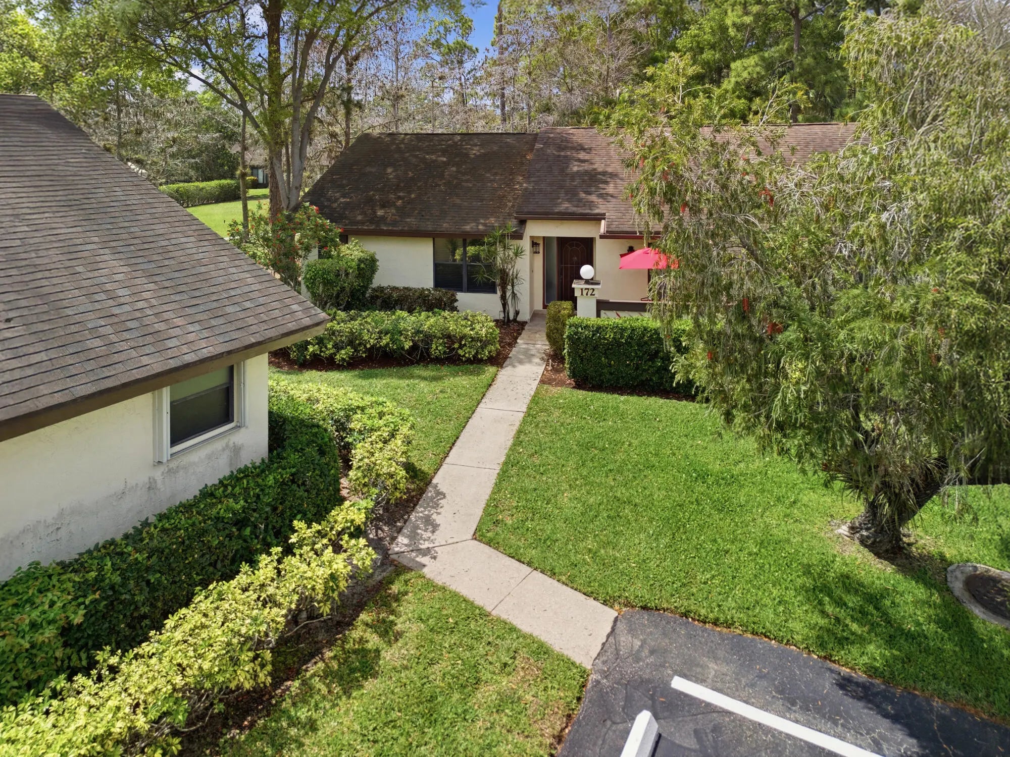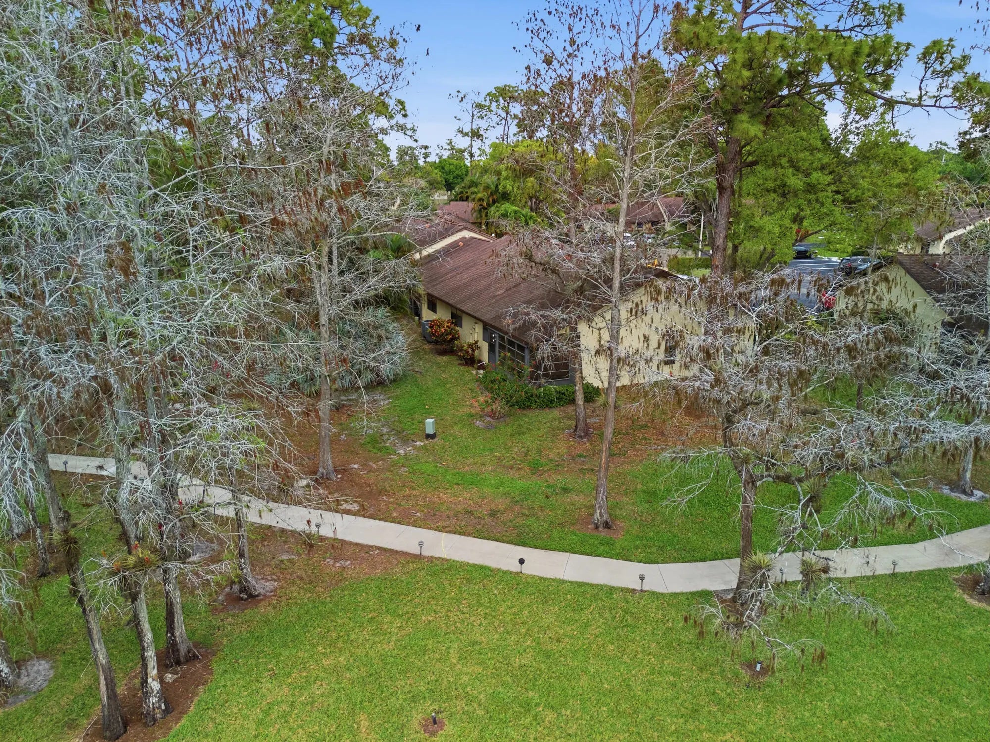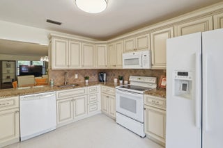 Pristine corner unit adjacent to pool and clubhouse. Beautiful updated kitchen with granite countertop, remodeled guest bath, freshly painted interior, all tiled thru out and newer central air unit. Light and airy unit with office/den that is also air conditioned. The 3rd bedroom has wall down and can easily be converted back. This home shows beautifully and is in an active adult community with resort style pool, clubhouse and tennis. Convenient to shopping, golf and community park.