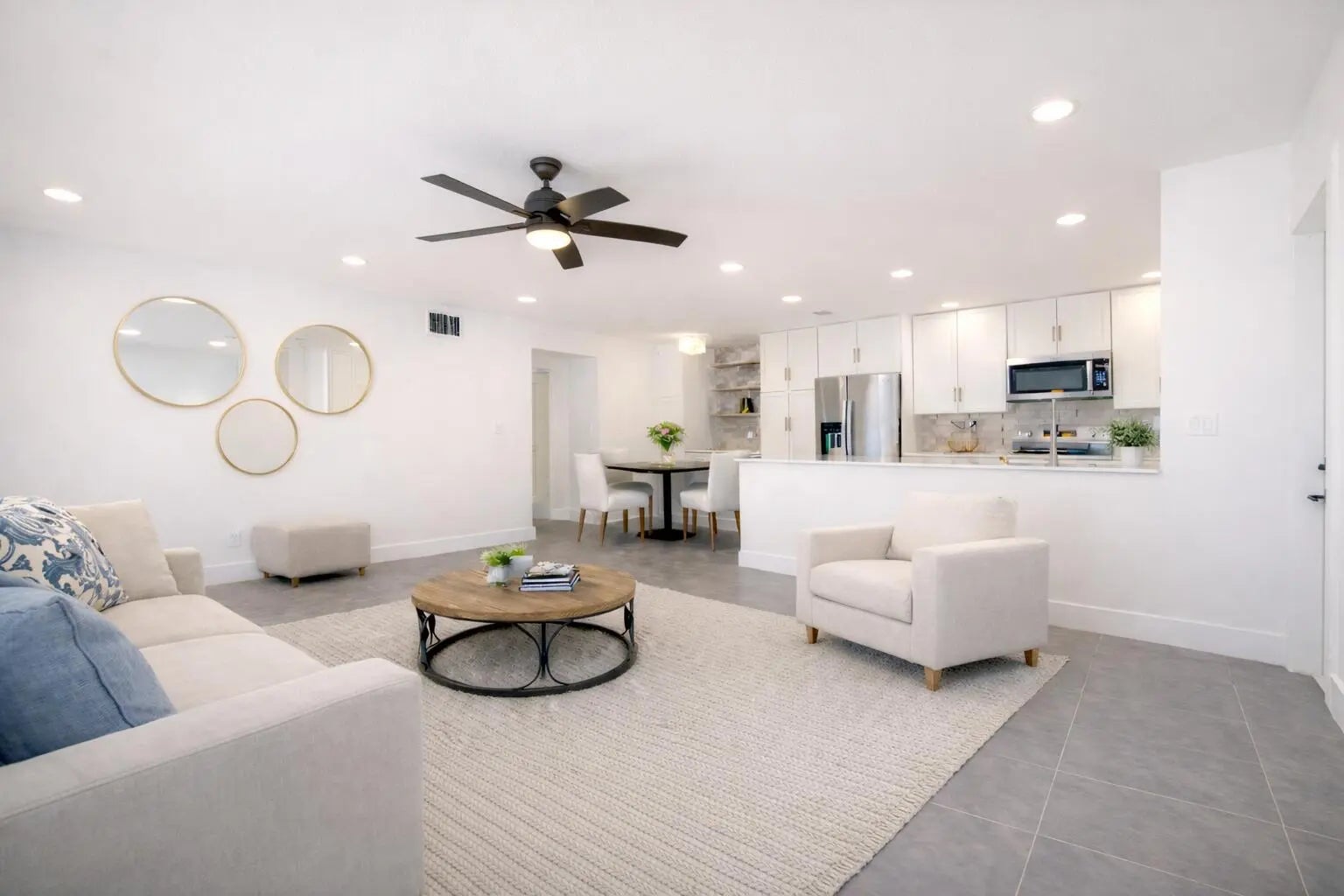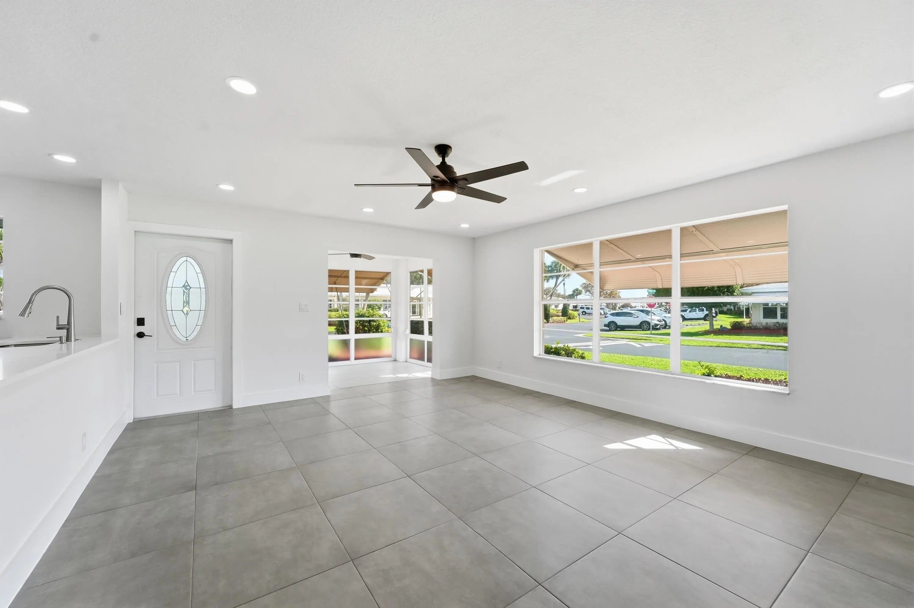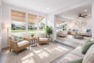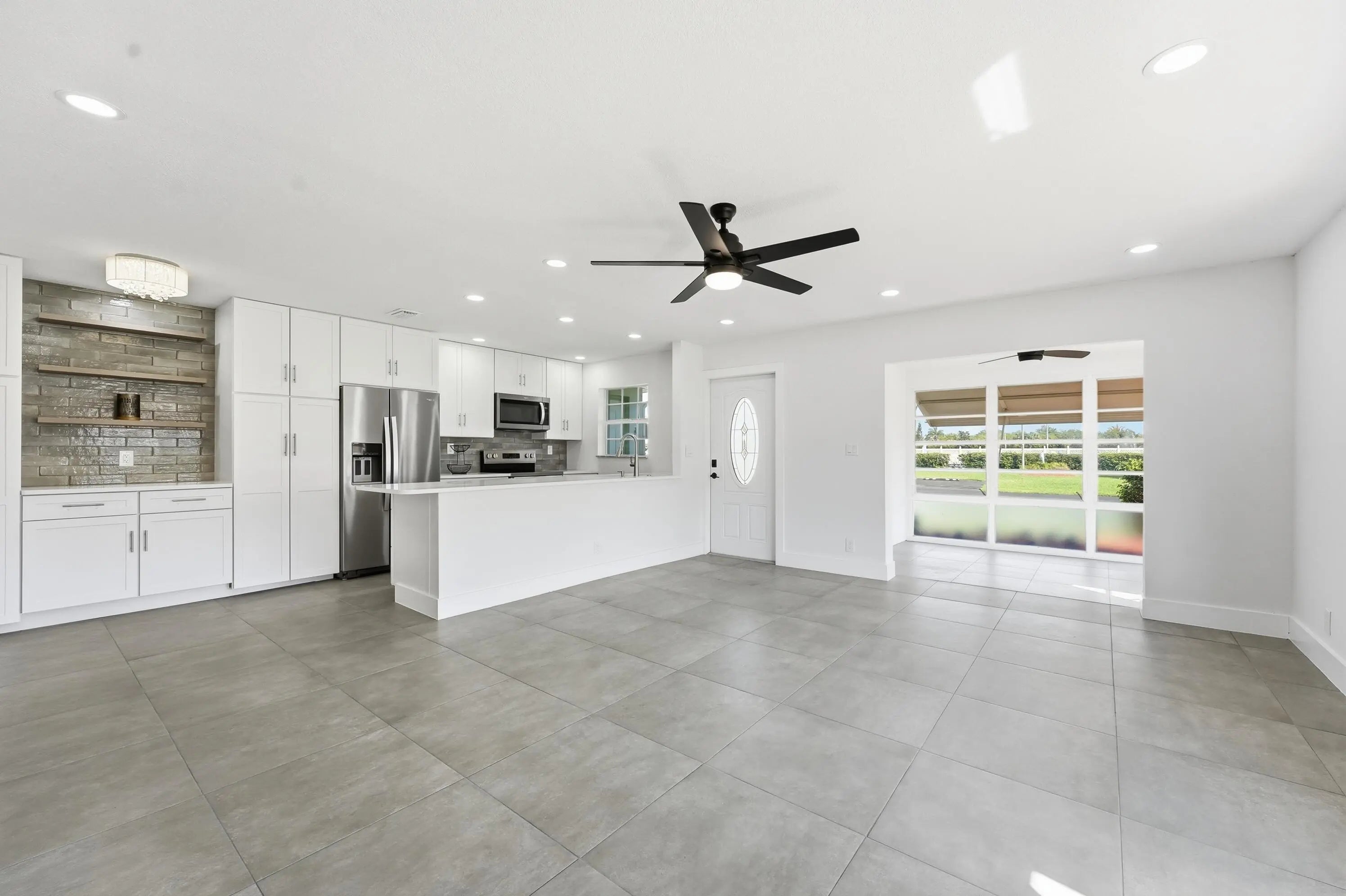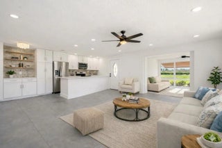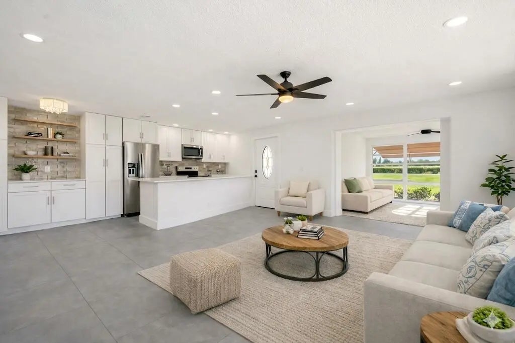 Fully renovated 2 bedroom, 2 bathroom corner villa located across from the pool in Fort Pierce's premier 55+ gated community. Showcasing its new modern luxury finishes featuring a gourmet kitchen with 42 " cabinets, quartz countertops, subway tile backsplash, & stainless steel appliances. 24x24 Porcelain tile flooring & 6 in base molding throughout w/ 4 in molding around doors/entryways & all new lighting throughout. Bathrooms feature porcelain tile flooring & walls w/ vessels sinks. Both front & back doors have been upgraded to impact. The in unit laundry features a luxury washer/dryer combo. HOA covers cable, high-speed internet, water, sewer, trash, lawn care & 24hr manned security. Heated pool, tennis & pickleball courts, shuffleboard, & a clubhouse w/ a full social calendar. Enjoy catch-and-release fishing on the community lake. Located within 10 minutes to the beautiful beaches of Hutchinson Island.