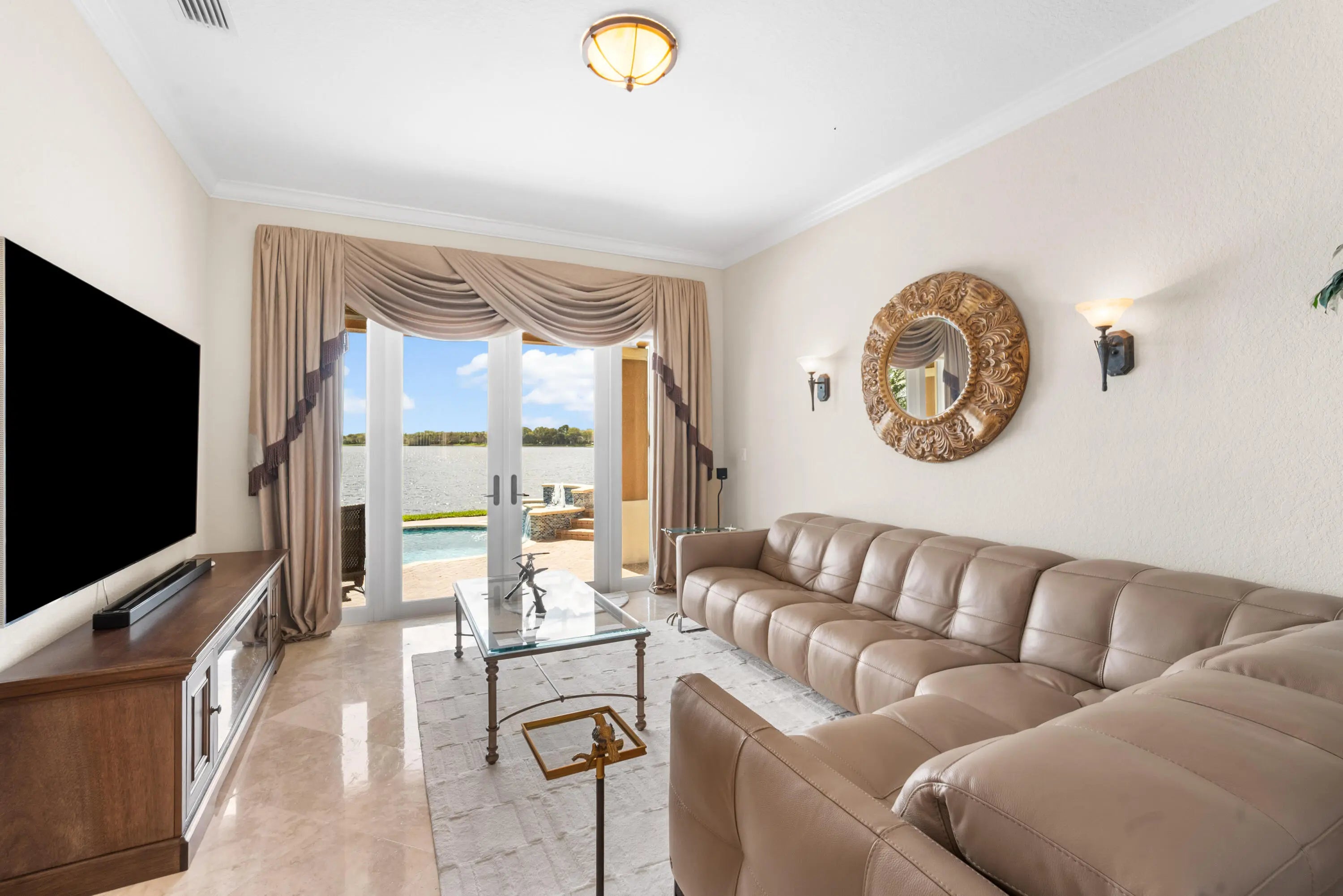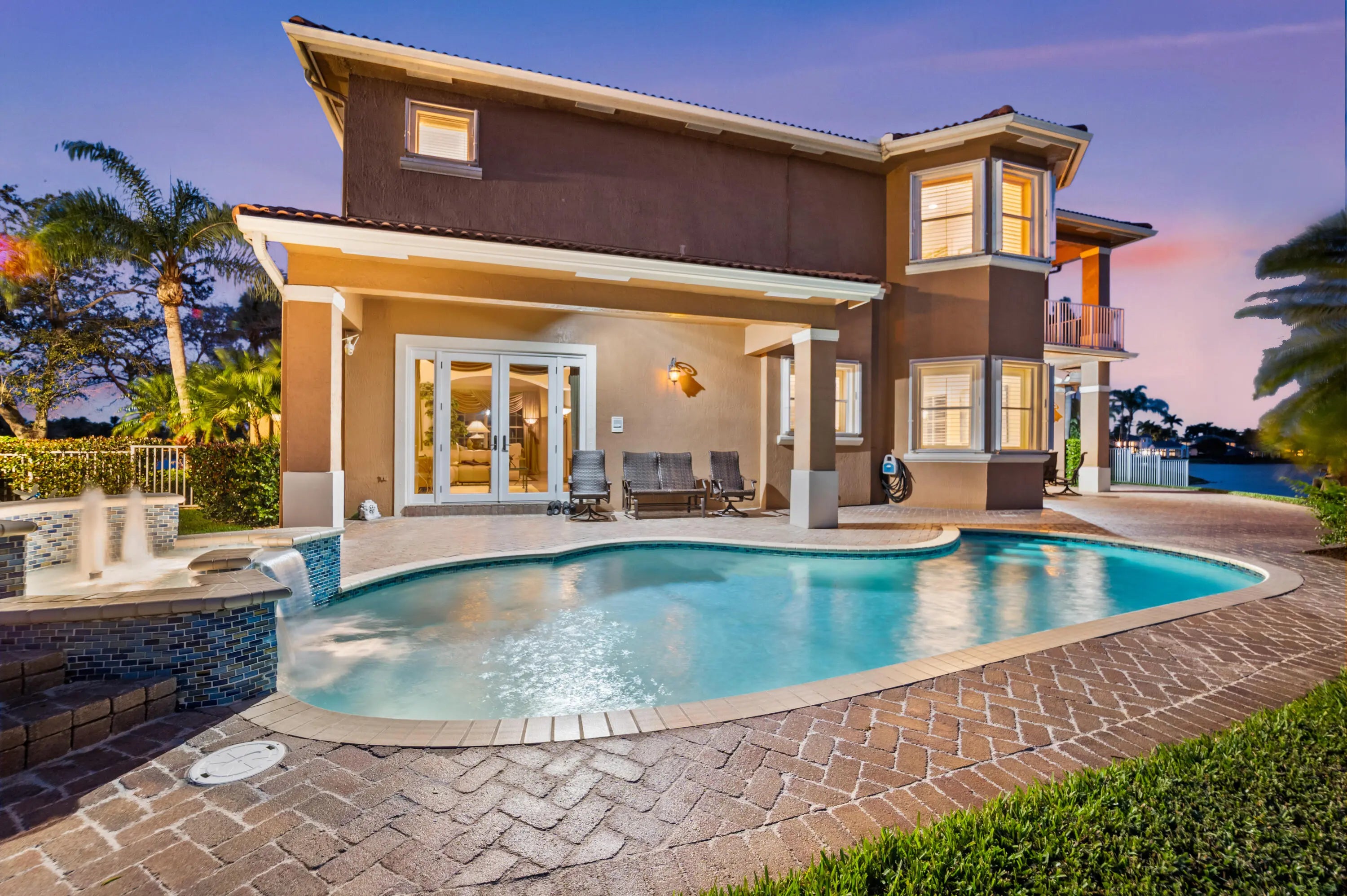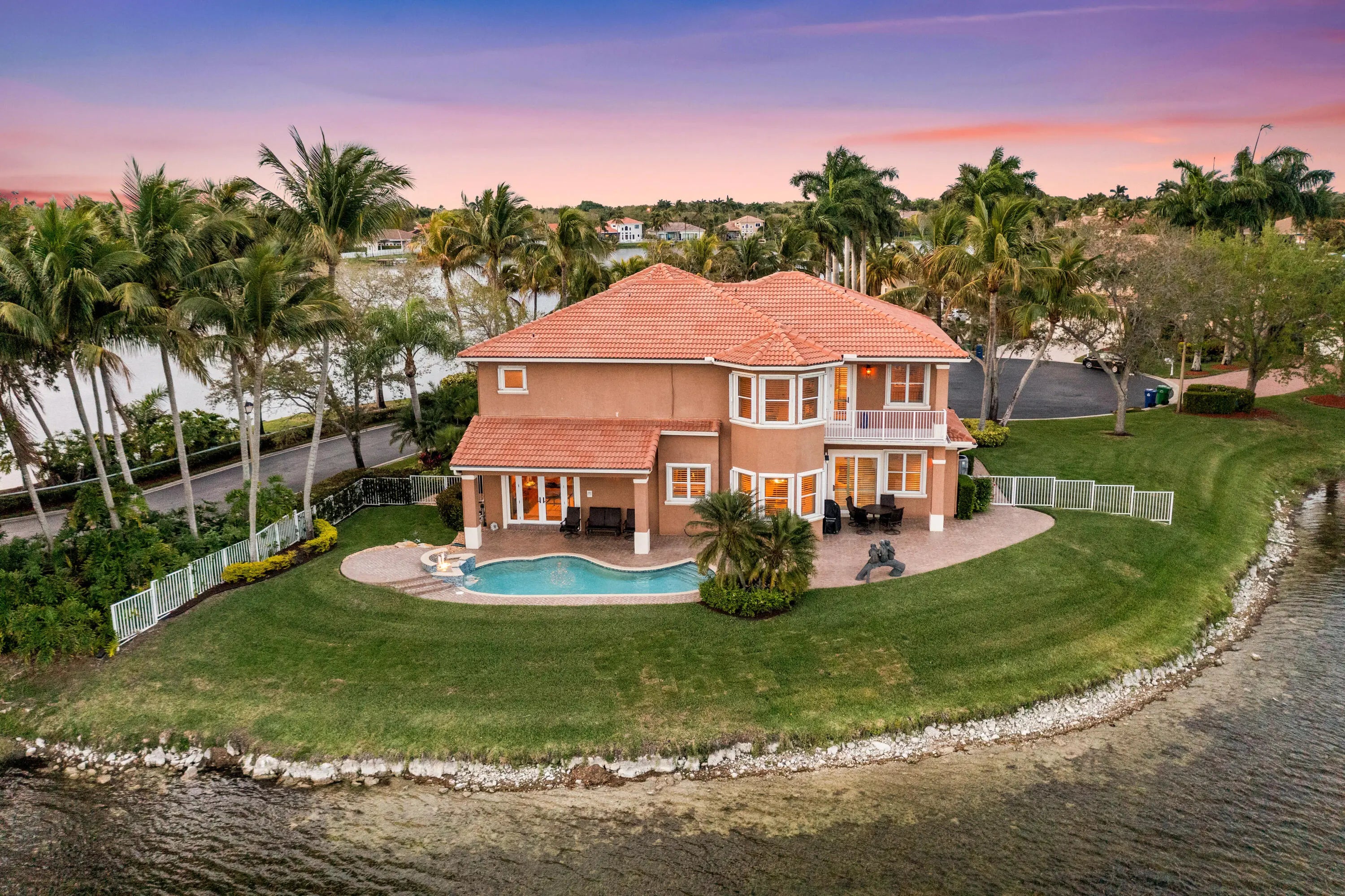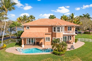 Rare Opportunity To Purchase 1 Of 4 Homes On A Double-Gated Island In Venetian Isles. Rembrandt Model w/4 Beds (Built As 5 Beds - Movie Room Is Actually 2 Beds) 4 Baths Home w/Luxurious Pool & Over 180° Water Views & Covered Patio. Large Granite Kitchen w/Long Island, Eat-in Kitchen w/Separate Dining Room & Entertainment Bar Perfect For Parties. Tile Floor Throughout Living Area & Plush Carpet In Upstairs Beds. Primary Suite Built For Royalty w/Large Sitting Area & Balcony Overlooking Expansive Water Views. Dual Walk-In Closets & 2 Baths For Both Owners w/Separate Tub & Shower w/Rain Shower Head. Custom Built-In Office, Movie Room w/Controlled Screen & Built-In Audio. Space For Dock & Boat To Live The True Lake Lifestyle. Close To Major Shopping, Restaurants & Schools.