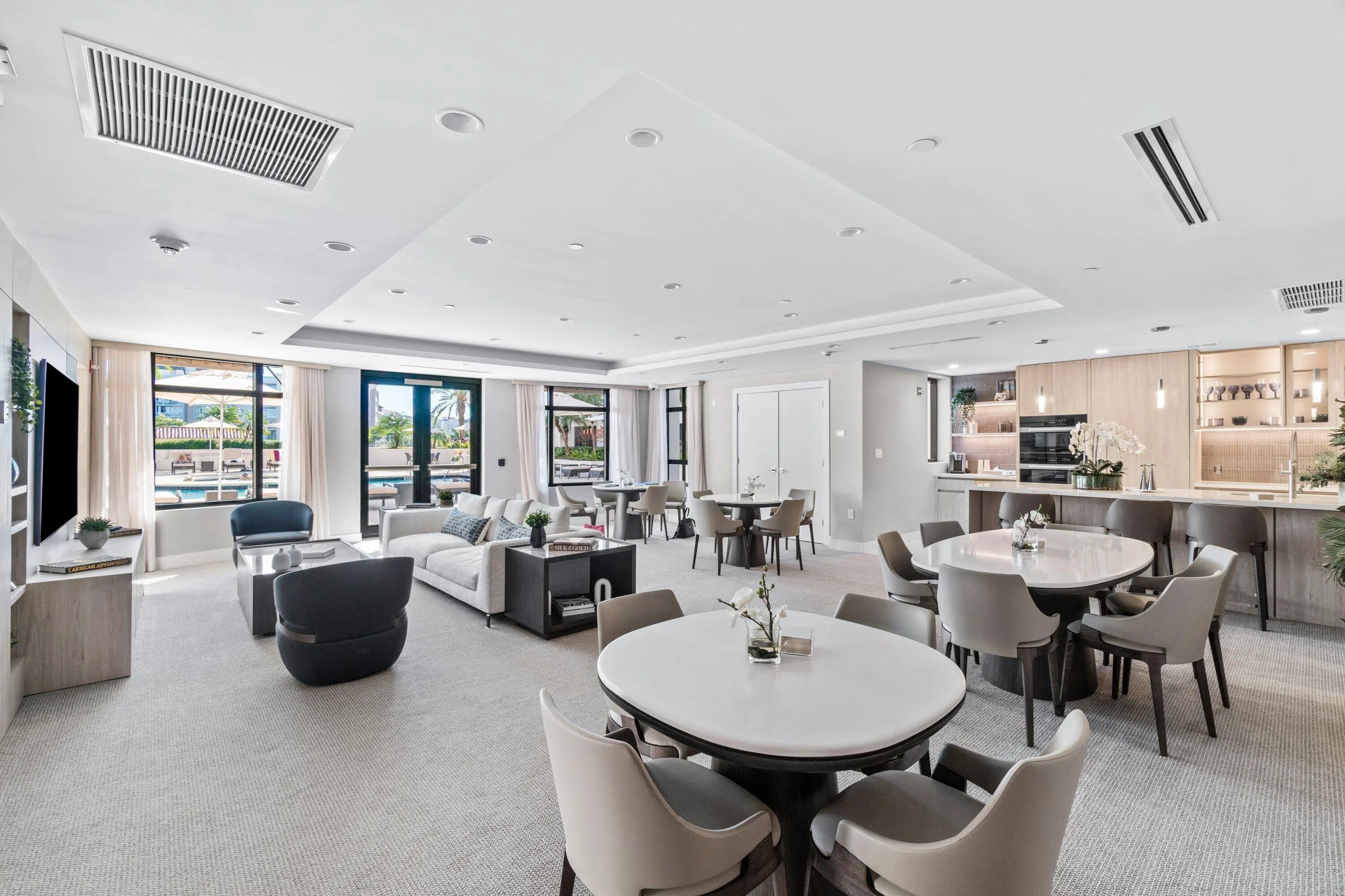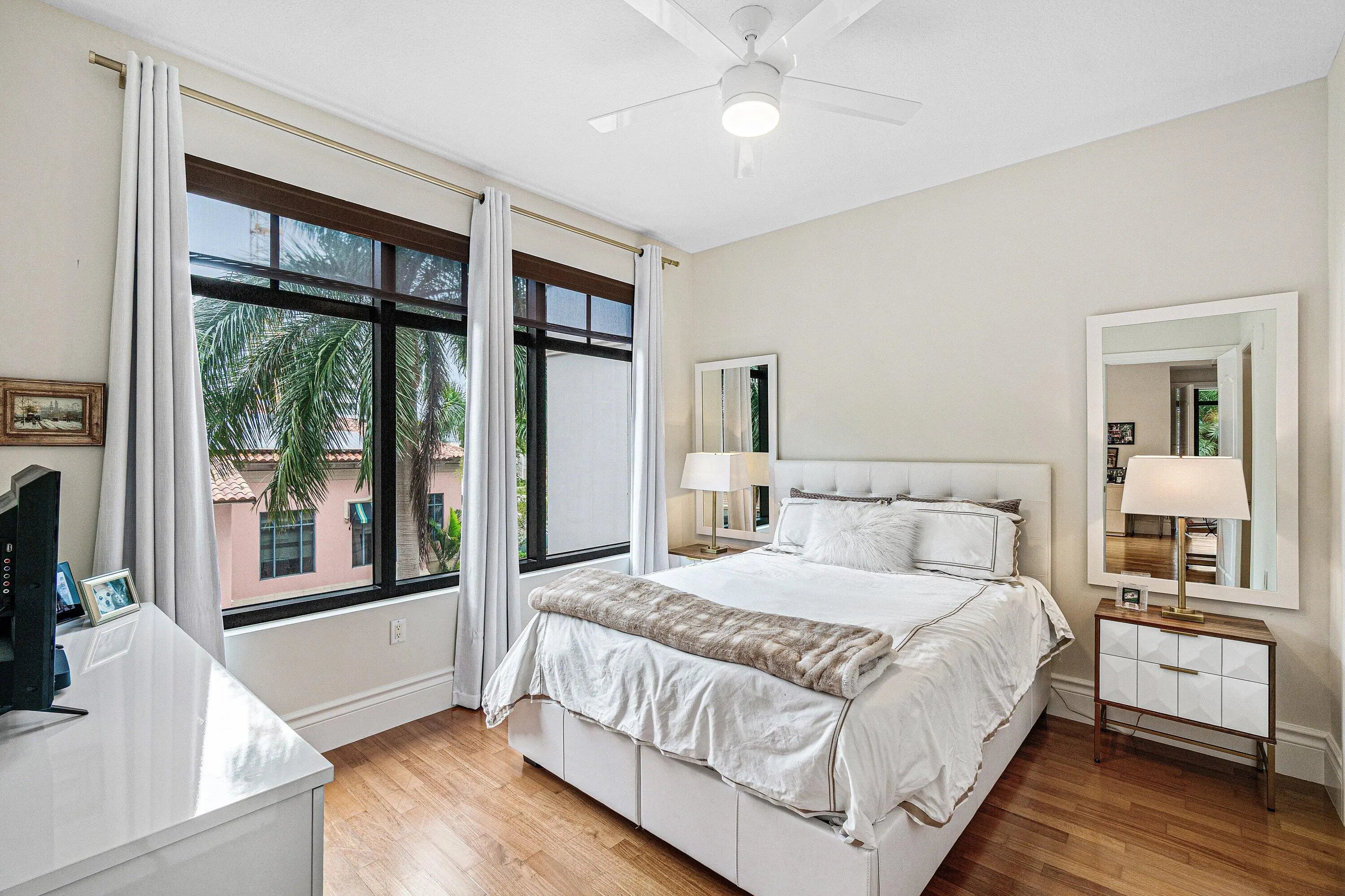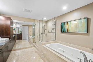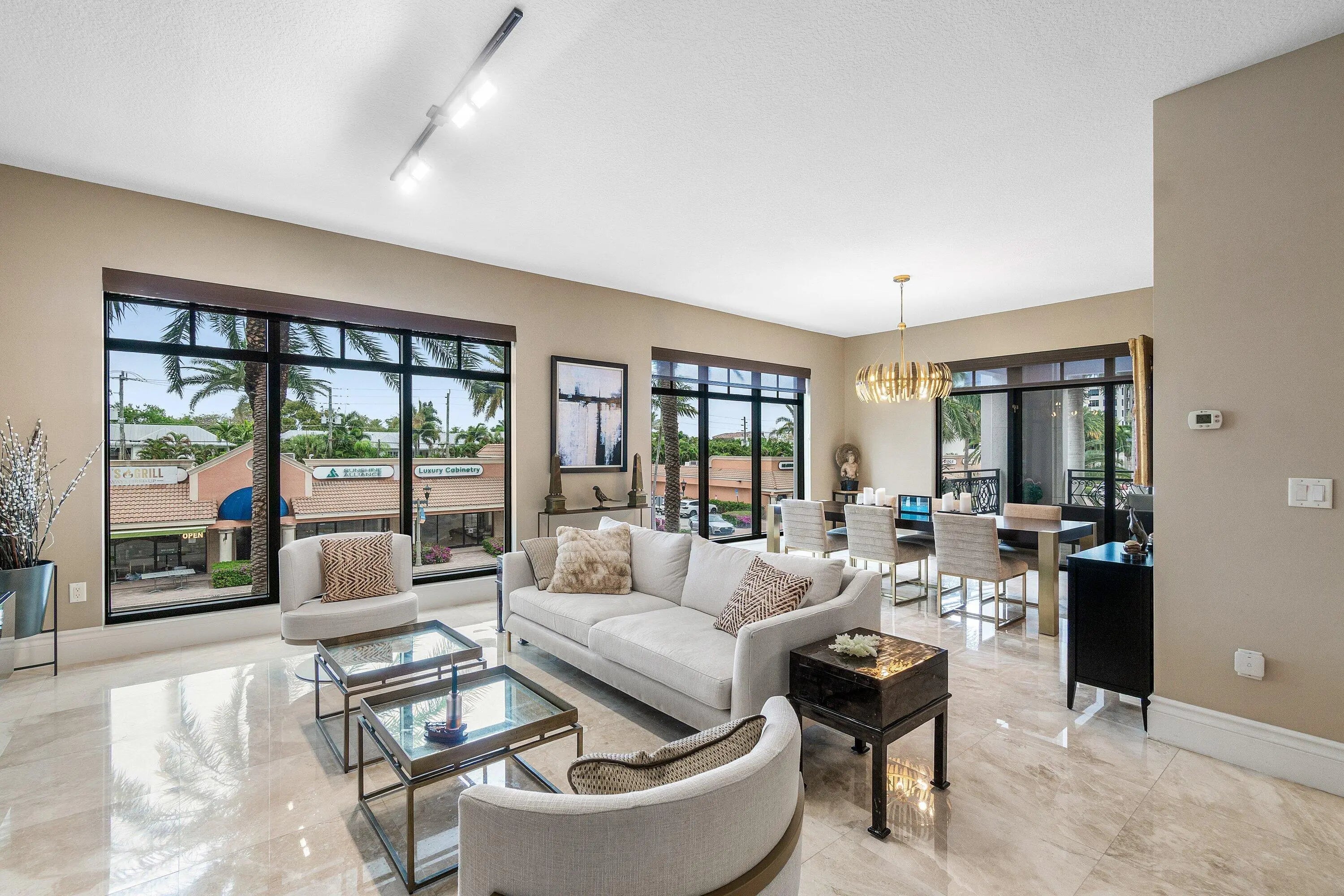 Step into this exceptional two-level residence spanning over 3,200 square feet, where a refined New York-inspired aesthetic sets the tone from the moment of entry. This sophisticated three-bedroom, two-and-a-half-bath corner residence offers the rare luxury of a private interior elevator and is thoughtfully designed for both elegant entertaining and comfortable everyday living. The expansive main level showcases an open-concept living and dining area, complemented by a generously sized family room just off the gourmet kitchen—creating a seamless flow throughout. Soaring 10-foot ceilings and dramatic floor-to-ceiling windows flood the space with natural light, enhancing the home's airy, modern feel. A large covered balcony extends the living space outdoors, ideal for relaxing, grilling, or hosting guests. Upstairs, the residence continues to impress with a sprawling primary suite featuring a dedicated sitting area and a beautifully appointed en-suite bath. Two well-proportioned guest suites share a bath, while an additional flex space offers the perfect setting for a home office, den, or playroom. Two assigned garage parking spaces are conveniently located just steps from your front door, completing this elevated and effortlessly livable home.
