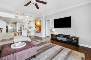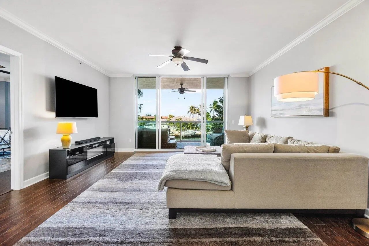 Turnkey waterfront CORNER UNIT w/2BR+dining/den, 2BA. Beautifully remodeled & expanded kitchen, impeccably maintained, neutral colors. Impact glass, semi-private elevator access. Open concept, split floor plan w/spacious owners suite w/his & her walk-in closets. Primary bathroom w large stand alone shower & jetted bath. Light & bright coastal inspired unit has a fabulous renovated kitchen that opens up the space and allows for easy entertaining with family and friends. Assigned garage parking & climate-controlled storage unit. 24/7 manned gate, valet, walking path w/gazebo. Adjacent Marina w/dry docks, minutes to ocean. No cats/allergies