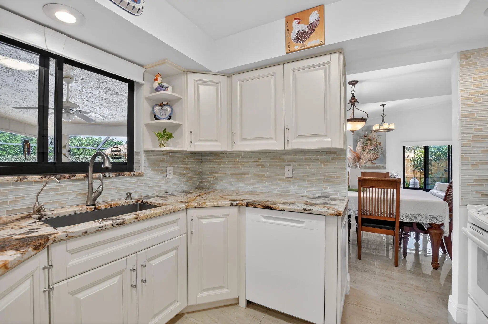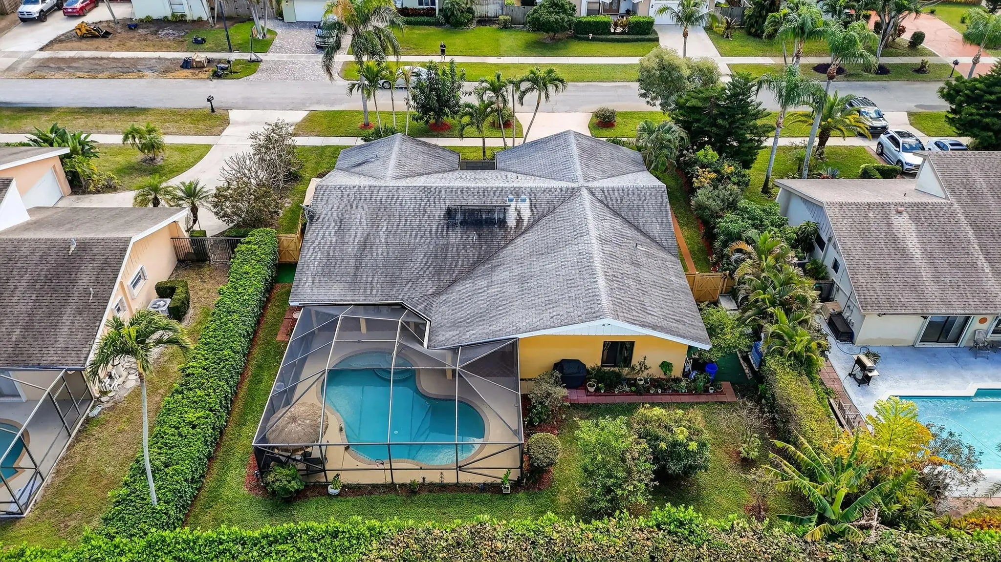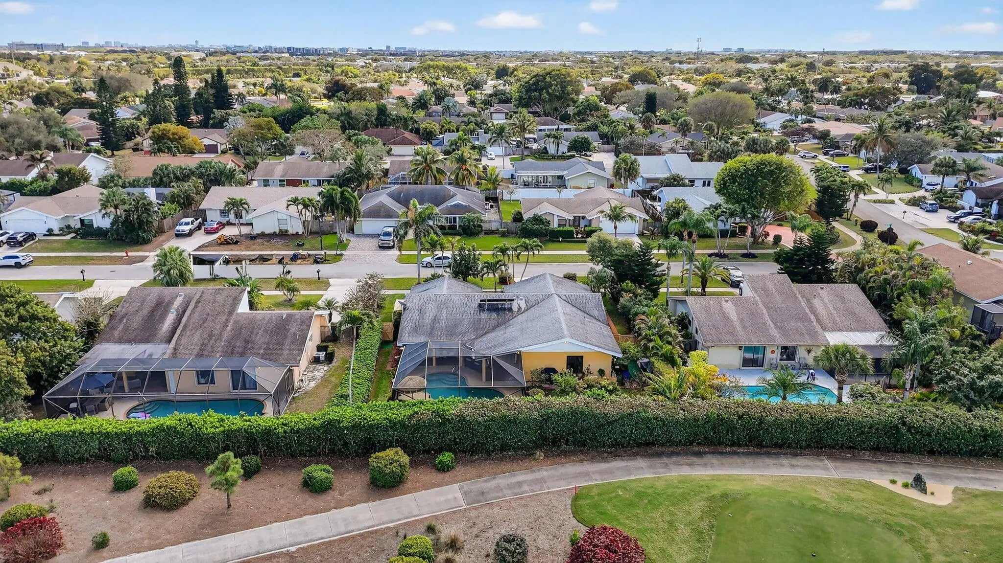 Beautifully upgraded home in Pheasant Walk, a sought-after Boca Raton community with highly regarded schools, conveniently located near shopping, dining, & just a short drive to the beach. A spacious screened-in front porch sets the tone as you enter this move-in-ready residence offering 3 bedrooms, 2.5 baths, & a split floor plan with two living areas & an open-concept kitchen at the center. The home features hurricane impact windows & sliders throughout. The kitchen has imported Brazilian granite countertops, a stylish tile backsplash, premium soft-close cabinetry, & includes a newer refrigerator & dishwasher. Sleek large-format porcelain tile flooring flows throughout the home. Additional highlights include a solar-assisted water heater & a screened, heated pool perfect for year-round enjoyment.