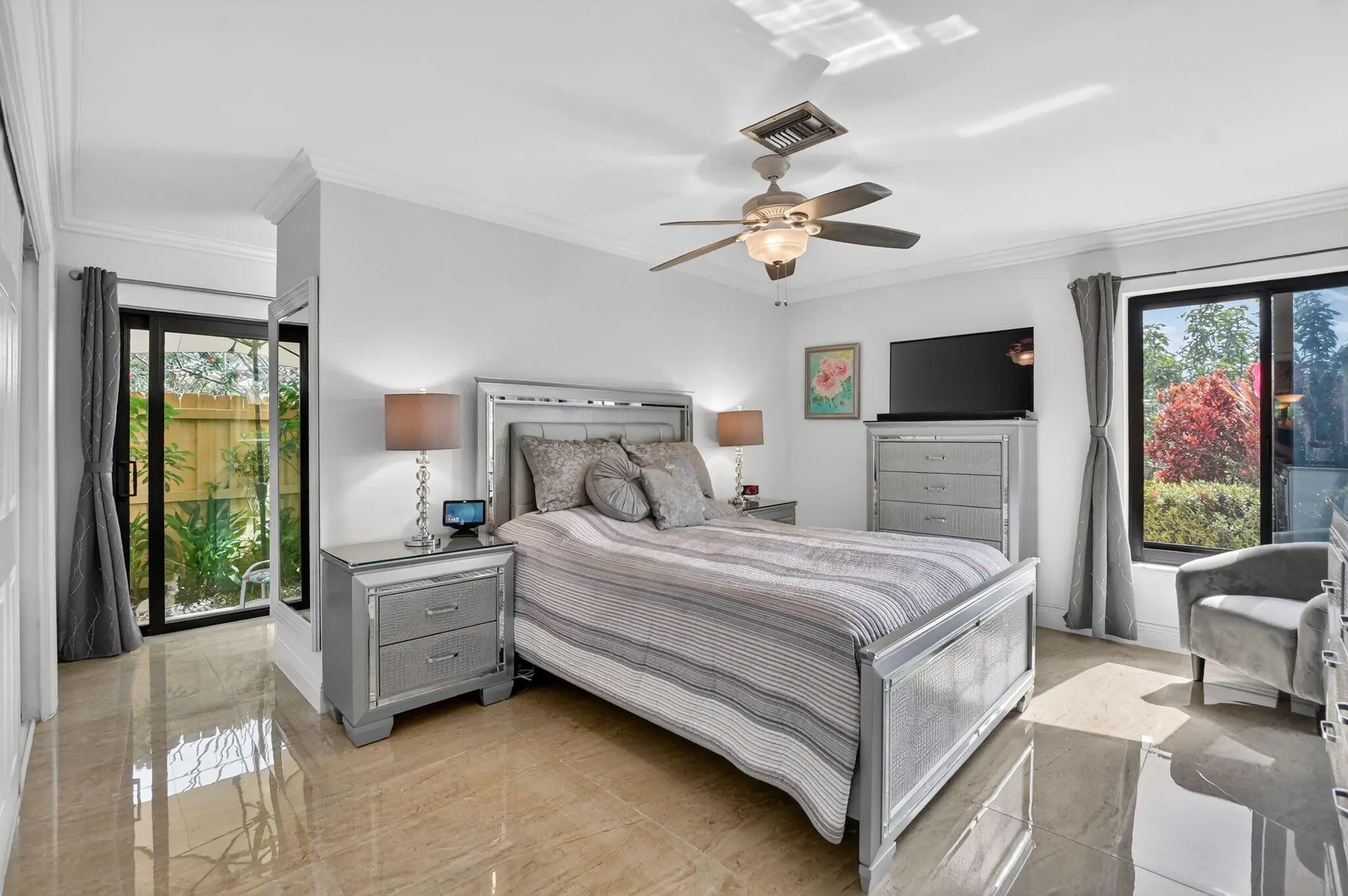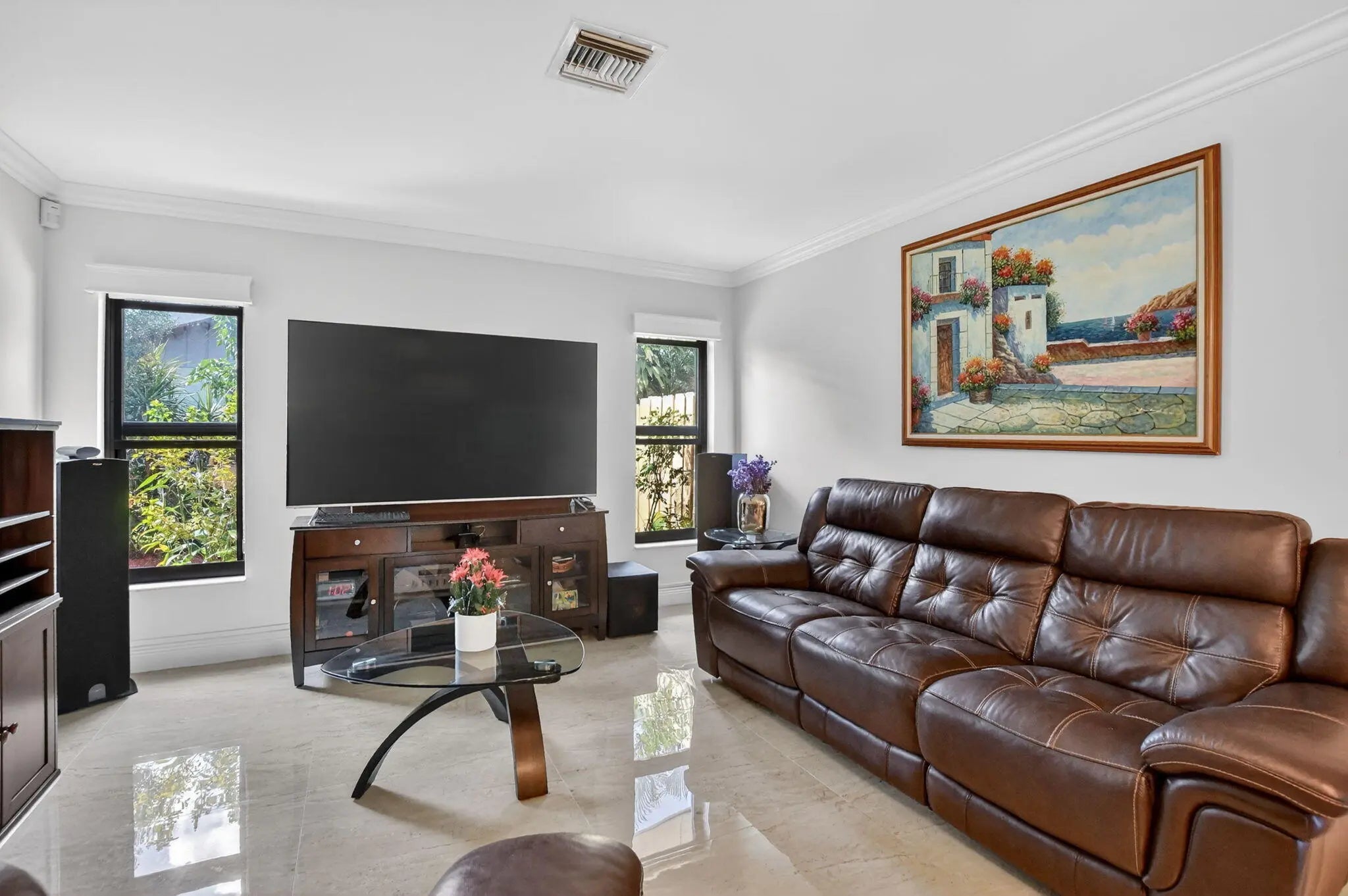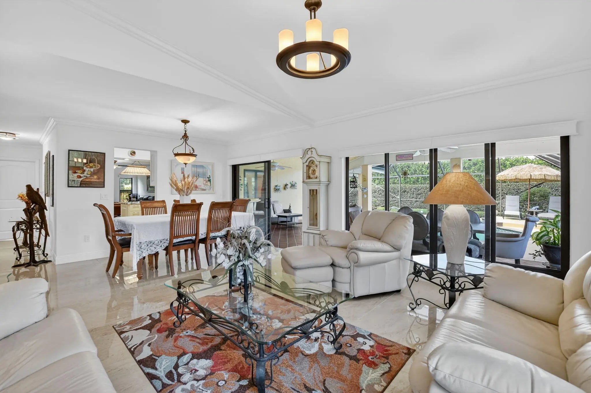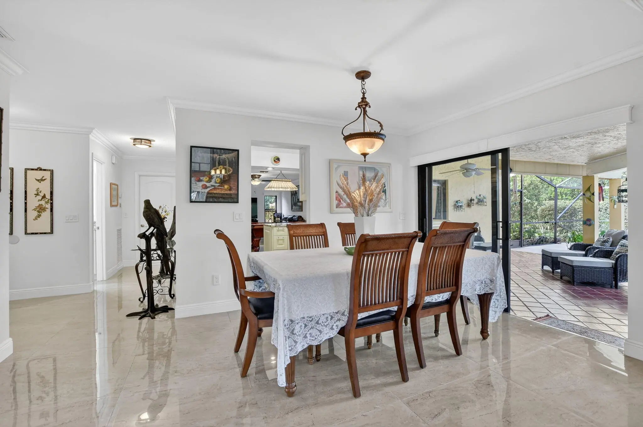 Beautifully upgraded home in Pheasant Walk, a sought-after Boca Raton community with highly regarded schools, conveniently located near shopping, dining, & just a short drive to the beach. A spacious screened-in front porch sets the tone as you enter this move-in-ready residence offering 3 bedrooms, 2.5 baths, & a split floor plan with two living areas & an open-concept kitchen at the center. The home features hurricane impact windows & sliders throughout. The kitchen has imported Brazilian granite countertops, a stylish tile backsplash, premium soft-close cabinetry, & includes a newer refrigerator & dishwasher. Sleek large-format porcelain tile flooring flows throughout the home. Additional highlights include a solar-assisted water heater & a screened, heated pool perfect for year-round enjoyment.