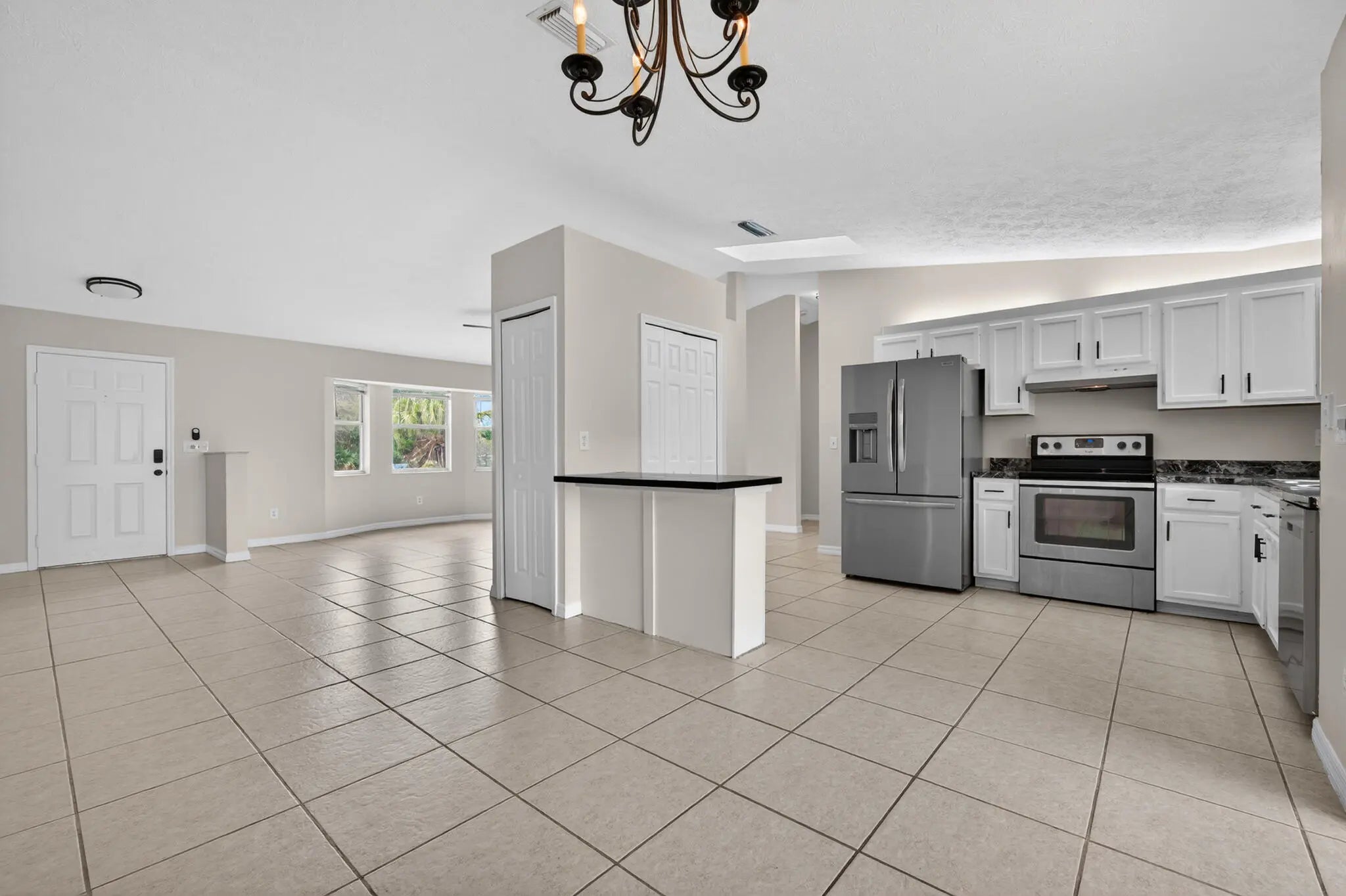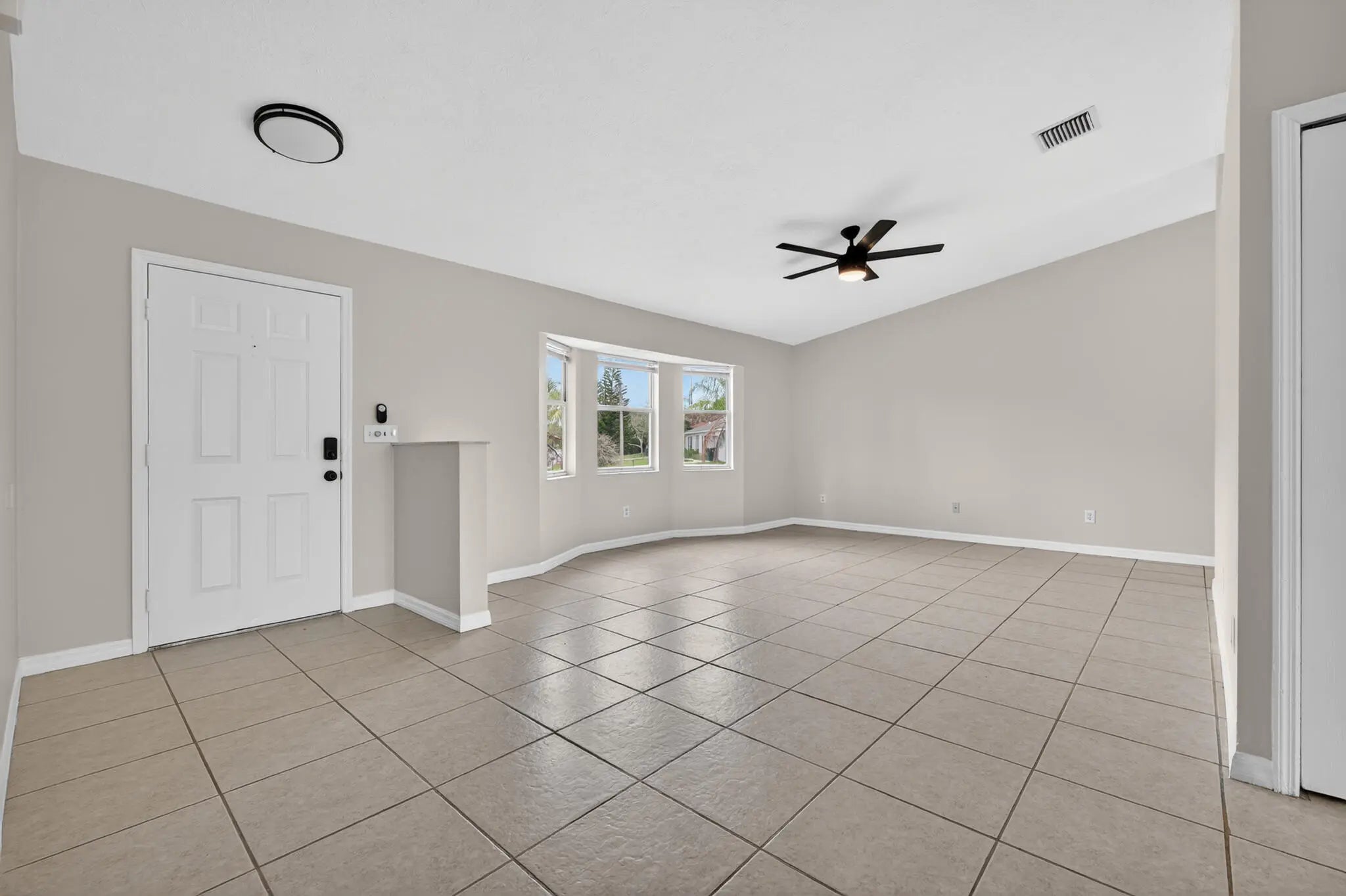 This 3/2 single-family home is situated on an oversized .40-acre corner lot along a canal, providing privacy in a serene backyard setting. All-tile flooring throughout, easy to maintain. The home features new SS appliances, HWH, and major updates like a 2022 roof and a 2024 A/C system offer peace of mind for years to come. One of the standout features is the expansive screened porch that runs along the back of the home, to enjoy the private tropical backyard featuring coconut palms and flowering cactus! There is plenty of room to add a garden or a swimming pool. Conveniently located close to schools, shopping centers, and major commuting routes including the Turnpike, Crosstown Pkwy, and I-95, this home combines tranquility with accessibility. All of this at a All of this at an incredible value, don't miss your opportunity to own this well-maintained home on a rare oversized lot!