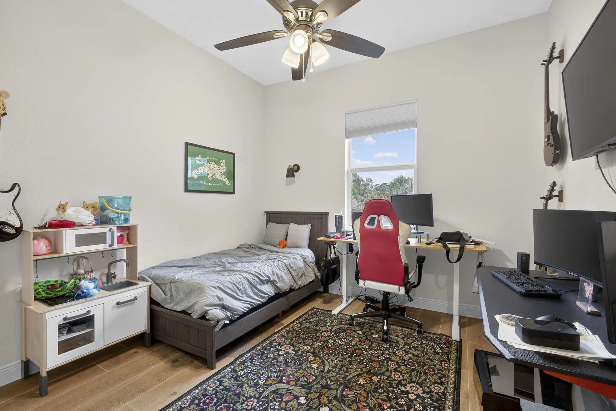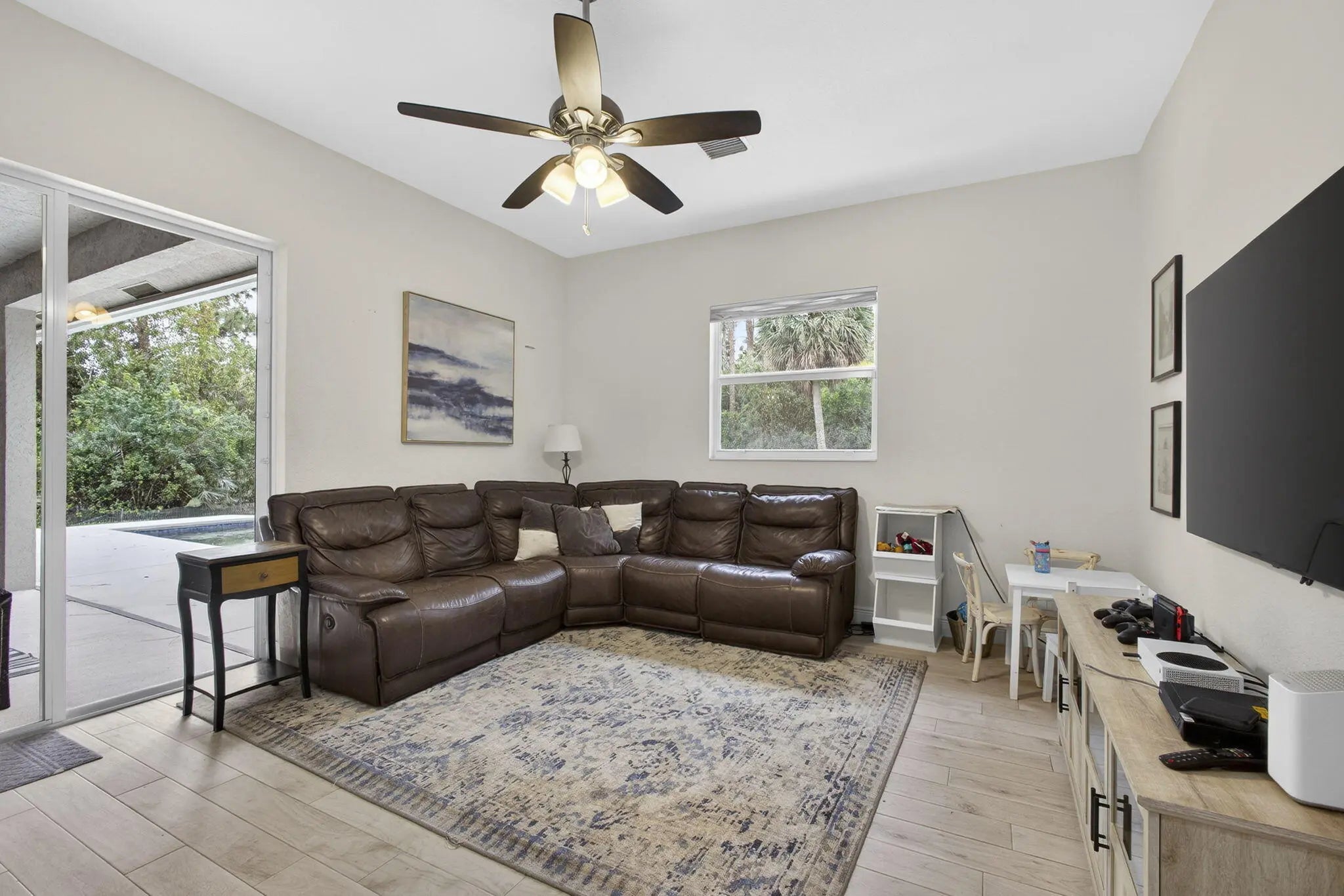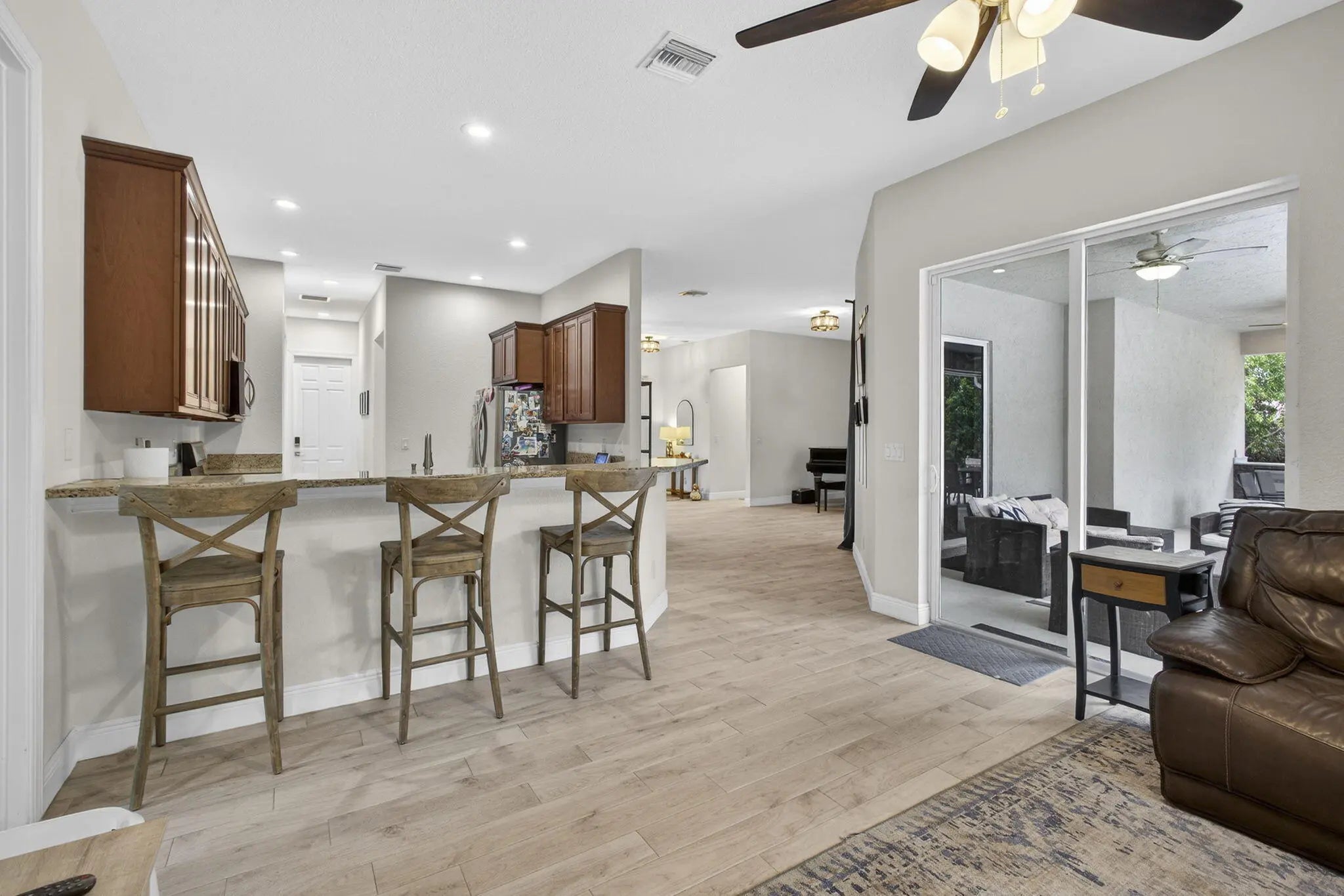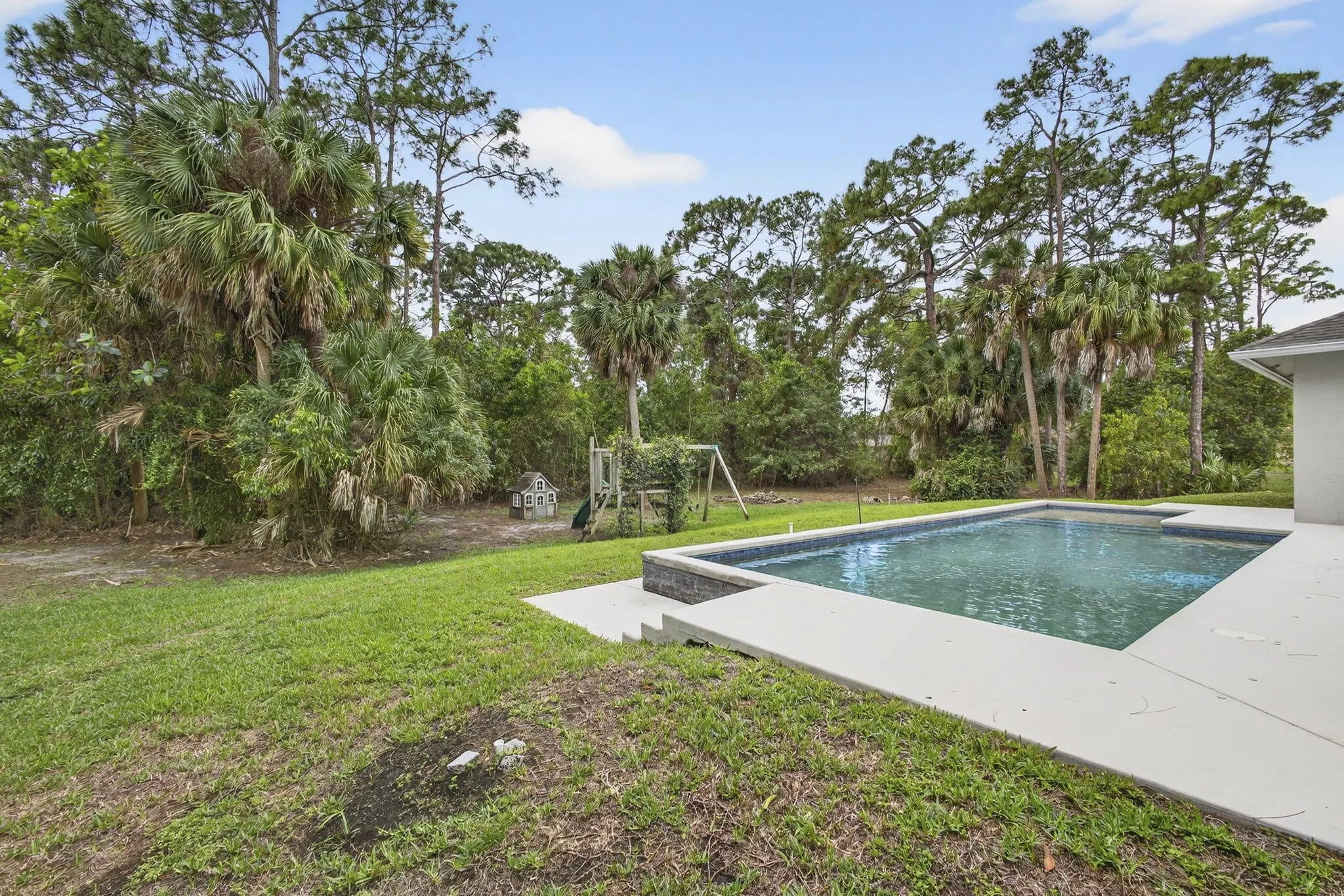 Welcome home to your quiet, peaceful oasis~ This 2019 custom-designed 4 bedroom 2 bath single family home sits on a private 1+ acre lot surrounded by mature oaks and pines. NO HOA, no rules, restrictions or covenants: do what you want on your own land. High & dry setting on a quiet dead-end street in a horse-friendly area. True four-bedroom split plan, side-entry 2-car garage, huge indoor utility room with built-in cabinetry, washer and dryer. Beautiful salt water pool & heater, sunbathing ledge & spacious covered rear porch w/ outdoor kitchen area. Upgrades include complete set of insulated impact windows, designer tile, granite countertops, all-stainless appliances, and a whole-home water softening system. Comcast alarm system. Great location minutes to schools, new shopping and parks.