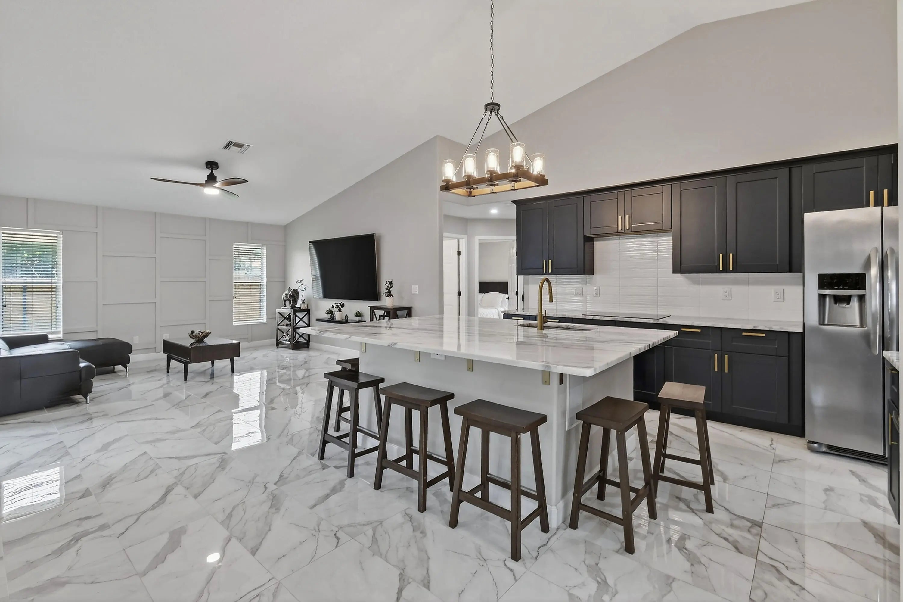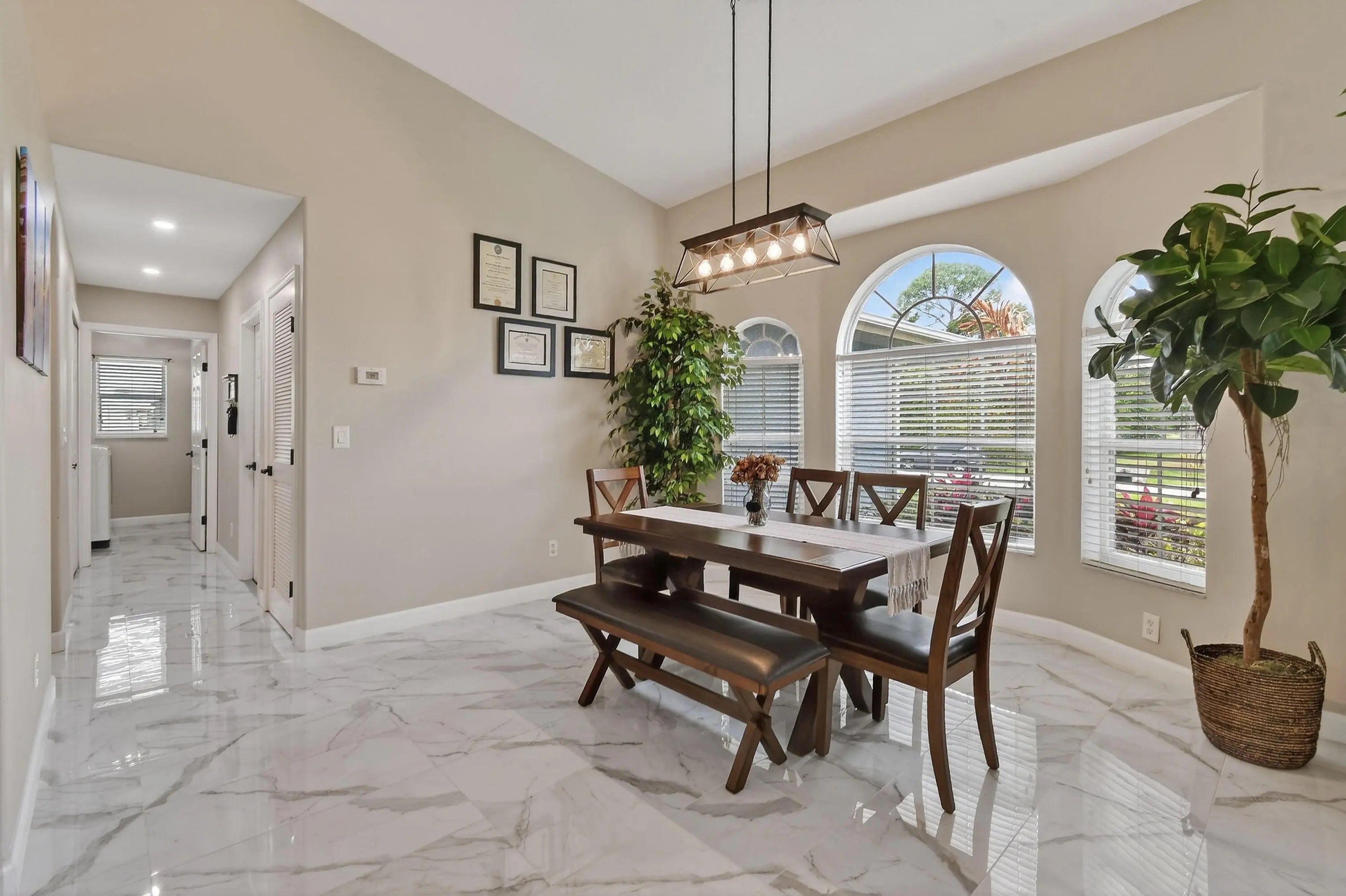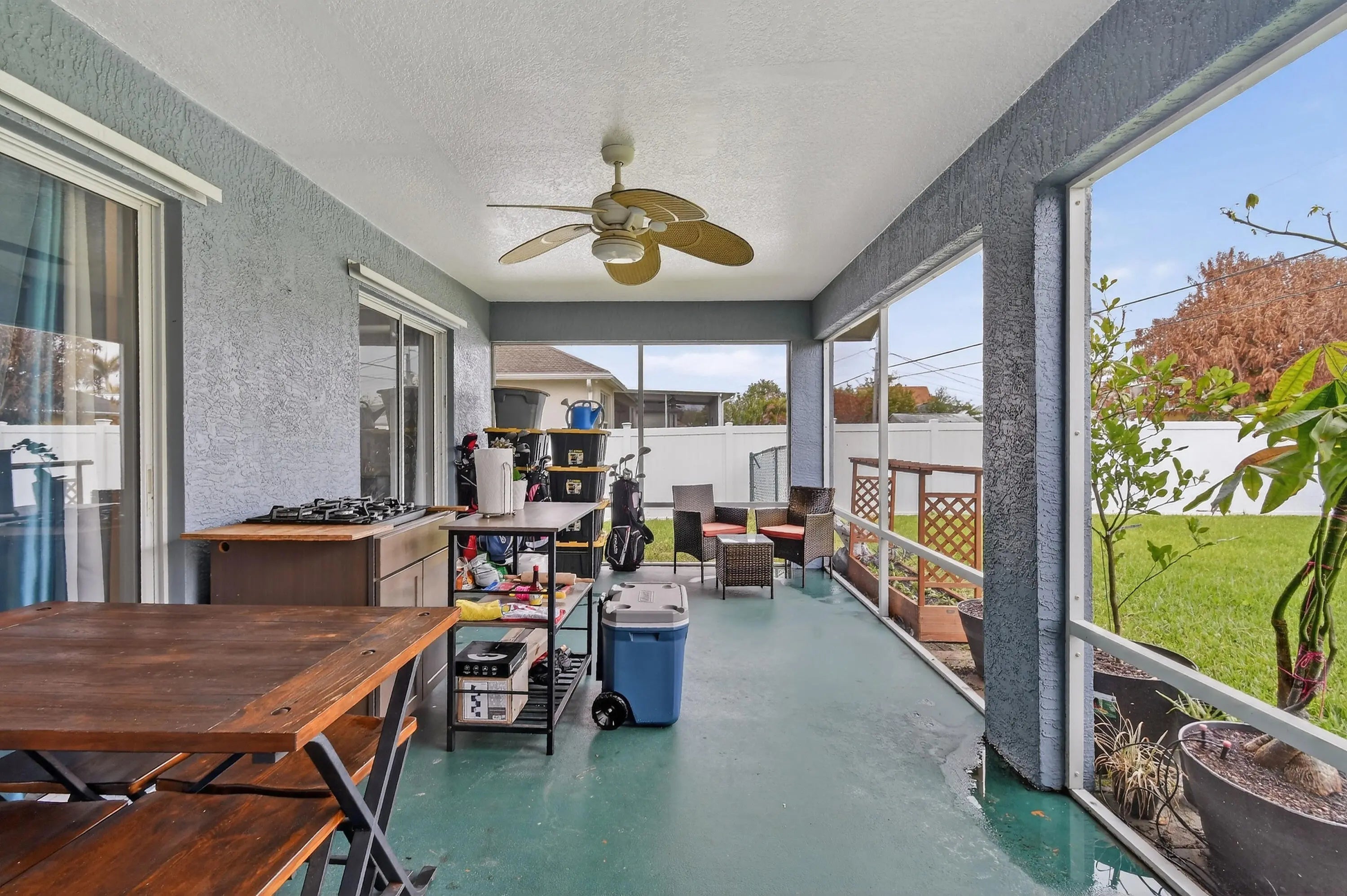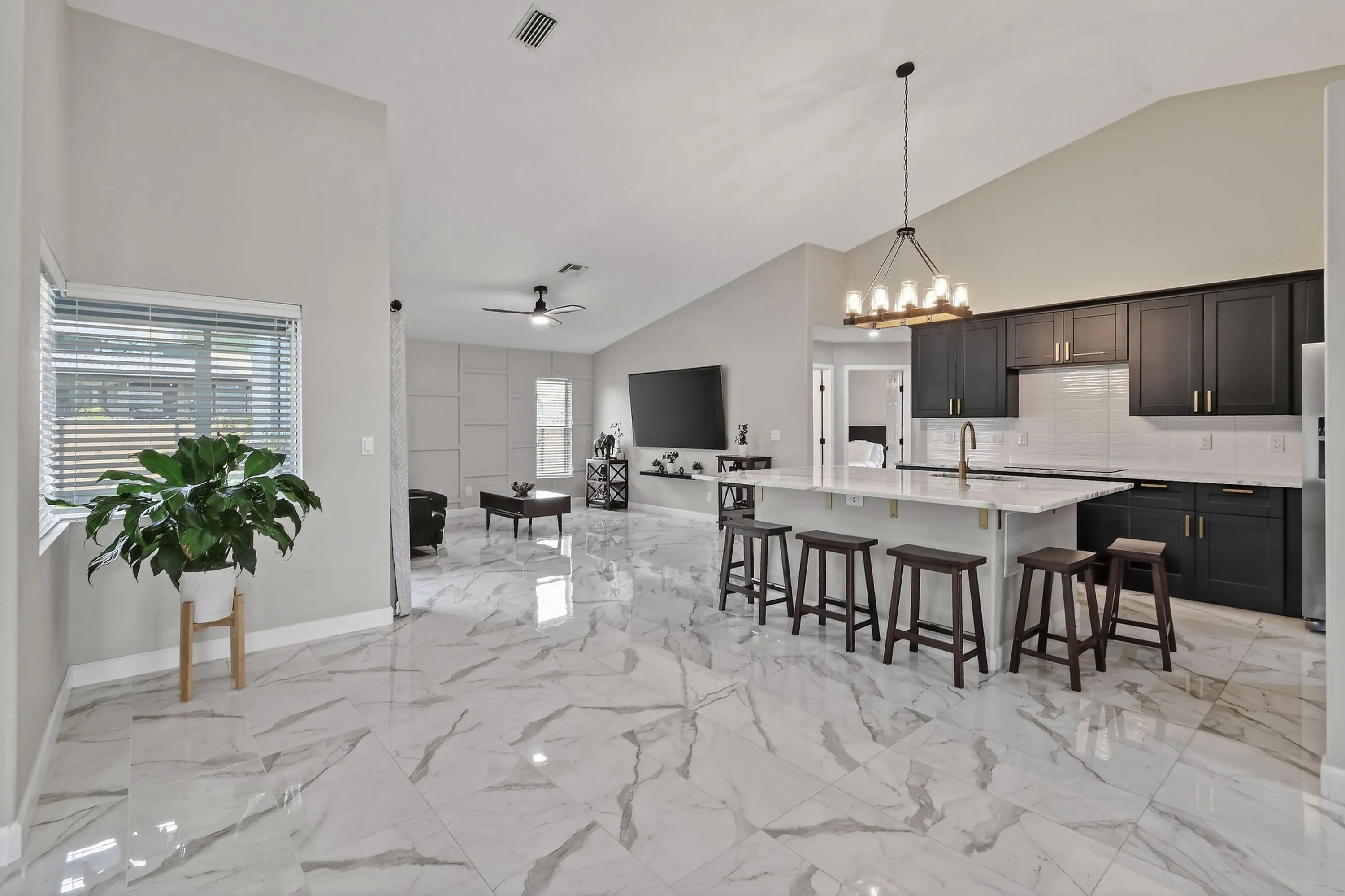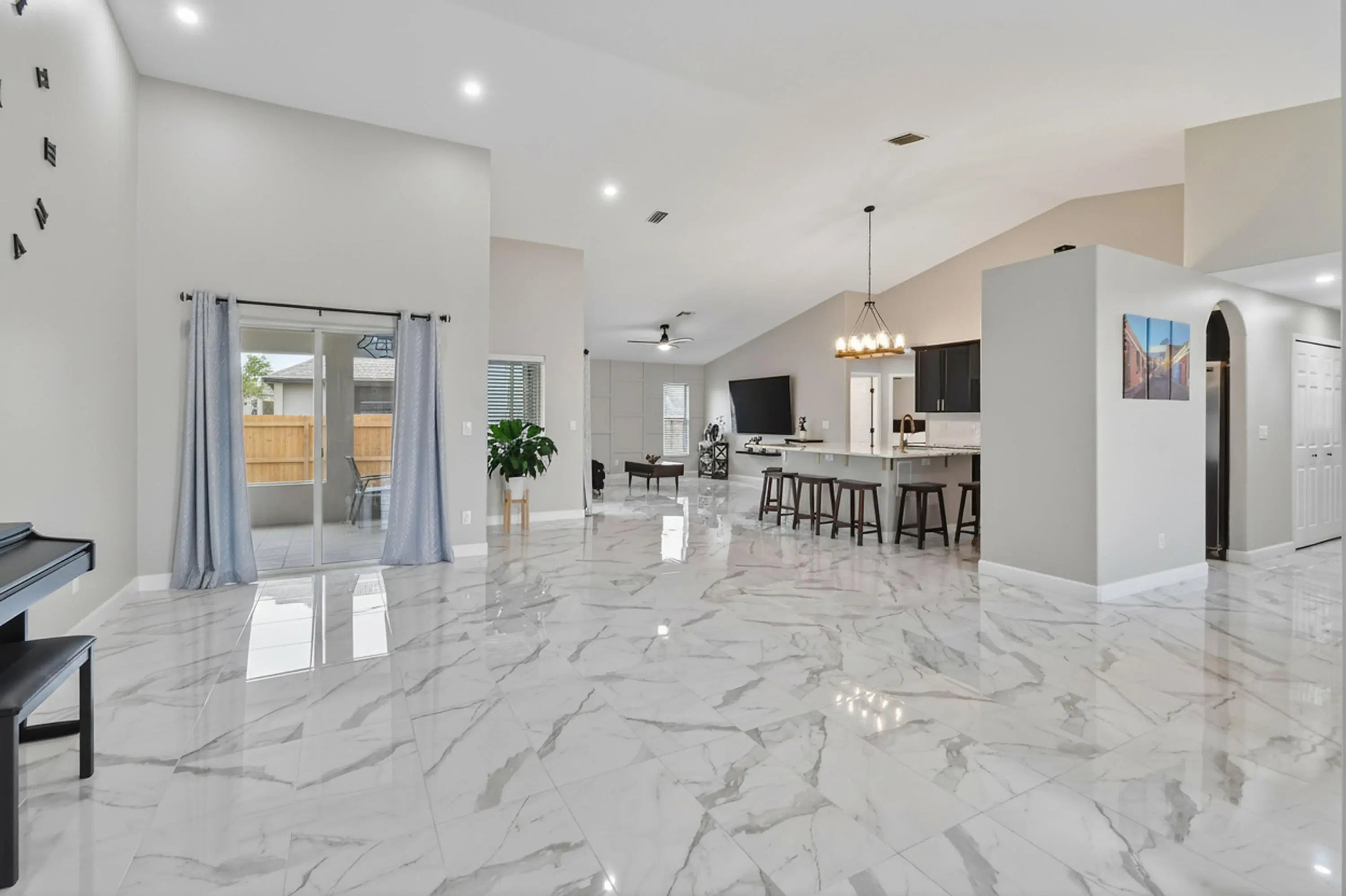 Beautifully updated 3 bed, 2 bath CBS home with a 2 car garage, set on an oversized, fully fenced corner lot. Inside, the kitchen shines with an oversized island that anchors the modern open floor plan, seamlessly connecting the family room, living area, and dining space—ideal for both everyday living and entertaining. The home features uniform 15x30 tile flooring throughout for a sleek, cohesive look. Three sliding glass doors open to a screened patio overlooking a private backyard, creating the perfect spot to relax or host guests. Additional highlights include a desirable side entry garage that enhances both convenience and curb appeal. Located between St. Lucie West and Gatlin Blvd, you'll enjoy quick access to shopping, dining, and major highways.
