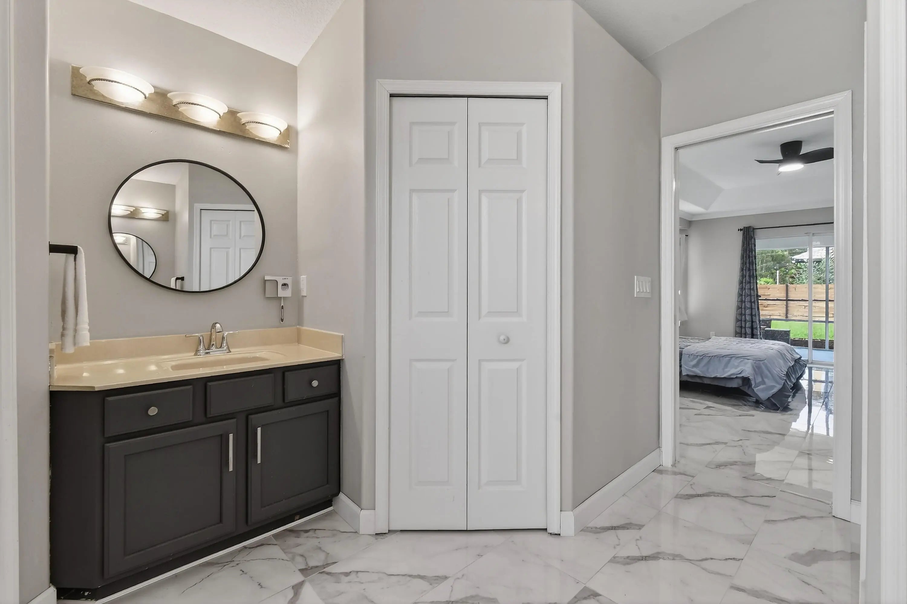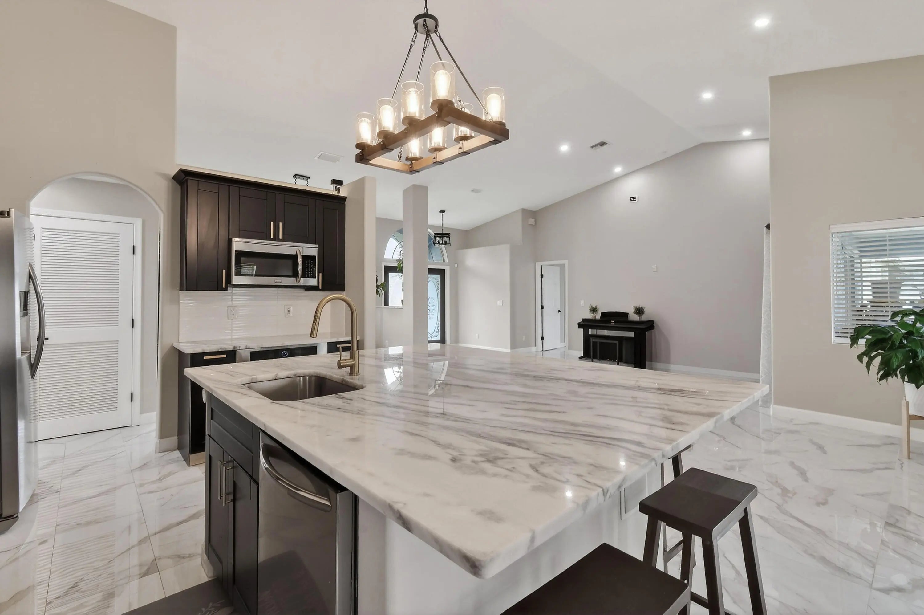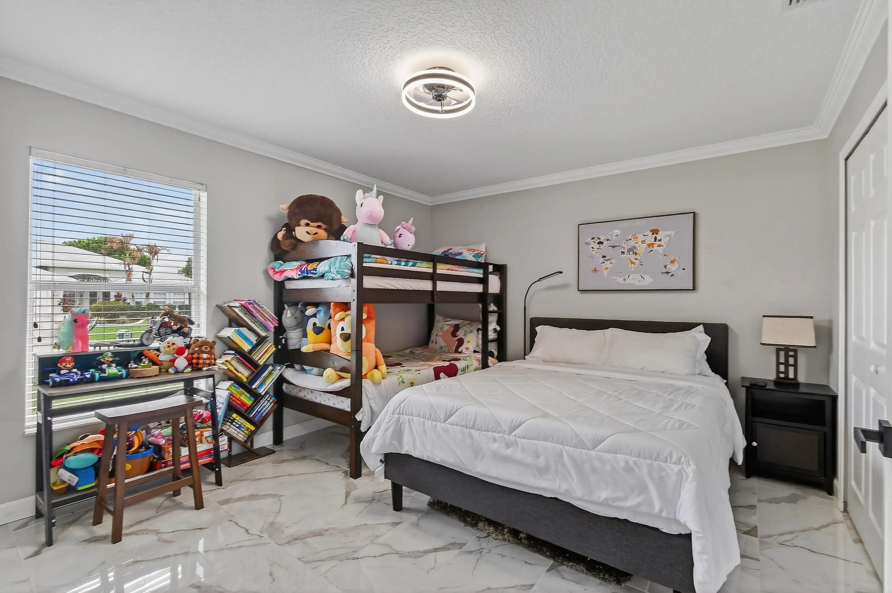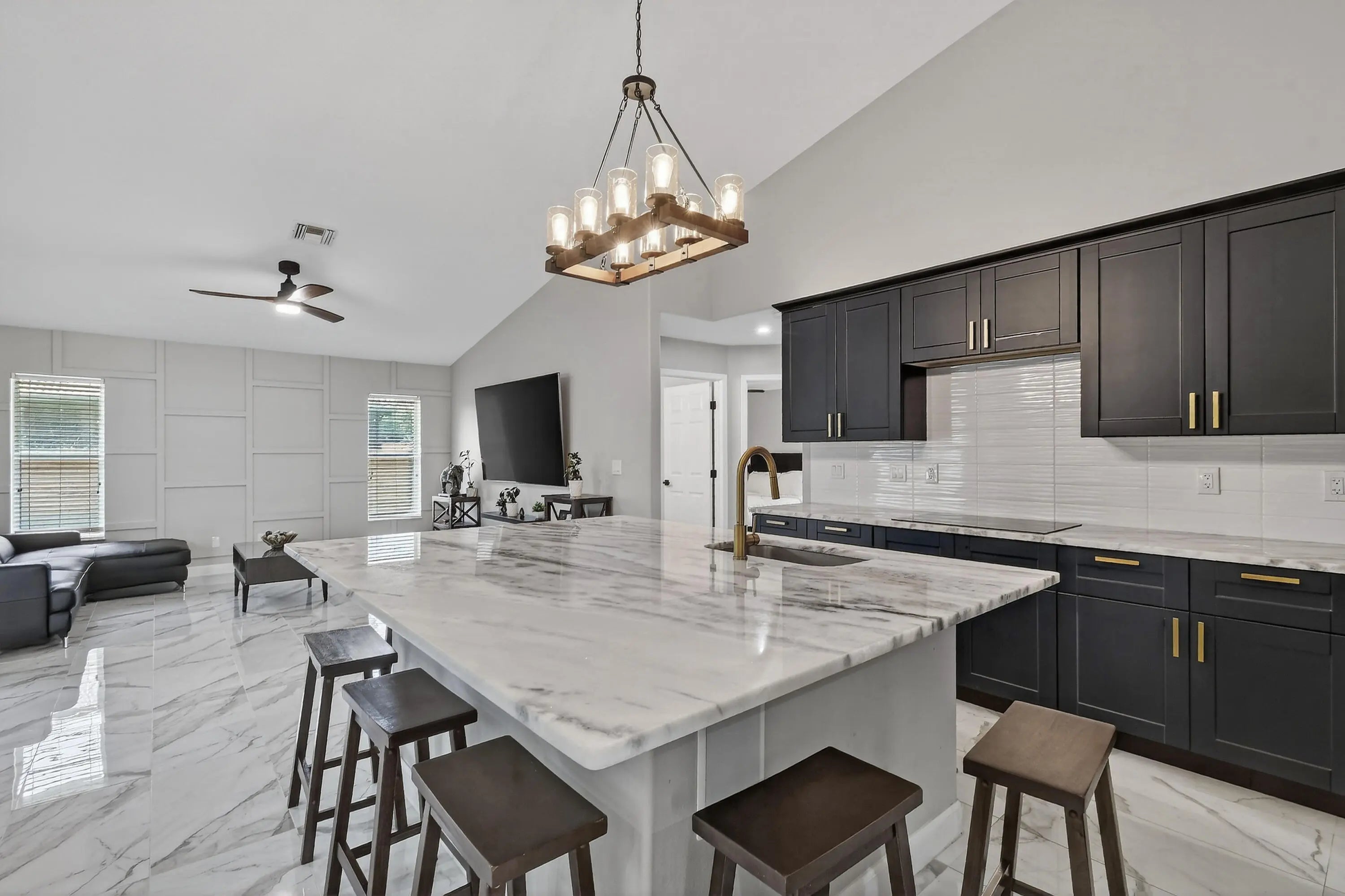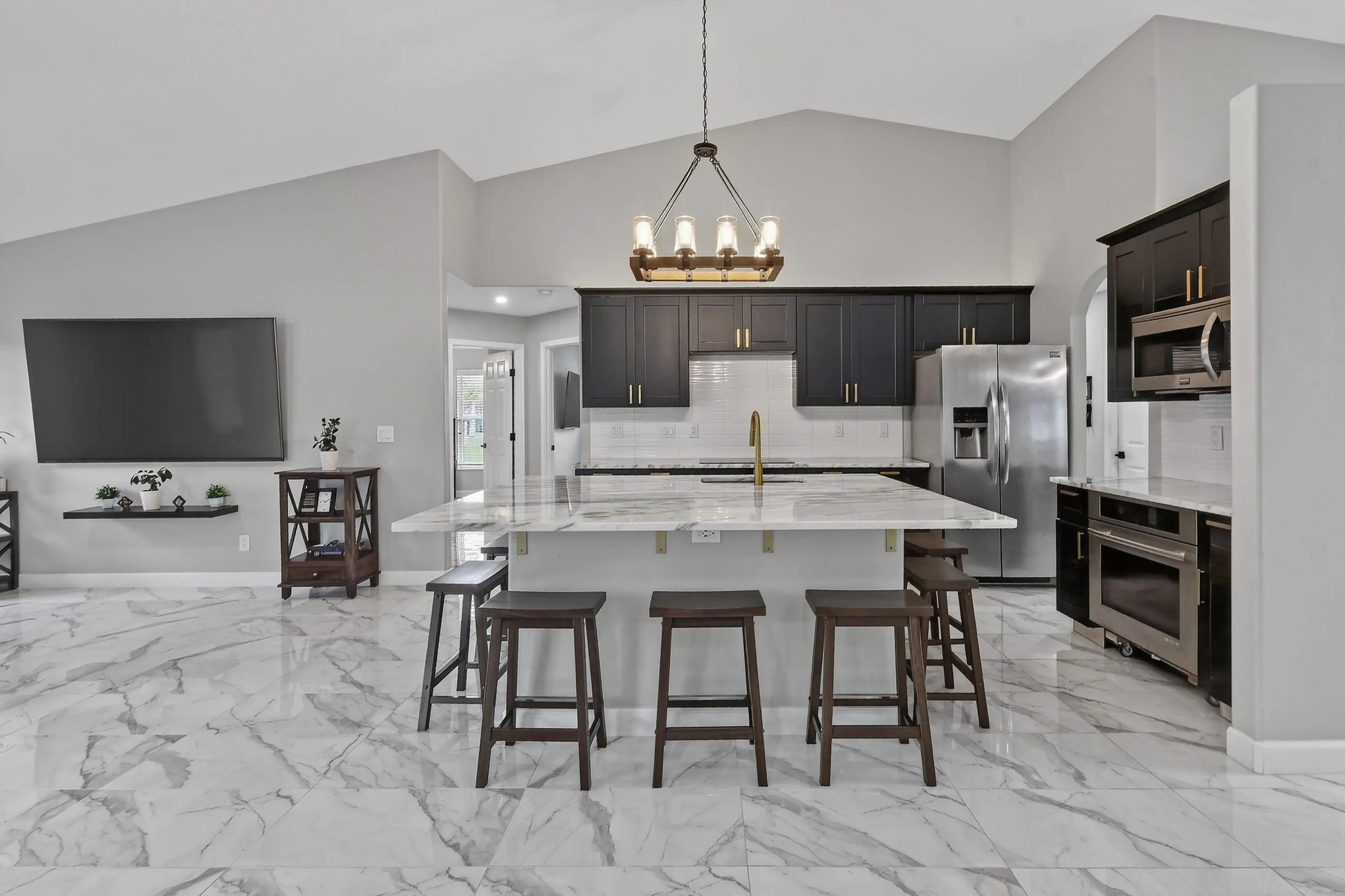 Beautifully updated 3 bed, 2 bath CBS home with a 2 car garage, set on an oversized, fully fenced corner lot. Inside, the kitchen shines with an oversized island that anchors the modern open floor plan, seamlessly connecting the family room, living area, and dining space—ideal for both everyday living and entertaining. The home features uniform 15x30 tile flooring throughout for a sleek, cohesive look. Three sliding glass doors open to a screened patio overlooking a private backyard, creating the perfect spot to relax or host guests. Additional highlights include a desirable side entry garage that enhances both convenience and curb appeal. Located between St. Lucie West and Gatlin Blvd, you'll enjoy quick access to shopping, dining, and major highways.