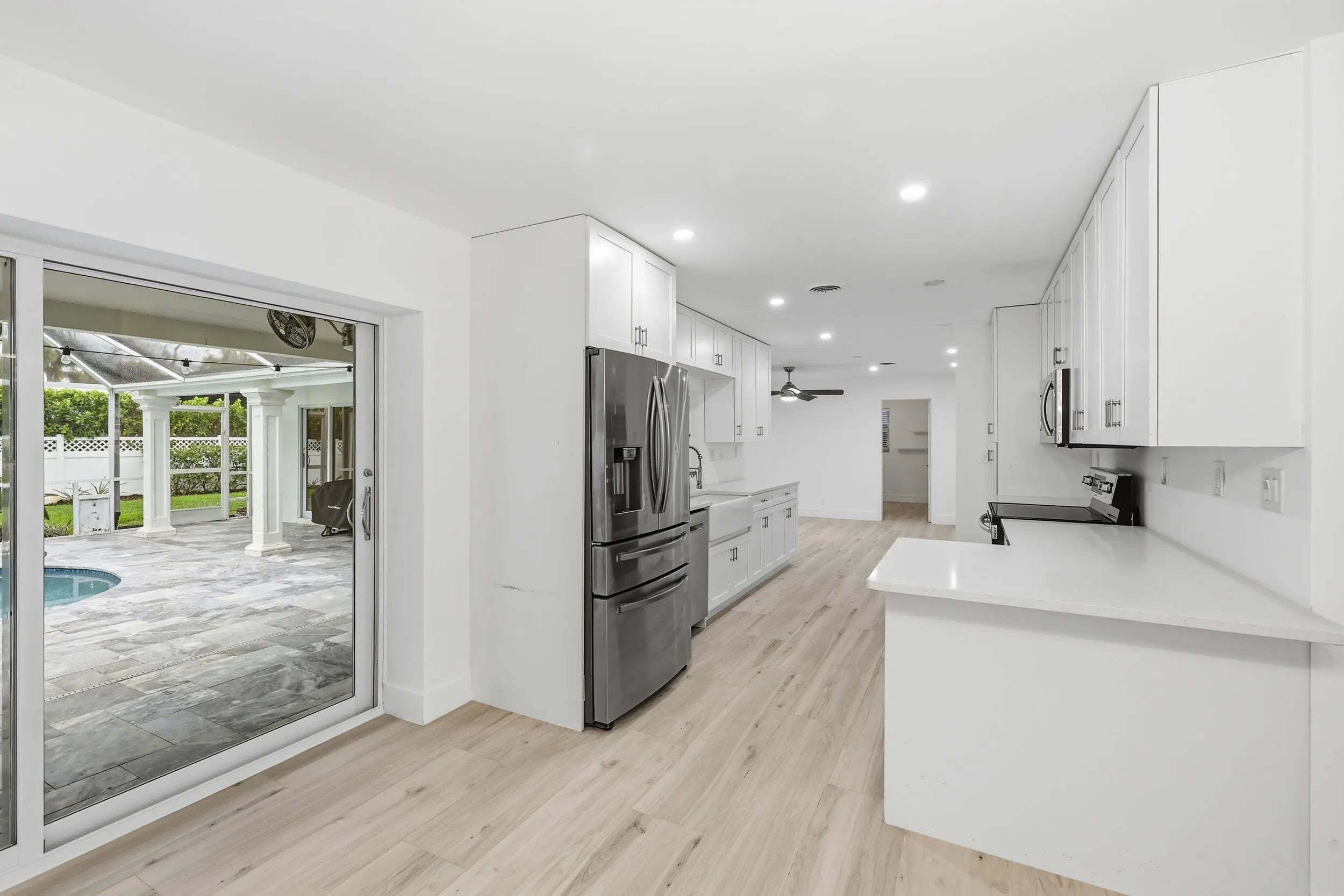 Welcome home to this perfectly located and highly desirable Tequesta Country Club 4-bedroom property. This open, light, and bright split floor plan offers nearly 2,000 sq feet of living space. Separate living areas, a full cabana bath, and an efficient galley kitchen are a few standout features. Recent updates include flooring throughout, kitchen, bathrooms, lighting, and fresh paint. Full impact windows and doors, extended boat storage pad, air-conditioned garage, and quiet street add value and peace of mind. The backyard is the perfect oasis for relaxing and entertaining. The screened-in pool has been resurfaced, and the pool deck has been recently upgraded. Yard is fully fenced in and provides plenty of green space. Charming outdoor shower is located right off the pool. Tequesta Country is a golf cart friendly community and offers residents with a boat ramp and riverfront parks. Golf cart access to multiple private clubs with championship golf courses and amenities. Come live in paradise.