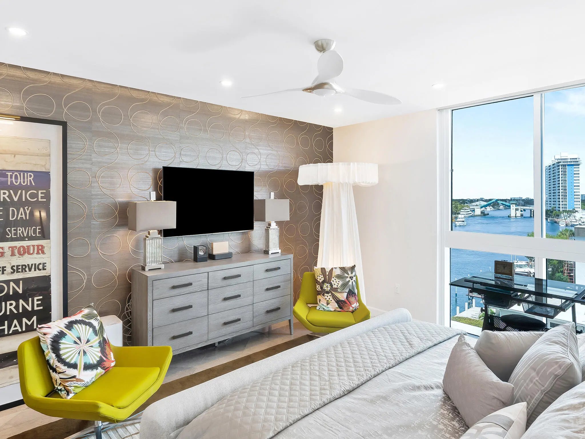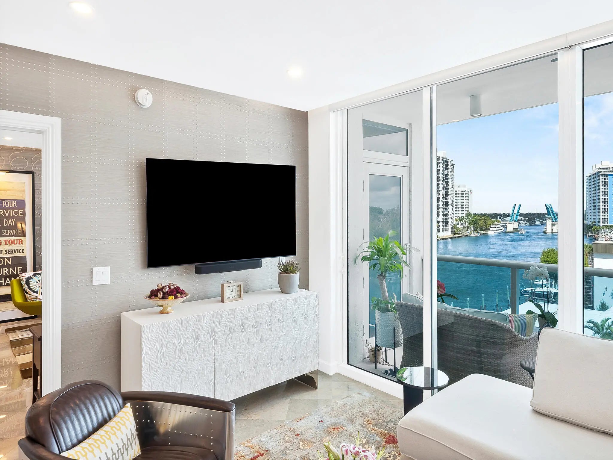 Discover the pinnacle of coastal sophistication and effortless living in the heart of Fort Lauderdale. This immaculate 3-bedroom, 3-bath condo, complete with a versatile den, is a true gem, offering a harmonious blend of modern design, luxurious comfort, and the vibrant South Florida lifestyle you've been dreaming of. From the moment you step inside, you'll be greeted by an open, light-filled space where every detail has been carefully curated. The gourmet kitchen is a showstopper, featuring a complete custom redesign with Thermador stainless steel appliances, including a refrigerator, induction range, oven, dishwasher, and a Zephyr wine refrigerator (2025). Shimmering quartz countertops and a chic breakfast bar invite casual mornings or lively conversations. The kitchen flows seamlessly into the expansive living and dining areas, where floor-to-ceiling windows frame breathtaking vistas of the city skyline and the tranquil Intracoastal Waterway, bathing the space in natural light. Each bedroom is a private retreat, featuring its own en-suite bathroom with spa-like finishes. The primary suite is a sanctuary of its own, boasting two walk-in closets with California Closet built-ins, dual vanities, a separate shower, an oversized Jacuzzi soaking tub, and a separate water closet with a Toto washlet toilet (2025). The versatile den, complete with a door, closet, and full bathroom, offers endless possibilities—whether you need a serene home office, a cozy guest room, or a quiet reading nook. Additional upgrades include a Bang & Olufsen sound system throughout the unit, including the primary bath, new ceiling upgrades with LED lighting (2025), and remote-controlled Hunter Douglas window treatments throughout the unit, including side doors (2025). A stylish half-bath and the convenience of in-unit laundry further elevate the ease of daily living. Step outside onto your private balcony, where the warm ocean breezes and dazzling sunsets will take your breath away. It's the perfect spot to enjoy your morning coffee, unwind with a glass of wine, or simply soak in the beauty of South Florida. This unit also features a new water heater (2024) with an auto-off leak detector, a new AC/heat system (2024), and handmade Phillip Jefferies wallcoverings on select walls. Additional owner storage with bike racks downstairs ensures convenience and practicality. The condo is interior designer-owned and decorated with many custom features, and it is being sold fully furnished and turn-key. As a resident in this exclusive boutique building, you'll have access to premium amenities designed to complement your lifestyle, including a sparkling pool, a state-of-the-art fitness center, and secure parking. Best of all, this prime location places you just steps from the golden sands of Fort Lauderdale Beach and within walking distance of an array of world-class dining, shopping, and entertainment options. Whether you're looking for a seasonal retreat or a full-time residence, this turn-key condo is ready to welcome you home. Unit 606 is more than a place to live—it's a lifestyle. Don't just imagine yourself here; make it your reality today!