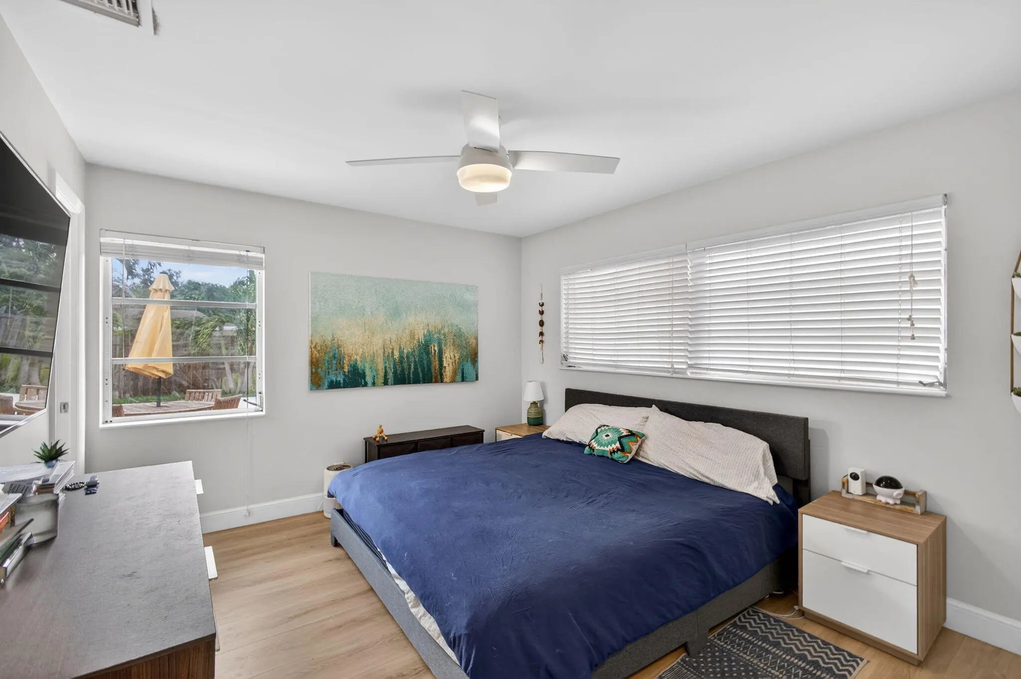 Beautifully remodeled 3-bedroom, 2-bath home in a prime location within walking distance to schools in this classic Palm Beach Gardens Neighborhood! Completely renovated in 2023, this move-in-ready gem features a chef's kitchen with quartz countertops, stainless steel appliances and island. Both baths updated with quartz and gorgeous tile. Luxury vinyl flooring throughout. Cabana bath leading to the pool. Enjoy year-round outdoor living with a huge screened patio overlooking a sparkling pool, plus a hot tub and fire pit—perfect for relaxing or entertaining. The large, fully fenced yard offers plenty of space for pets or play. A one-car garage adds convenience, while modern updates provide style and comfort. Room to park a boat. No HOA! Don't miss this incredible opportunity!