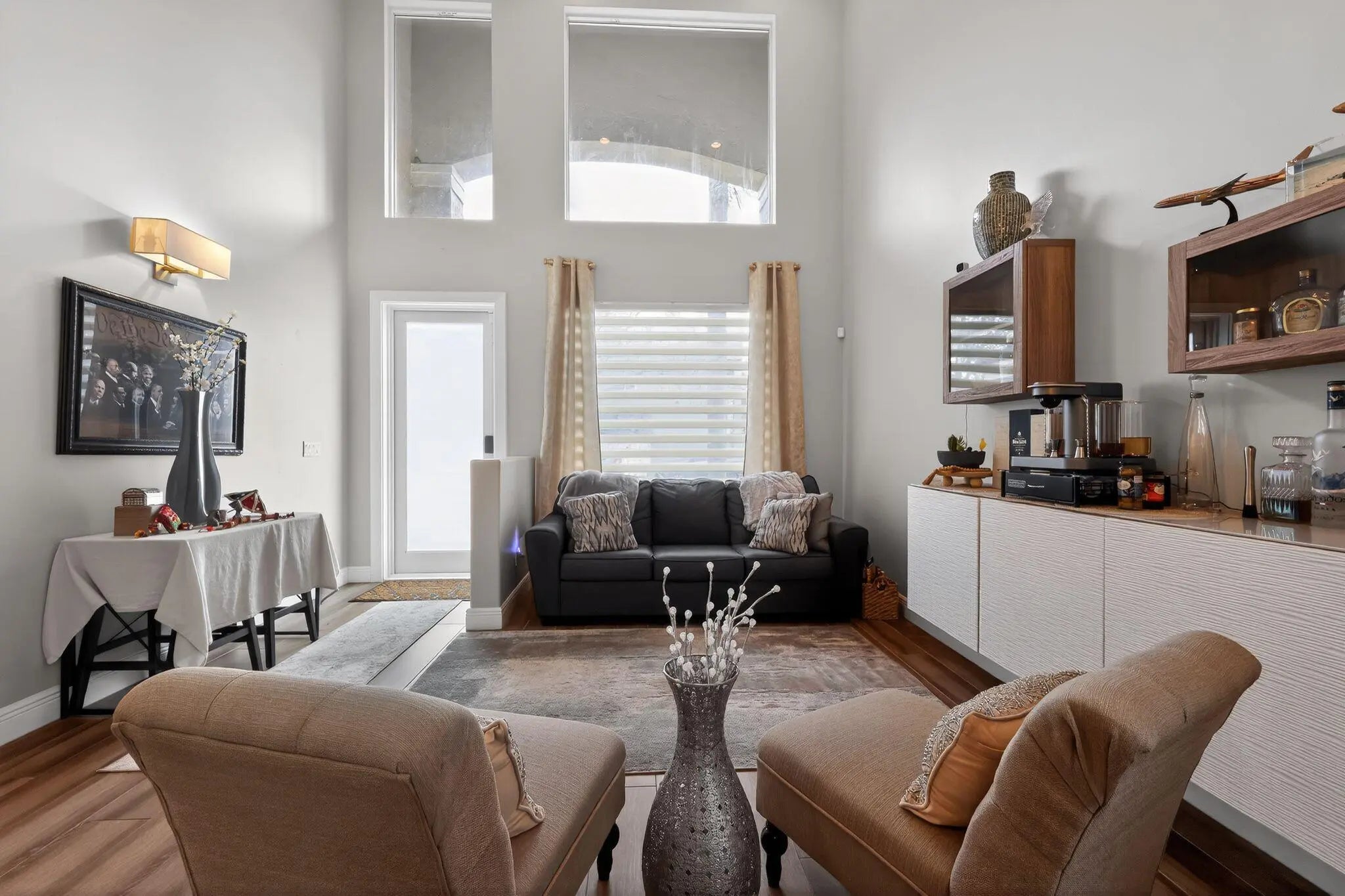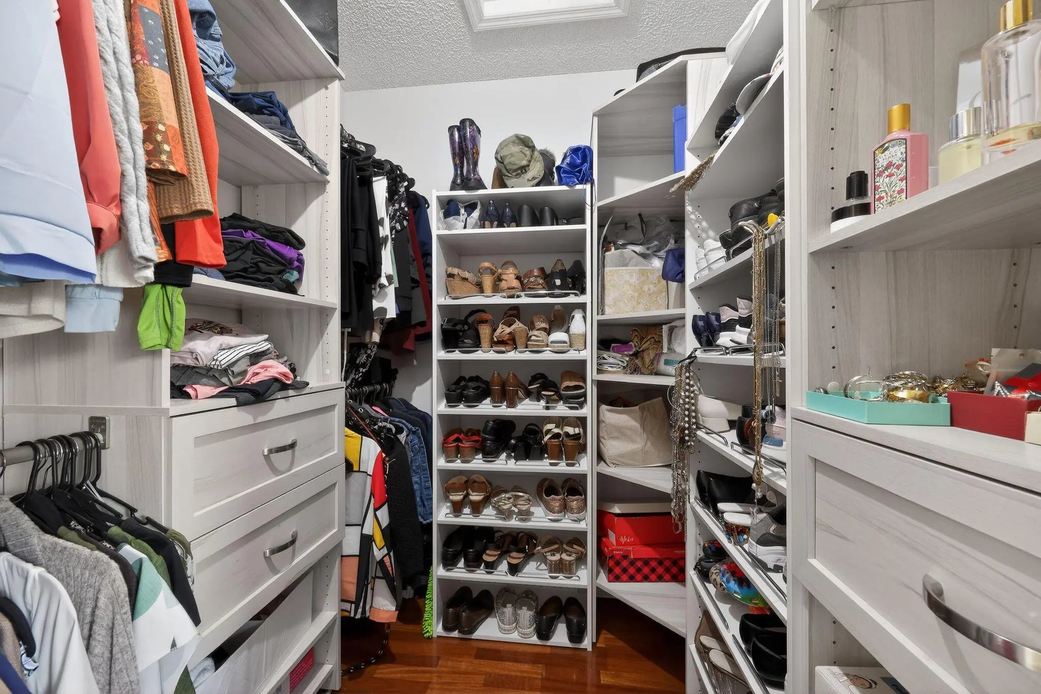 Built-in Features, High Ceilings, Kitchen Island, Walk-In Closet(s), Closet Cabinetry