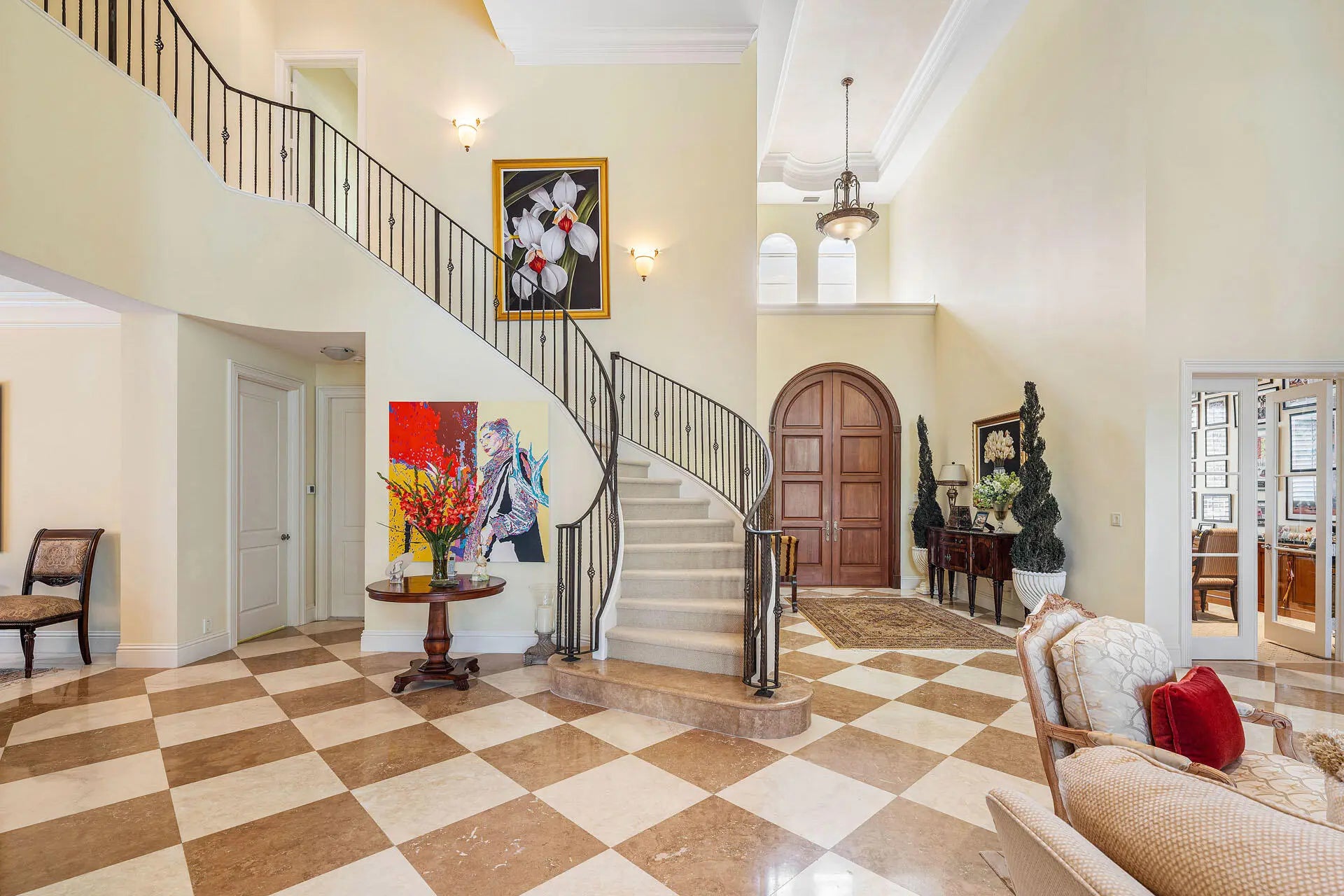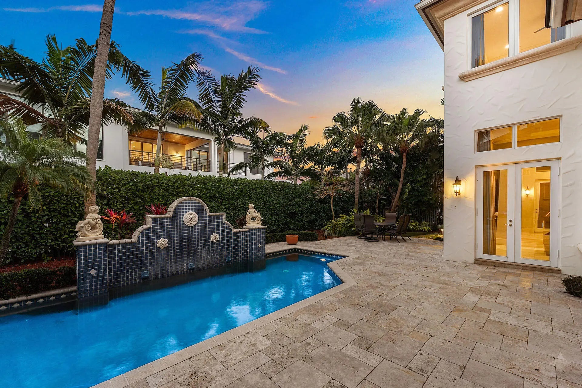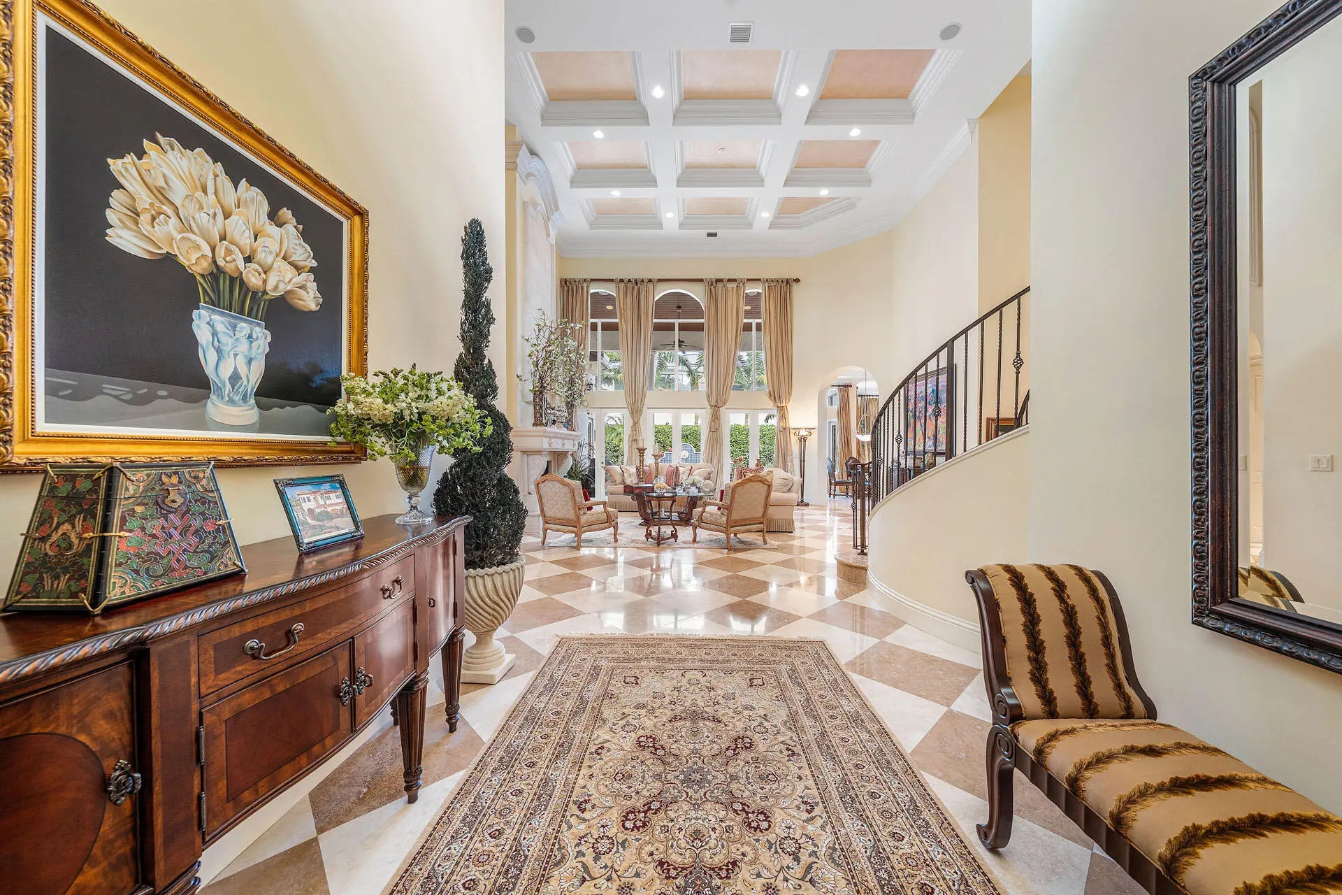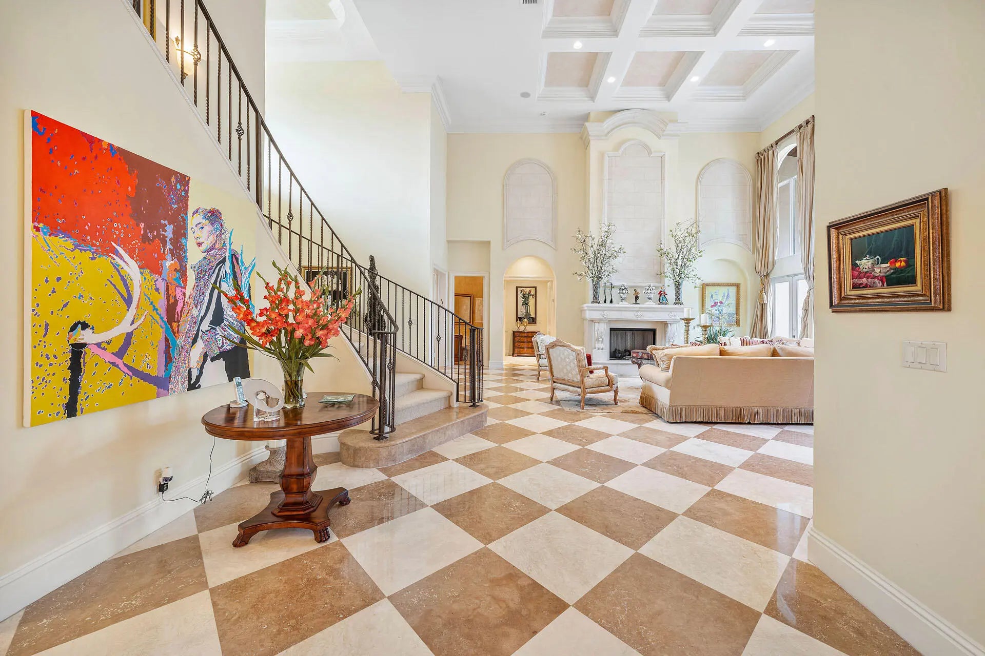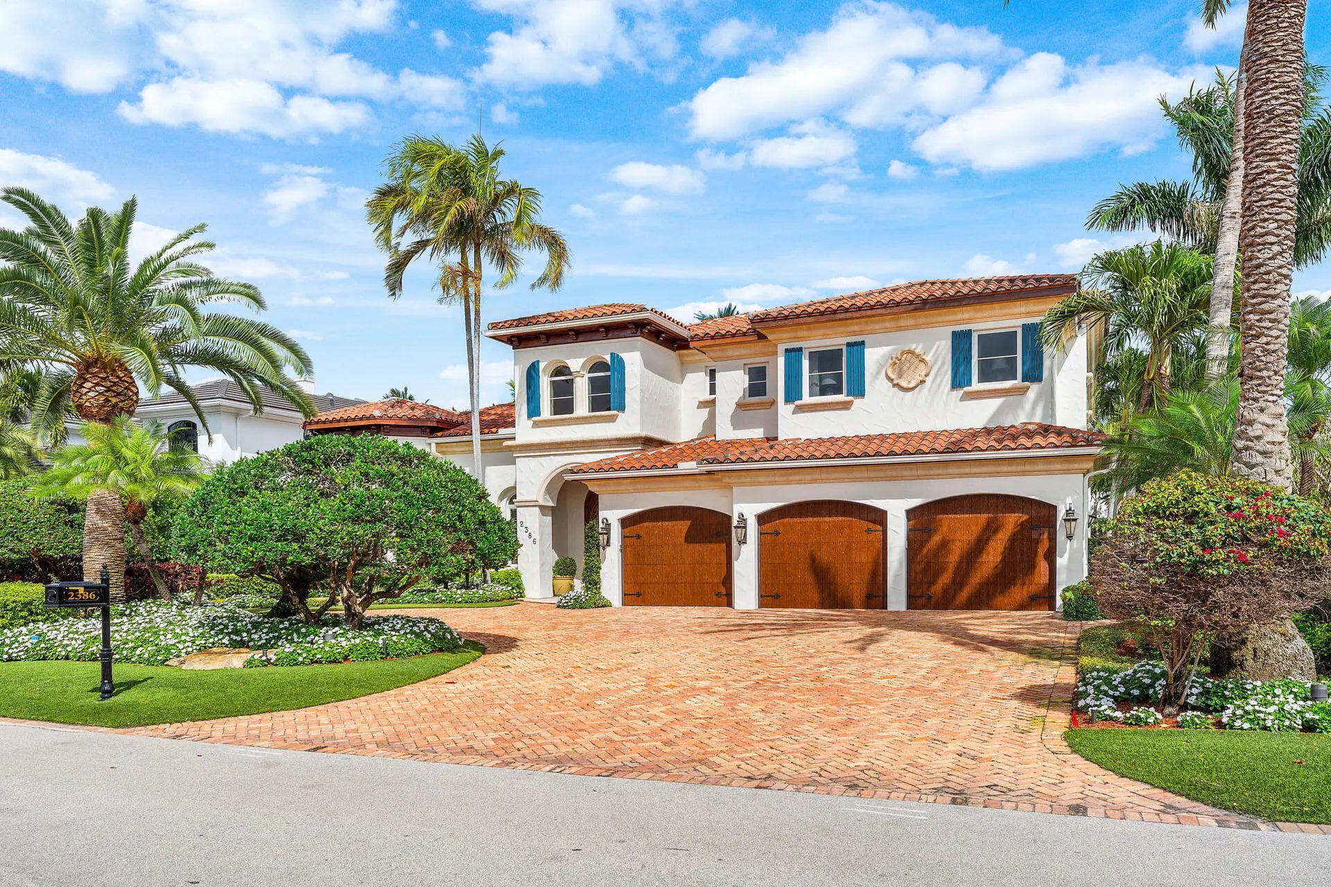 2386 W Maya Palm Drive is an elegant traditional estate on a quiet interior street in Royal Palm Yacht & Country Club, offering timeless architecture and a warm, inviting atmosphere. This 5-bedroom home features approximately 5,000 SF of refined living space, with marble flooring on the main level and bright east exposure that fills the interiors with natural light. The first floor includes a luxurious primary suite with his and her baths, a private office, and generous formal and casual living areas that function well for both everyday living and entertaining. French doors open to the pool and patio, promoting an easy indoor-outdoor flow and views of the landscaped grounds. Outside, the backyard provides ample space for lounging, dining, and poolside enjoyment, framed by mature tropical landscaping for privacy. The home combines classic Royal Palm style with comfortable South Florida living.