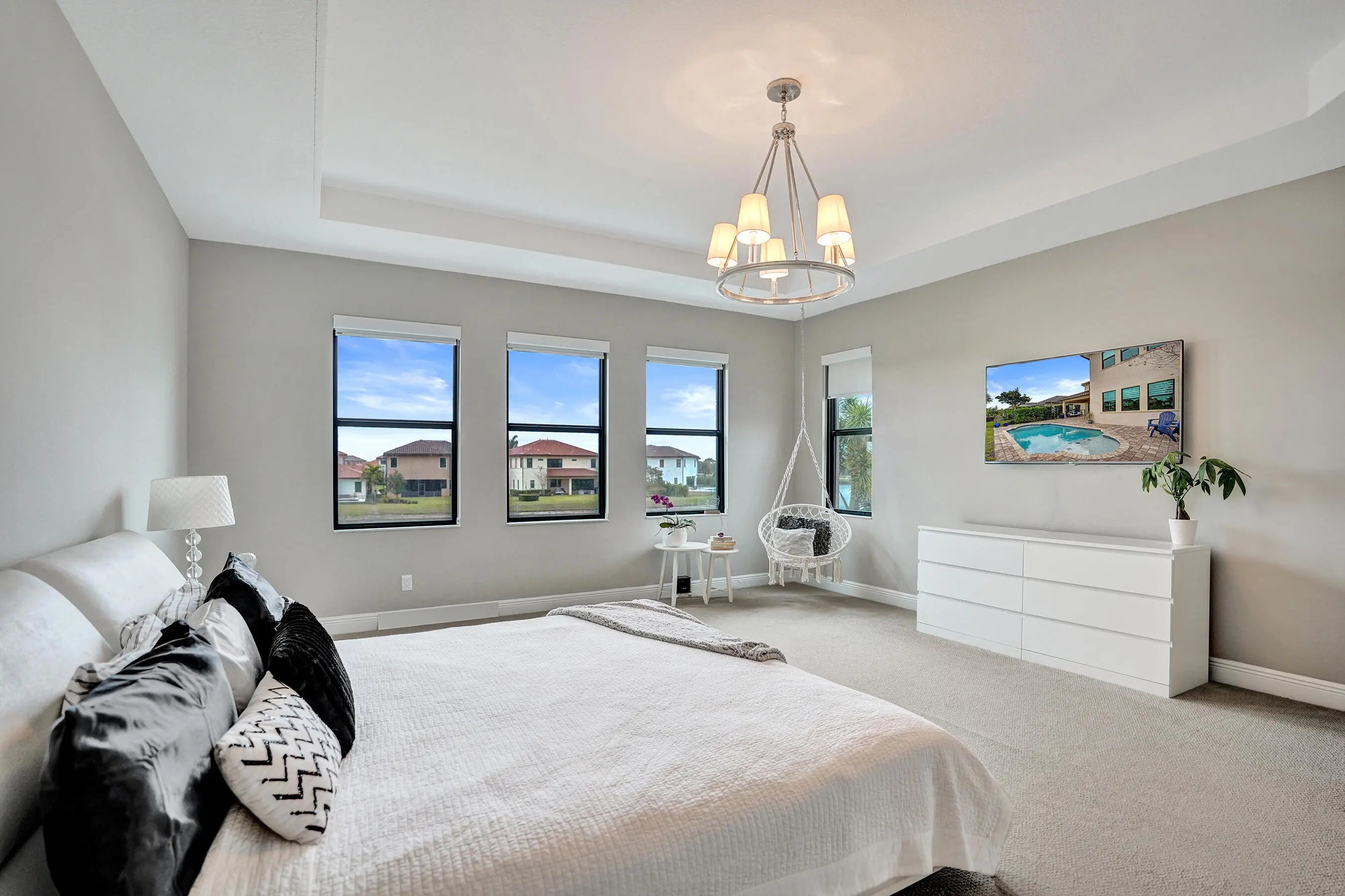 Exquisite former model home recently built in 2018 located on a prime lakefront lot and green space in front (no front neighbors) in the prestigious and exclusive Parkland Bay community, This Tern model with over 4,000 sq ft of living space features a beautiful pool overlooking breathtaking lake views, a large covered patio, impact windows and doors, 1 bedroom and full bathroom downstairs and upstairs are the Master bedroom and 3 other bedrooms plus a large game room, beautiful large format polished porcelain tile and wood floors in living areas, upgraded kitchen, upgraded bathrooms, designer room darkening shades, and many more upgrades! Parkland Bay is a guard-gated community featuring a 16,000-sq-ft clubhouse, resort-style pool, gym, tennis, basketball, cabanas, playground and more!