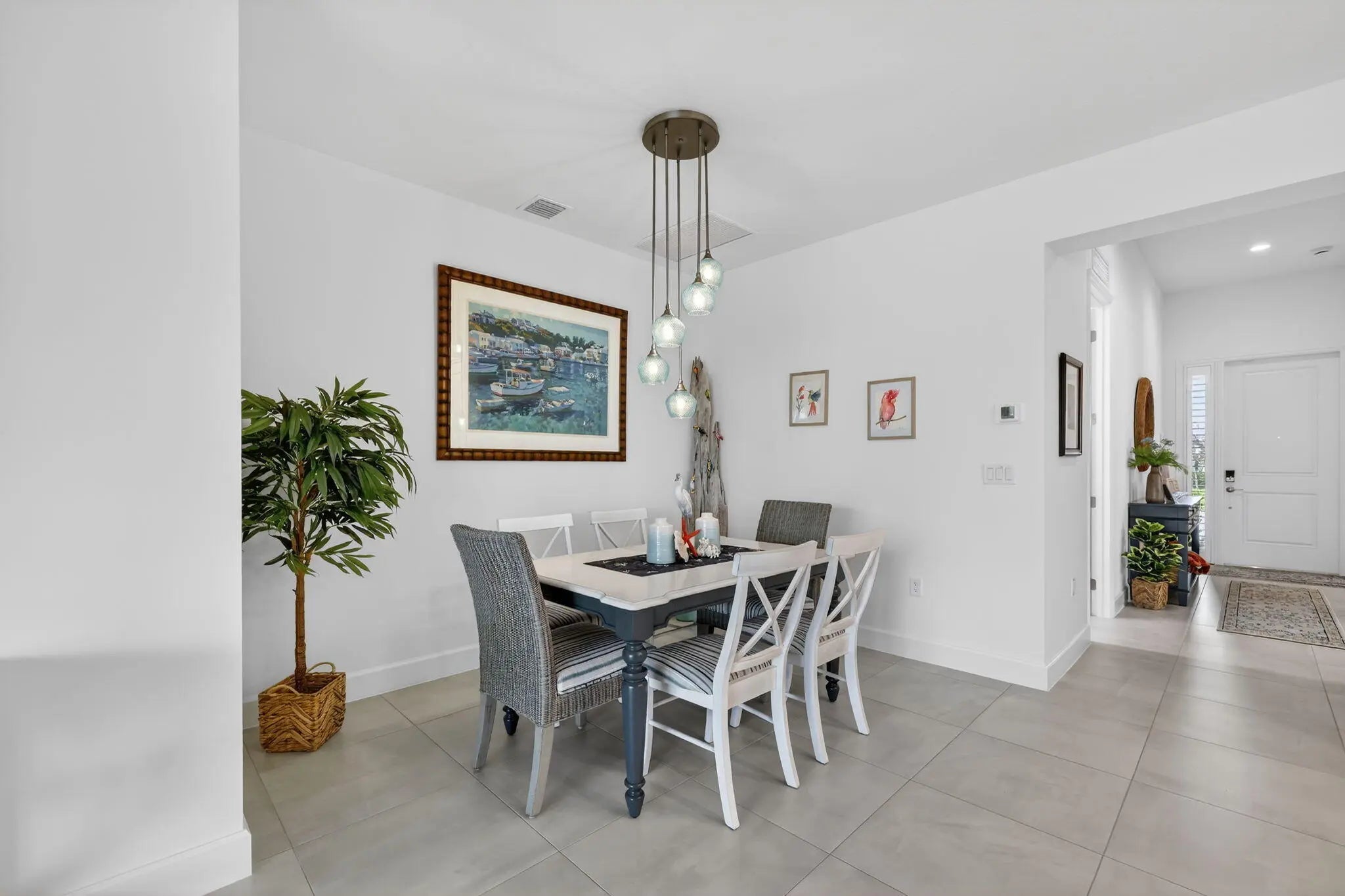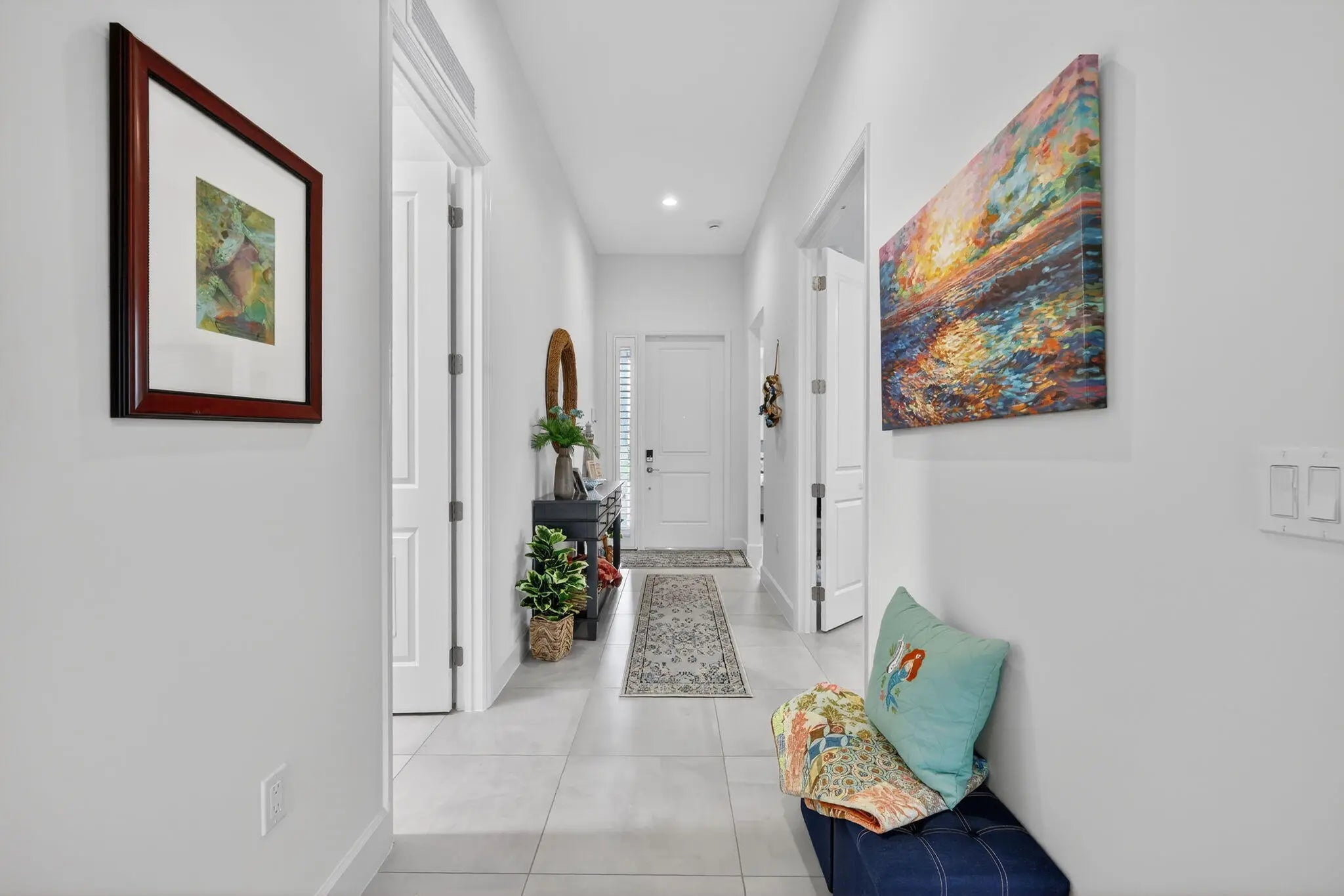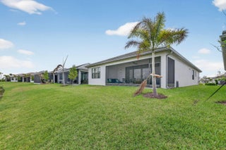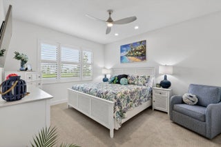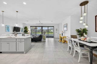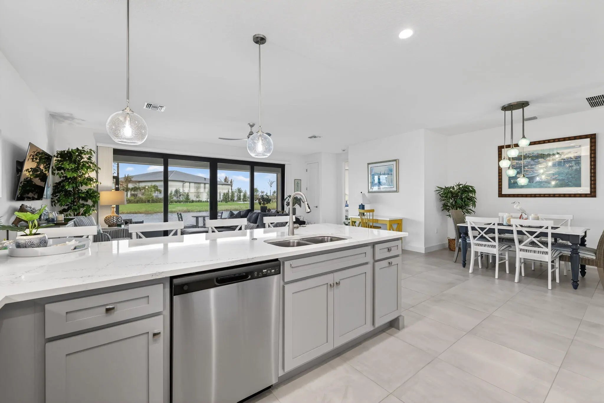 This barely 1-year-old, lightly lived-in snowbird residence offers a wonderful opportunity to own a waterfront Sandpiper in GL Homes' highly sought-after 55+ community of Valencia Parc at Riverland in Port St. Lucie. With 2 bedrooms + a den, 1,752 square feet under air, and a two-car garage, this home combines modern finishes with easy Florida living in like-new condition. Inside, the main living areas feature rectified tile flooring, while the bedrooms offer upgraded carpet and padding for added comfort. The bright, open kitchen is accented with white quartz countertops, soft-close Whisper Gray cabinetry, and stylish pendant lighting over the peninsula, complemented by coordinating lighting in the dining area. Ceiling fans are thoughtfully placed throughout the home, including the patio to enhance comfort year-round. laundry room is both functional and upgraded with upper and lower cabinetry, a utility sink, and quartz countertops. Additional features include opaque glass bathroom windows for privacy, a convenient floor outlet in the living room for flexible furniture placement, plantation shutters on all windows, and Hunter Douglas panel track shades on the sliding glass doors. The widened driveway and front walkway with upgraded pavers add to the home's curb appeal. Enjoy peaceful waterfront views from your backyard while embracing the vibrant Riverland lifestyle. Valencia Parc residents have access to resort-style pools, fitness centers, pickleball and tennis courts, arts and cultural activities, and scenic walking and biking trails. Furniture is negotiable, offering a potential turnkey opportunity for seasonal or full-time living. Ideally located, Riverland is just minutes from the Cleveland Clinic Tradition Hospital, shopping and dining at Tradition Square, and Clover Park, home to New York Mets spring training. This exceptional location offers both convenience and the best of the Florida lifestyle.