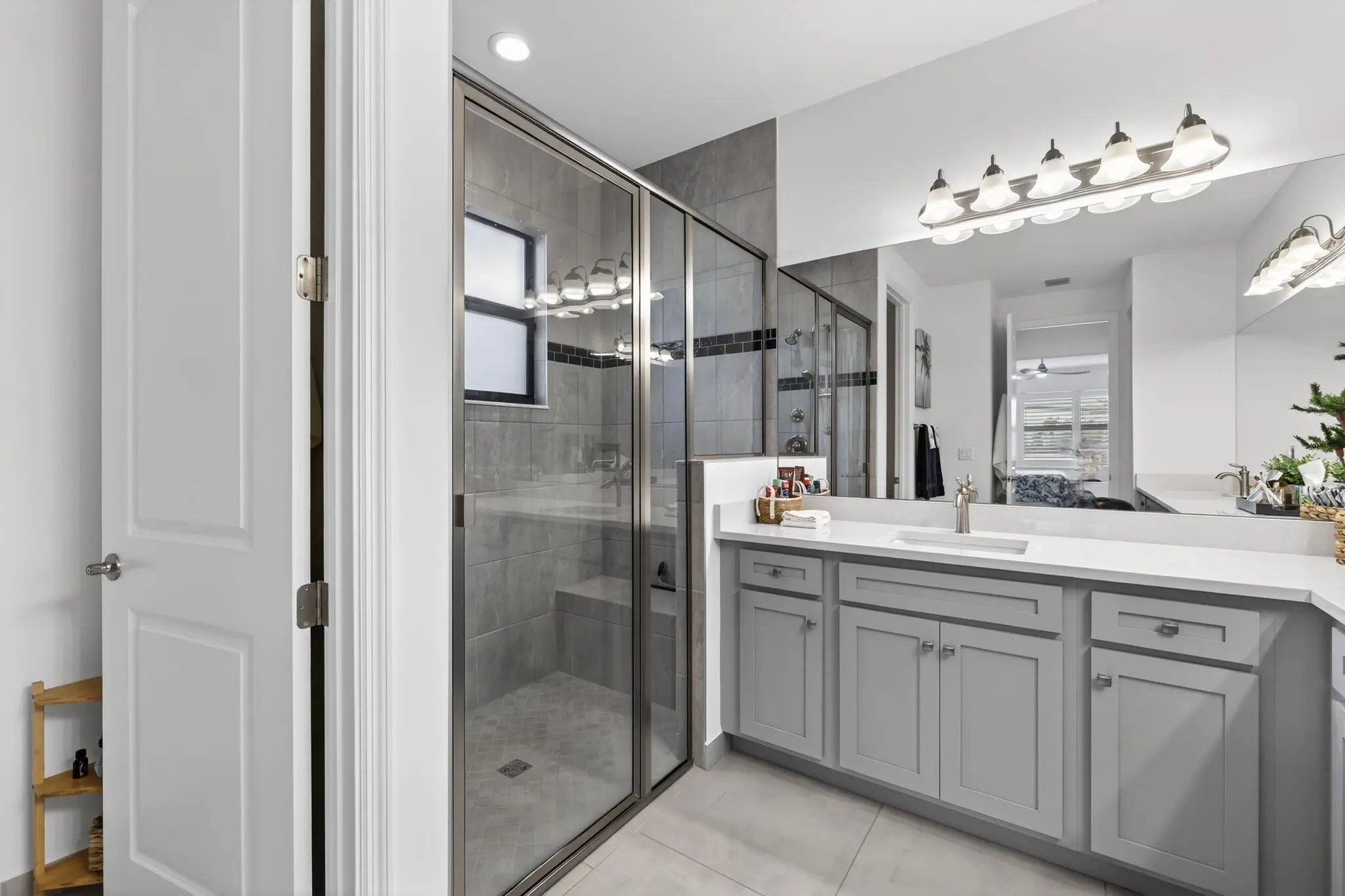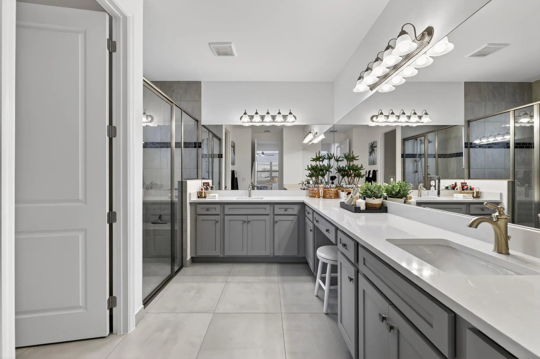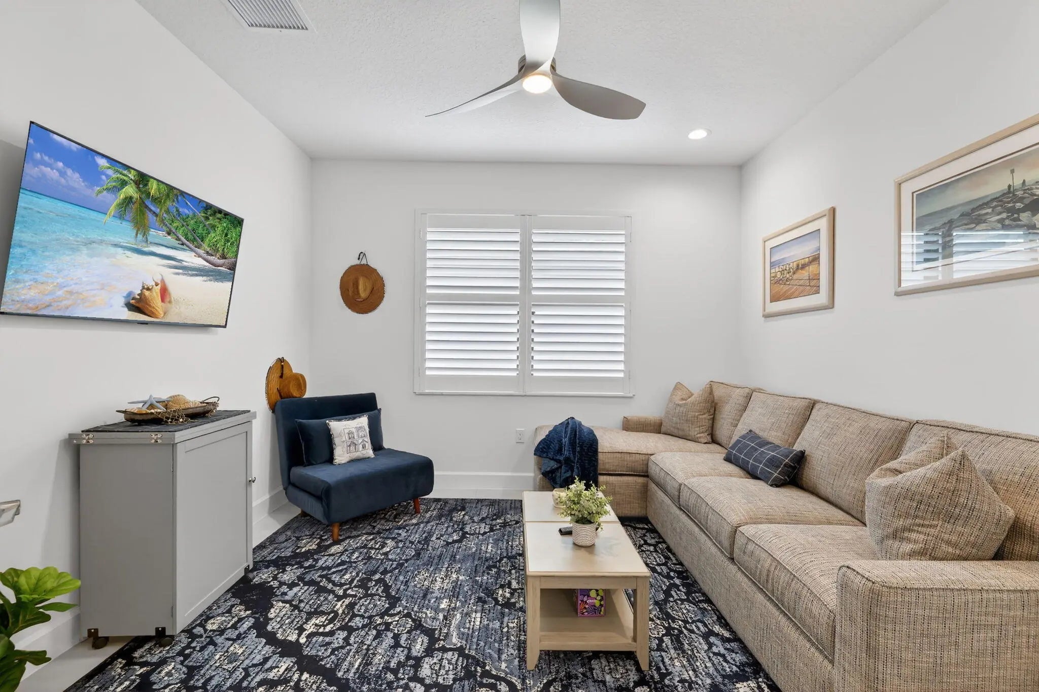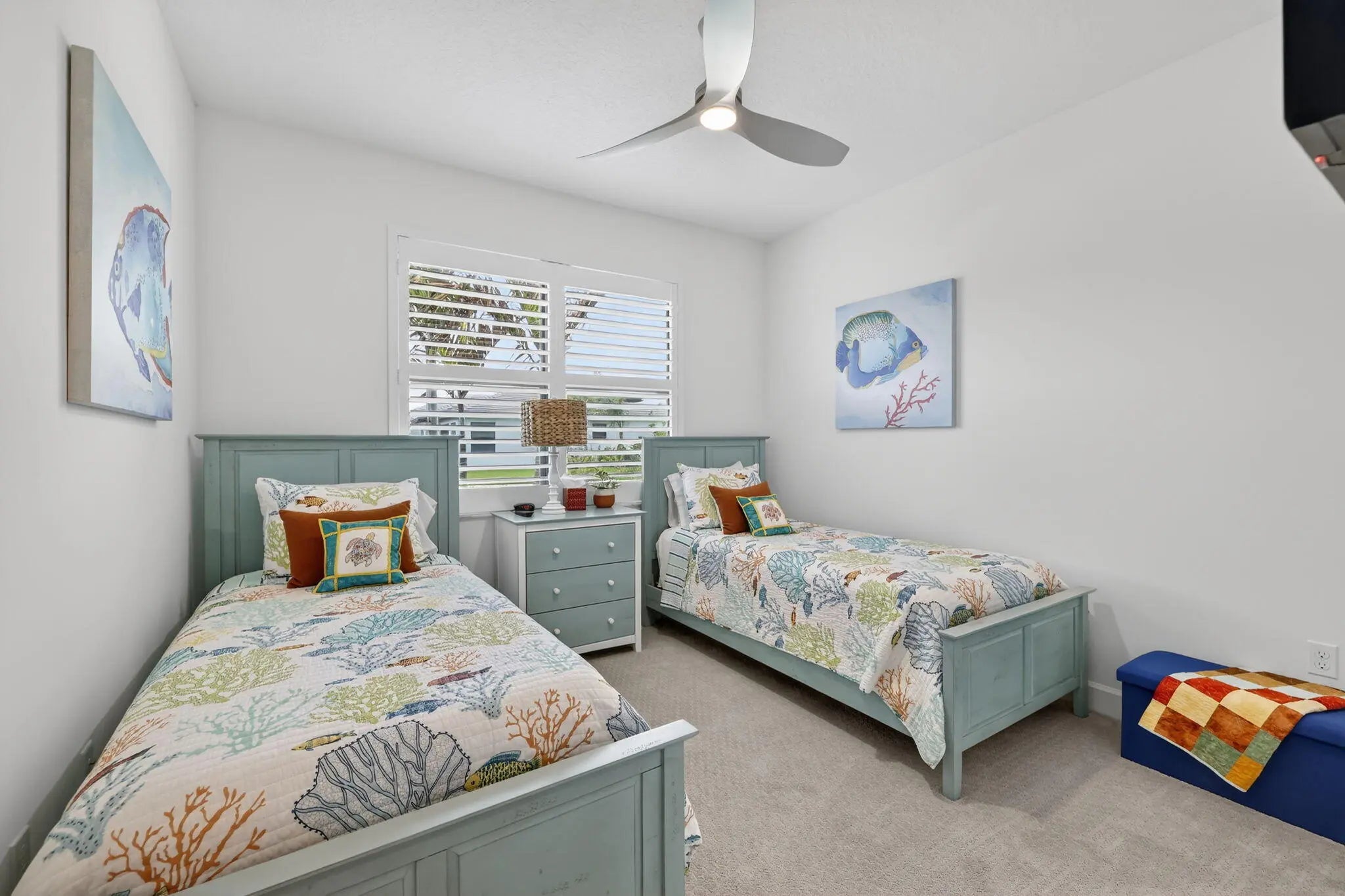 This barely 1-year-old, lightly lived-in snowbird residence offers a wonderful opportunity to own a waterfront Sandpiper in GL Homes' highly sought-after 55+ community of Valencia Parc at Riverland in Port St. Lucie. With 2 bedrooms + a den, 1,752 square feet under air, and a two-car garage, this home combines modern finishes with easy Florida living in like-new condition. Inside, the main living areas feature rectified tile flooring, while the bedrooms offer upgraded carpet and padding for added comfort. The bright, open kitchen is accented with white quartz countertops, soft-close Whisper Gray cabinetry, and stylish pendant lighting over the peninsula, complemented by coordinating lighting in the dining area. Ceiling fans are thoughtfully placed throughout the home, including the patio to enhance comfort year-round. laundry room is both functional and upgraded with upper and lower cabinetry, a utility sink, and quartz countertops. Additional features include opaque glass bathroom windows for privacy, a convenient floor outlet in the living room for flexible furniture placement, plantation shutters on all windows, and Hunter Douglas panel track shades on the sliding glass doors. The widened driveway and front walkway with upgraded pavers add to the home's curb appeal. Enjoy peaceful waterfront views from your backyard while embracing the vibrant Riverland lifestyle. Valencia Parc residents have access to resort-style pools, fitness centers, pickleball and tennis courts, arts and cultural activities, and scenic walking and biking trails. Furniture is negotiable, offering a potential turnkey opportunity for seasonal or full-time living. Ideally located, Riverland is just minutes from the Cleveland Clinic Tradition Hospital, shopping and dining at Tradition Square, and Clover Park, home to New York Mets spring training. This exceptional location offers both convenience and the best of the Florida lifestyle.