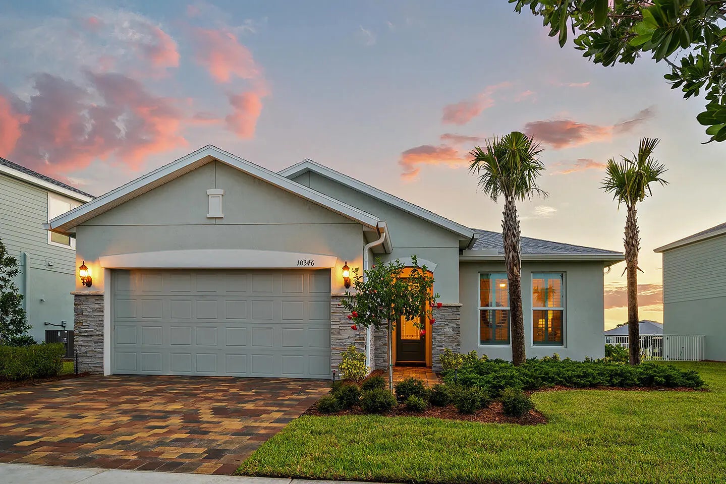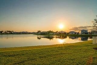 Available May 2026. This impeccable residence in Heron Preserve at Tradition was built in 2022. Your home's location is the focal point; the impressive water and Florida sunset views from the kitchen, living, and primary bedroom are sensational. The residence has been generously improved with over $55,000 in upgrades. The most notable are the waterfront lot, 21x21 tile on the diagonal, 8' interior doors, decorative front door, additional LED lighting, 4' garage extension, 42'' cabinets, exterior lighting, a hardwired Wi-Fi extender in the patio ceiling fan, and motorized blackout shades in the primary bedroom and living room sliding glass doors, Pottery Barn drapes, and a patio privacy shade It is unfurnished. The HOA fee includes cable, home phone, complete lawn maintenance, lawn cutting, edging, irrigation, pruning and trimming of trees, replacement of dead or diseased trees and foliage, annual mulch, and fertilizer.