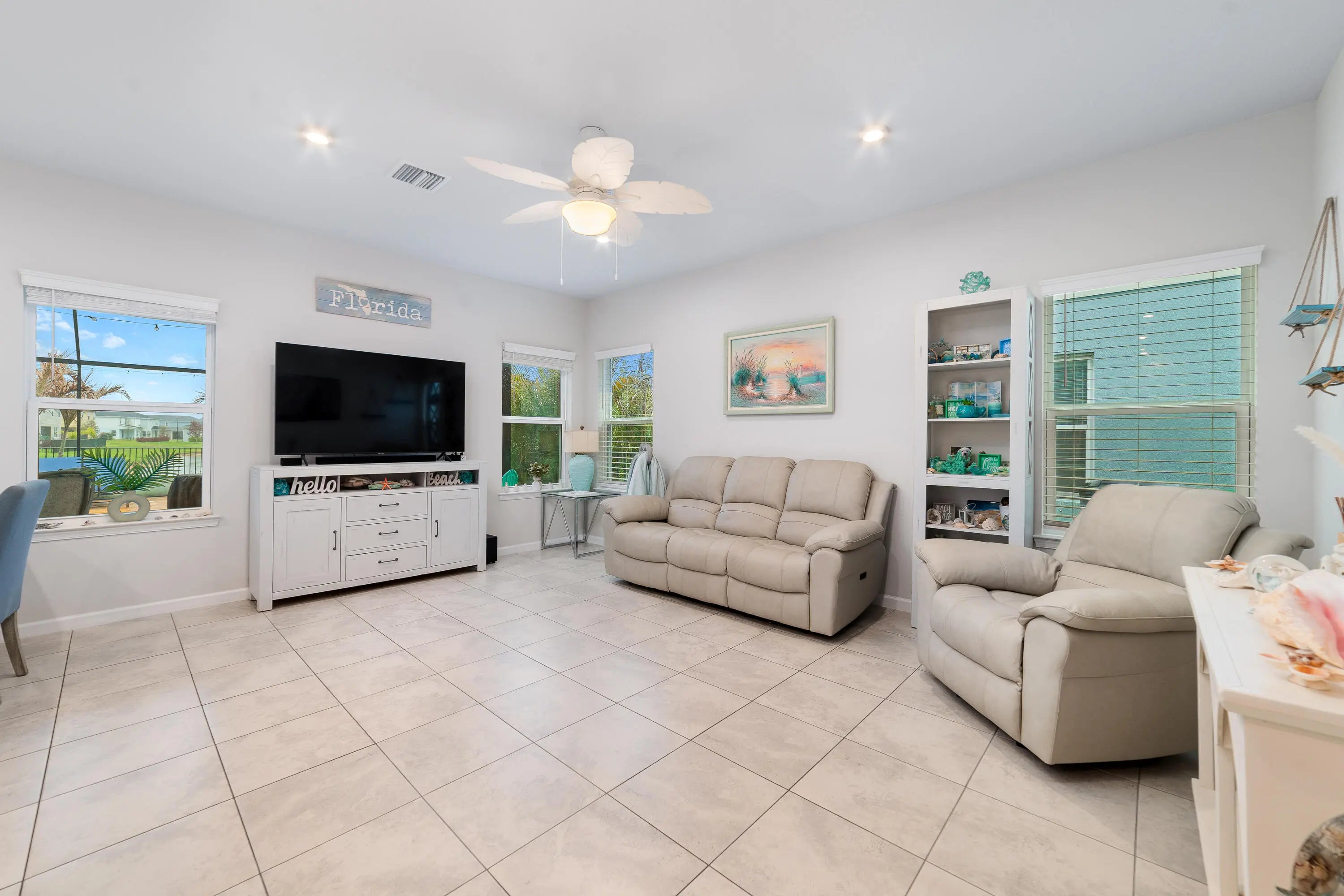 Welcome to this stunning 2023-built single-family home in the highly desirable Central Park community of Port St. Lucie. Thoughtfully designed by Ryan Homes, this spacious two-story residence offers 4 bedrooms, 3 bathrooms, and a versatile flex room—perfect for a home office, gym, or guest space. Step inside to discover an open-concept layout filled with natural light, featuring tile flooring throughout the main living areas and a large, modern kitchen equipped with granite countertops, stainless steel appliances, and ample space for entertaining. Upstairs, you'll find a generous loft area ideal for a second living space, media room, or play area. Enjoy Florida living at its finest with your private backyard oasis overlooking a serene water view. The saltwater heated pool, complete with a travertine deck and screened enclosure, is complemented by a covered lanai—perfect for relaxing or hosting year-round. Additional highlights include a spacious laundry room, carpeted bedrooms for comfort, and a 2-car garage. With modern construction, thoughtful upgrades, and a prime location, this home offers the perfect blend of style, comfort, and convenience. Located in the heart of Port St. Lucie, this opportunity provides a fantastic location not far from gorgeous beaches, shopping and quick access to highways. Please make sure to check out the 3D virtual walkthrough and schedule an appointment today!