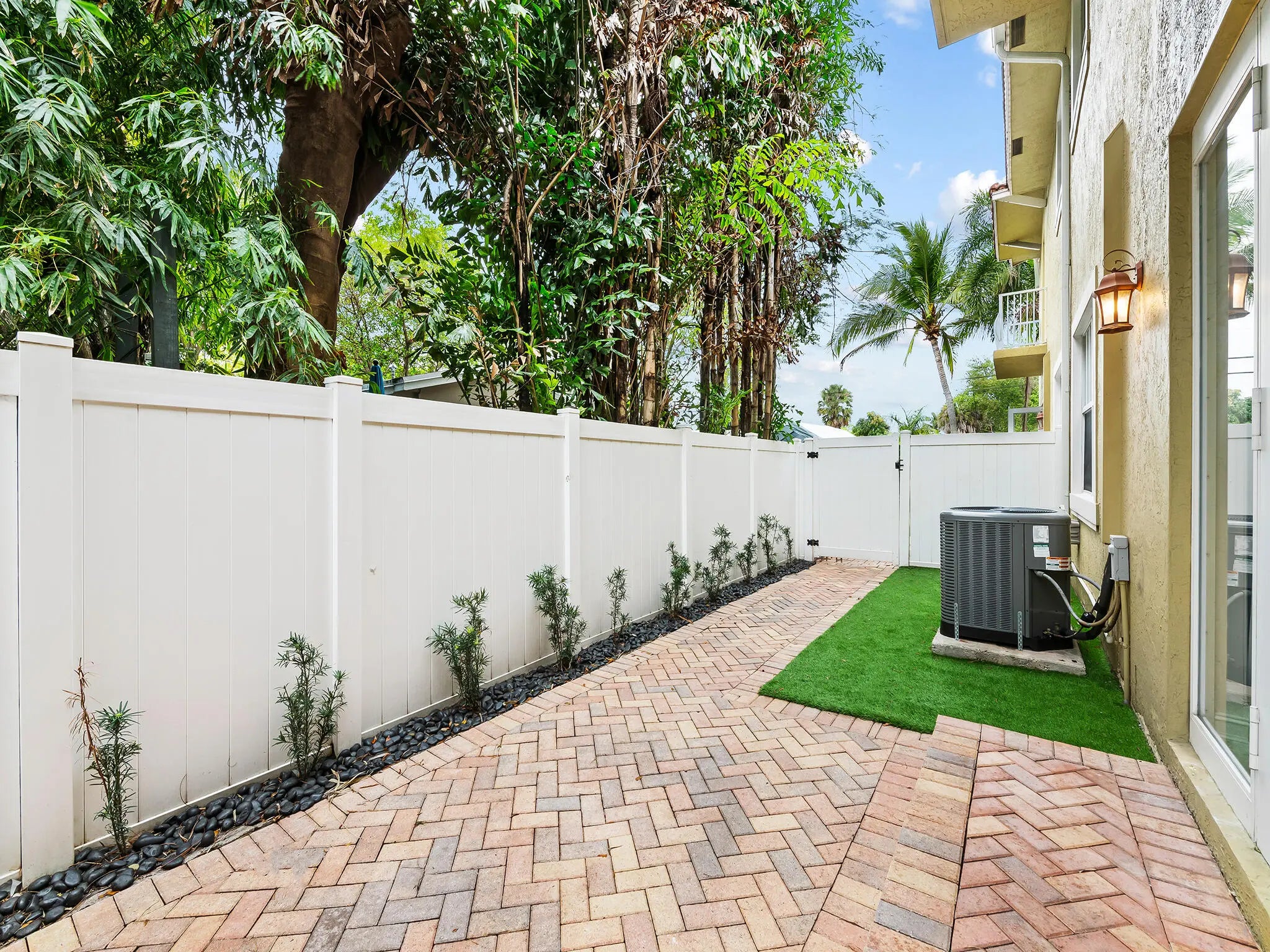 This spacious boutique 3-bedroom, 2.5-bath townhome is nestled in a beautifully landscaped 8-unit community. It features an open-concept granite kitchen, stainless steel appliances, high ceilings, a large 2-car garage, and a private fenced courtyard. Enjoy a community pool and a relaxing setting with lush greenery throughout. The home offers a balcony off the primary suite, an upstairs laundry area, a luxurious primary bath with double vanity and separate tub and shower. Recent updates include a new range (2024), a new A/C (2025), and a new dishwasher (2026). Additional highlights include a central vacuum and hurricane impact windows and doors. You're steps away fr Oakland Pk Restaurants, Shops, Post Office & City Hall. This is a beautifully maintained, lushly landscaped community with low maintenance fees, no assessments and two car garages and a community pool in the heart of Oakland Park. The HOA covers exterior windstorm, flood, and liability insurance along with pool and landscaping maintenance. Annual termite prevention is included for all attic areas and quarterly exterior pest control is included for all common areas