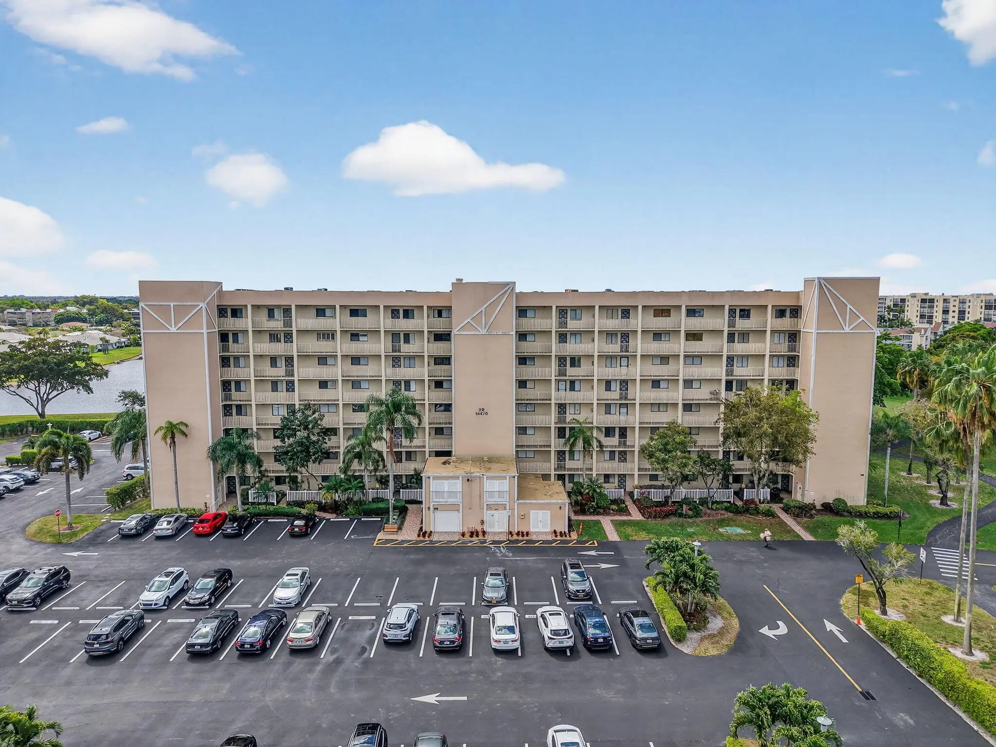 Stunningly maintained 2-bedroom, 2-bath condo in desirable Huntington Lakes Section 3. This second-floor unit in an elevator building features an enclosed patio with stunning golf and lake views. Bright, neutral tones, oversized rooms, and abundant storage throughout. Enjoy the convenience of an in-unit washer and dryer. Located in a vibrant 55+ community offering resort-style amenities including clubhouse, pools, fitness center, tennis, and more. Prime location close to shopping, dining, and major roadways. Incredible opportunity to own in one of Delray's most sought-after communities. 2025 A/C & Water Heater.