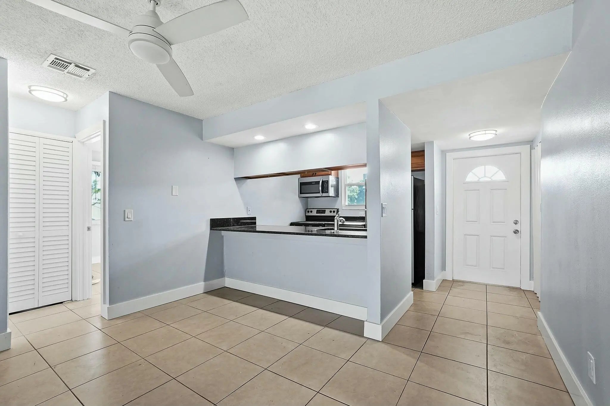 Turnkey Coastal Living in Jensen Beach! Welcome to this beautifully updated 2-bedroom, 2-bathroom, bottom floor corner apartment in the highly sought-after North River Shores community. Nestled in an idyllic intercoastal setting, this home offers a perfect blend of comfort, convenience, and style. Step inside to discover a thoughtfully upgraded interior featuring granite countertops, modern appliances, and an in-unit washer and dryer for ultimate ease. The enclosed Florida room provides a tranquil space to unwind. The primary bathroom has been tastefully updated, creating a private oasis. This home also boasts brand-new hurricane impact windows and fresh exterior and interior paint, offering peace of mind and energy efficiency. Even better, water is included in the rent, adding exceptional value.